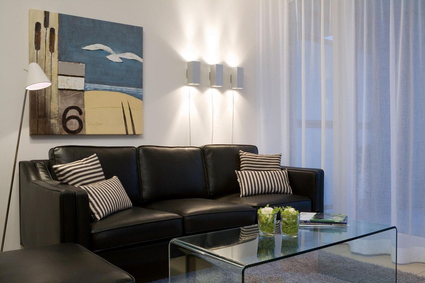 Die Wohnung besteht aus einem stilvollen Wohnzimmer, einem gemütlichen Schlafzimmer und einem modernen Badezimmer. Der offene Küchenbereich ist mit hochwertigen Geräten ausgestattet, darunter ein Induktionsherd, ein Elektro-Backofen, eine Spülmaschine und sogar eine Nespress-Kapselmaschine für Ihren perfekten Start in den Tag. Die hellen Fliesen im Wohnzimmer und Schlafzimmer sorgen für eine angenehme Atmosphäre, während die Fußbodenheizung für wohlige Wärme an kühlen Tagen sorgt. Hier finden Sie außerdem einen bequemen Sofabereich, ideal für entspannte Abende vor dem Fernseher mit Satellitenanschluss.