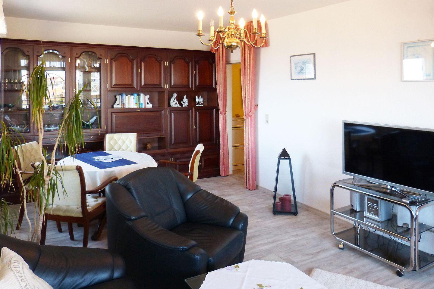 Die Wohnung verfügt über 1 Wohnraum mit Sat-TV und offener Küche, 1 Schlafzimmer, 1 Badezimmer mit Dusche und WC; 1 überdachter West-Balkon mit Gartenmöbeln (April bis Oktober), Blick zum Wattenmeer und dem Yachthafen.