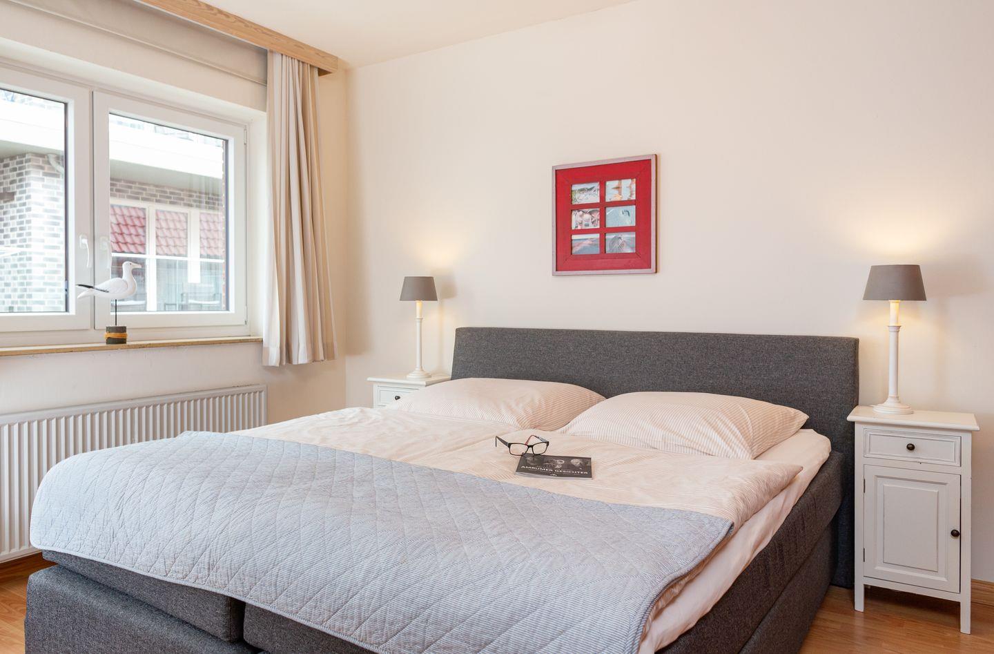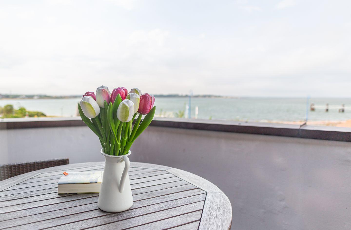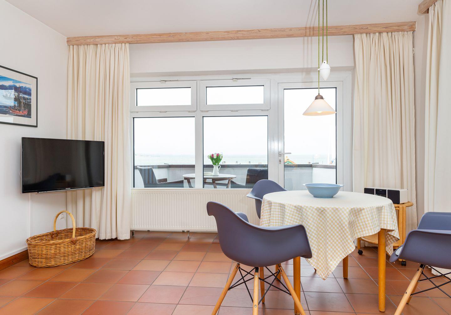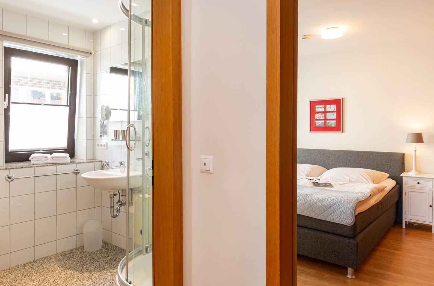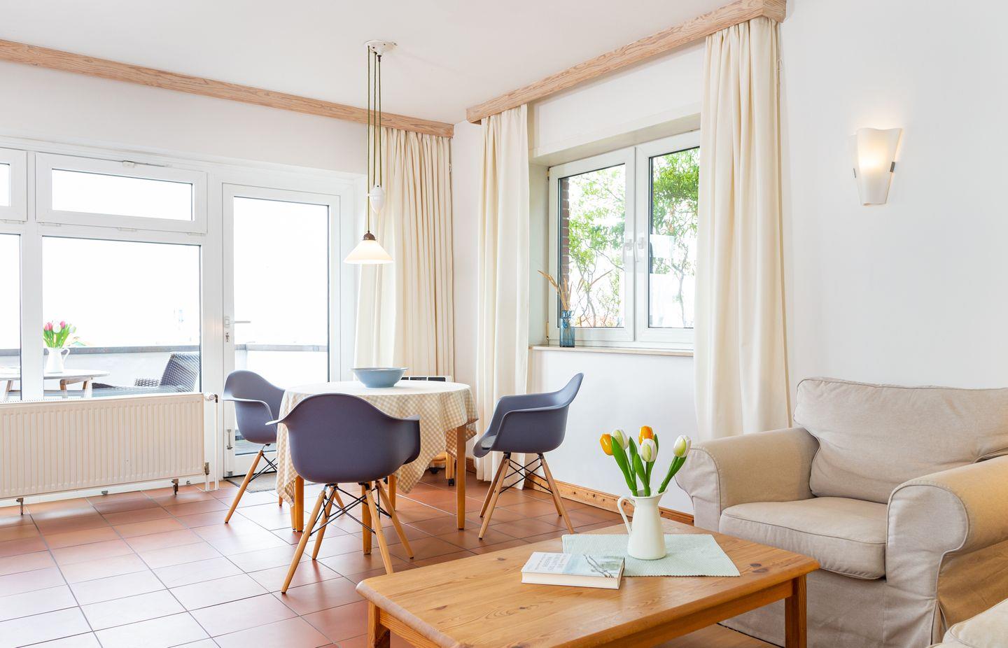 Die Wohnung 1 liegt in der ersten Etage im Ferienhaus Jungnamen Sand und zeigt Richtung Nordosten. Es finden 2 Personen auf 55 qm geschmackvoll eingerichteter Wohnfläche genügend Platz. Die Wohnung hat einen Meerblick.