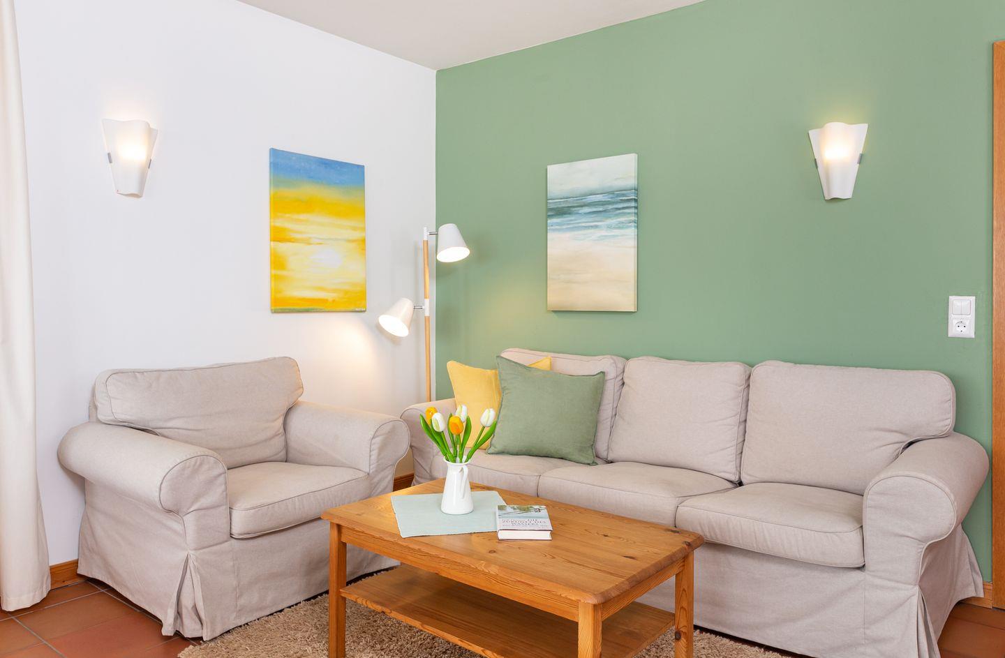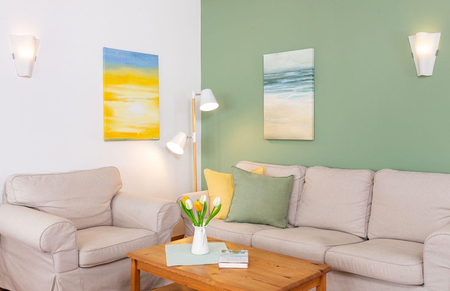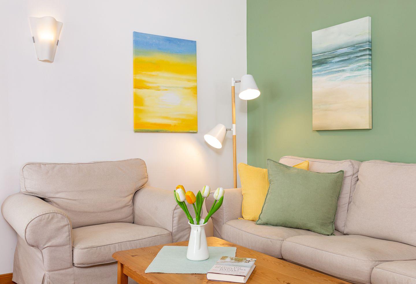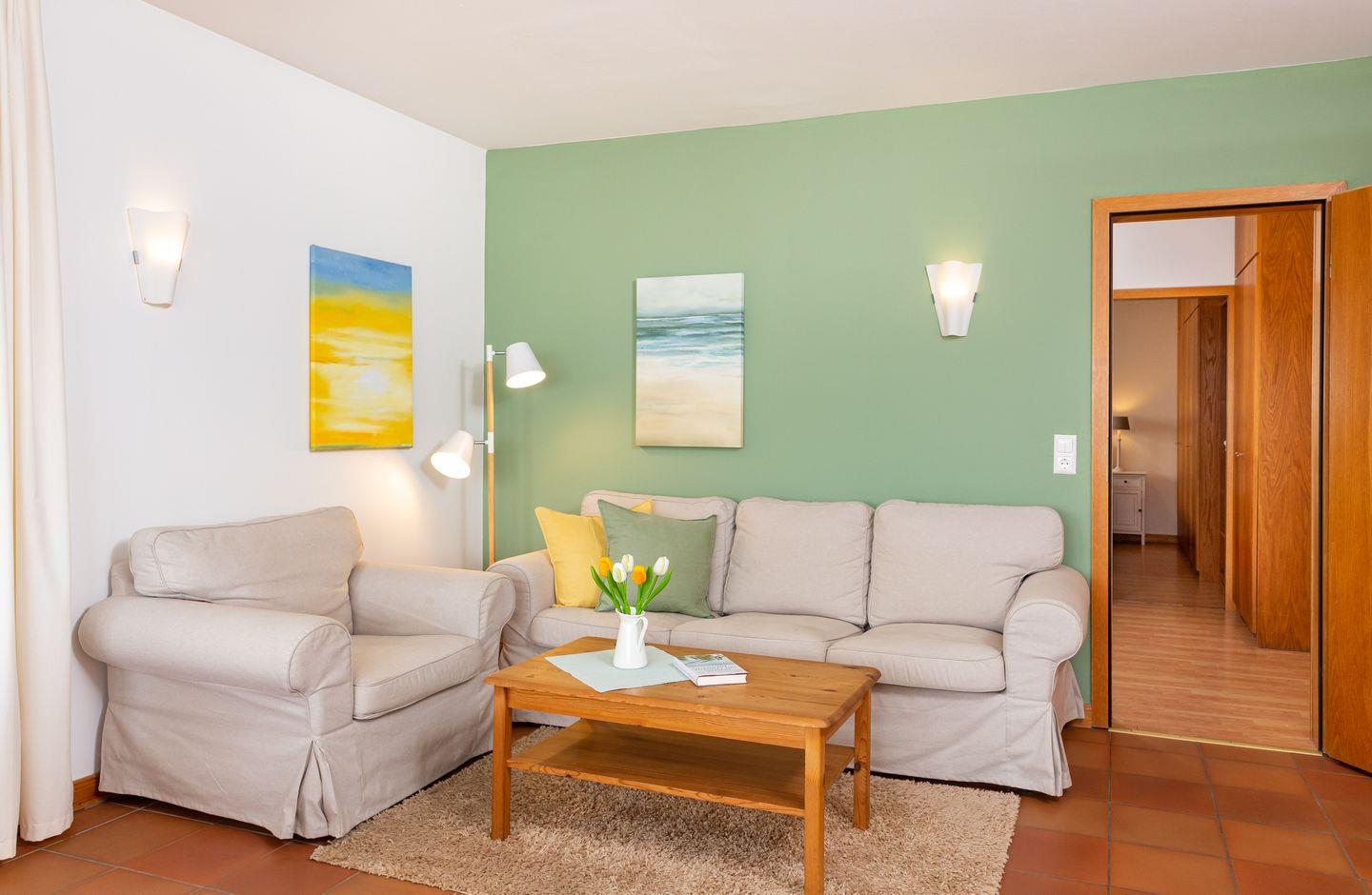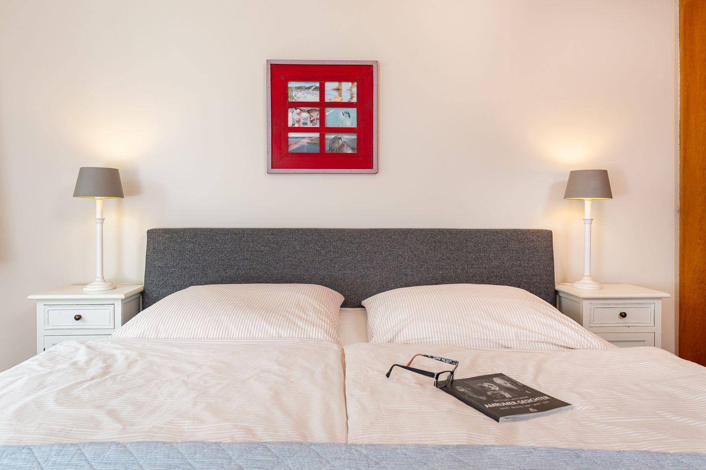 Die Wohnung 1 liegt in der ersten Etage im Ferienhaus Jungnamen Sand und zeigt Richtung Nordosten. Es finden 2 Personen auf 55 qm geschmackvoll eingerichteter Wohnfläche genügend Platz. Die Wohnung hat einen Meerblick.