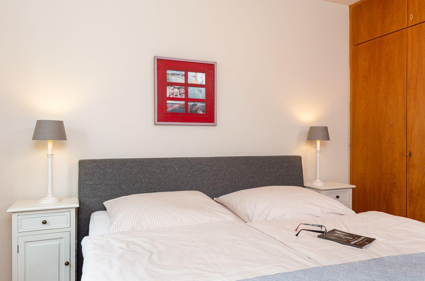 Die Wohnung verfügt über ein Wohnzimmer mit separatem Schlafzimmer mit Boxspringbett, eine voll ausgestattete Küche mit Geschirrspüler, ein Duschbad, einen Balkon mit Meerblick, Satelliten TV und WLAN.