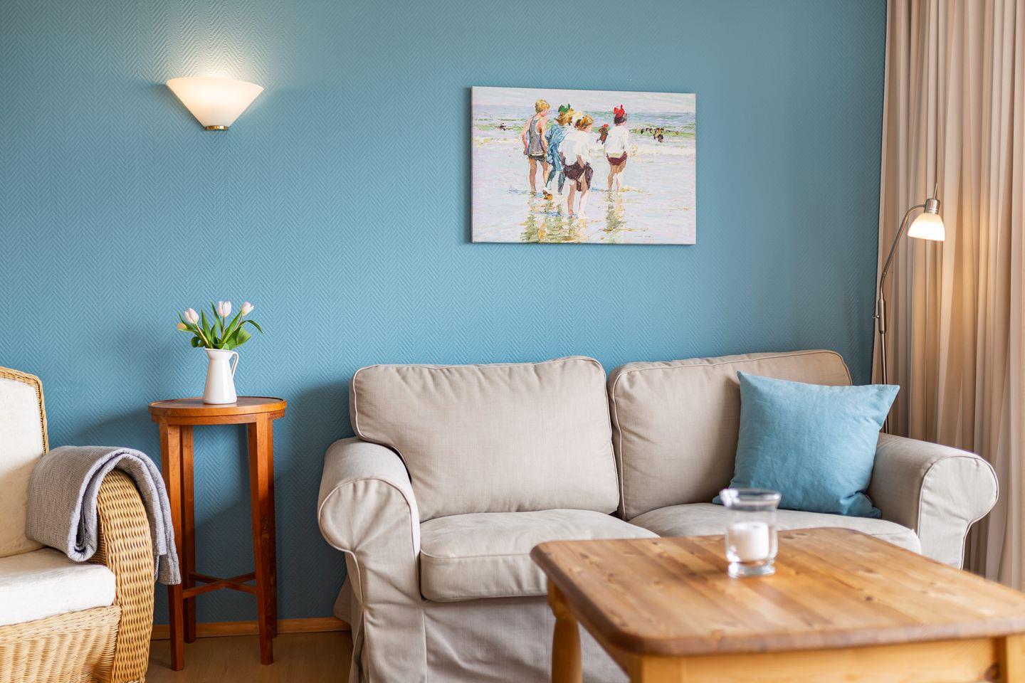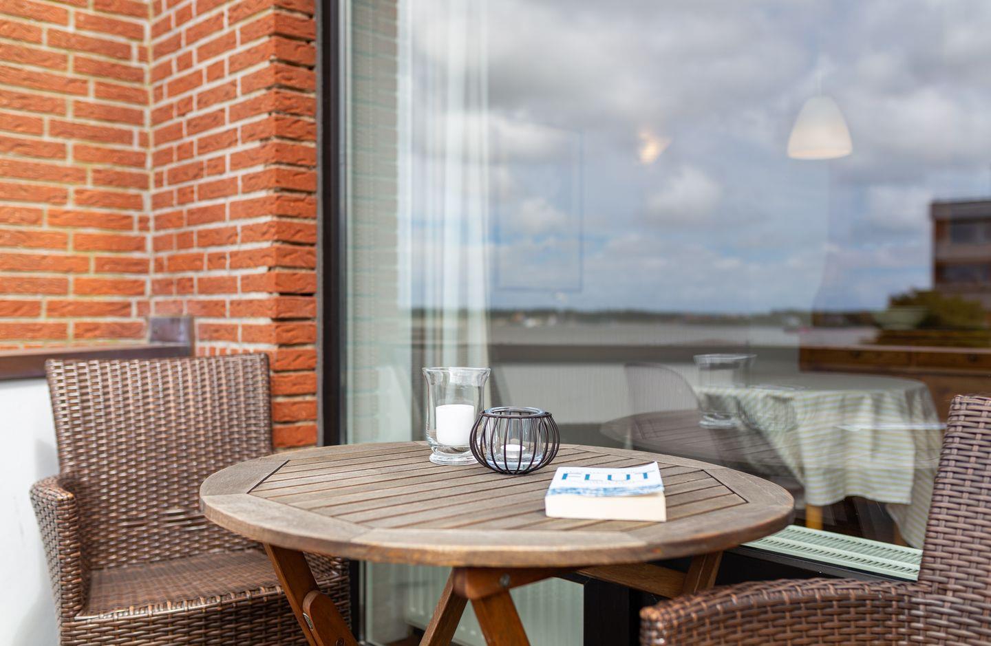 Die Wohnung 6 liegt in der ersten Etage im Ferienhaus Jungnamen Sand und zeigt Richtung Westen. Es finden 2 Personen auf 43 qm geschmackvoll eingerichteter Wohnfläche genügend Platz. Die Wohnung hat einen schönen Meerblick.