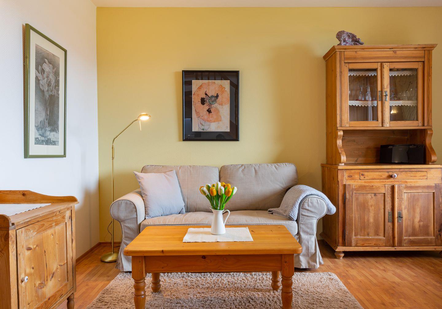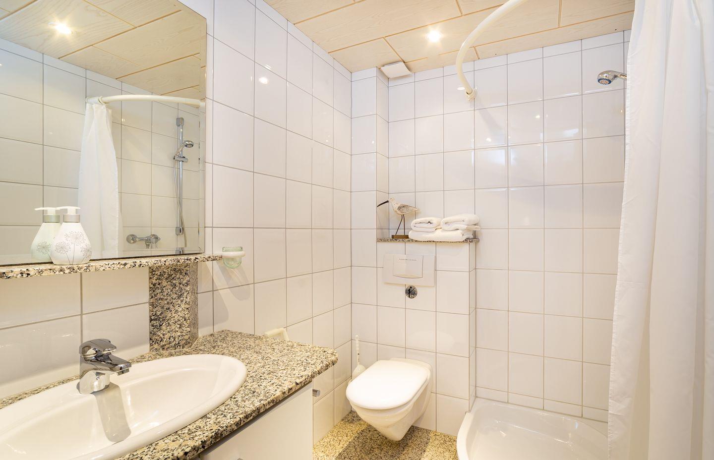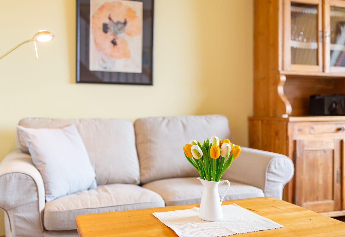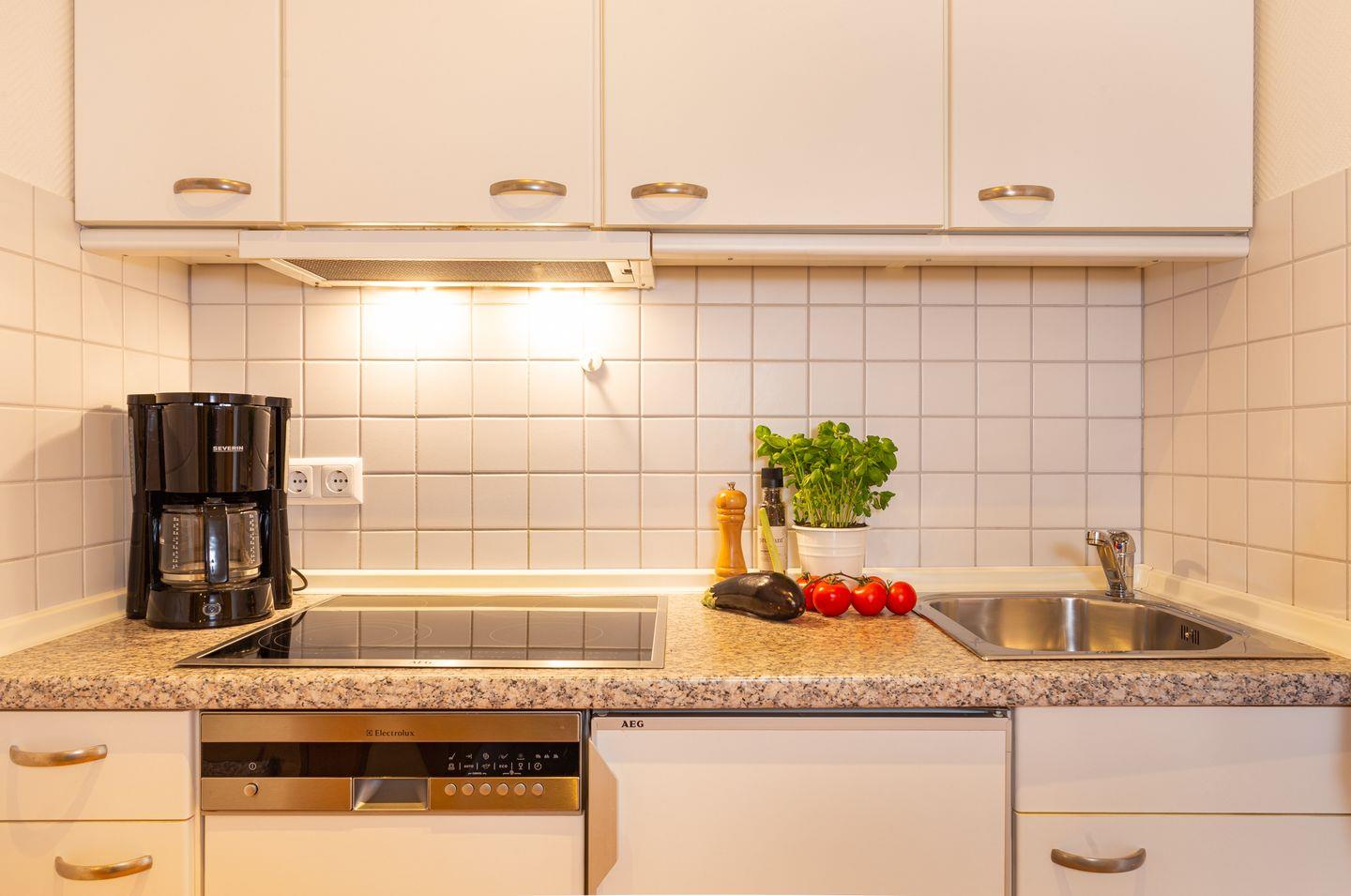 Die Wohnung verfügt über ein Wohnzimmer mit separatem Schlafzimmer mit Boxspringbett, eine voll ausgestattete Küche mit Geschirrspüler, ein Duschbad, einen Balkon mit Meerblick und WLAN. Wohnzimmer und Schlafzimmer sind jeweils mit einem Flachbild TV Gerät ausgestattet. Ein Parkplatz ist ebenfalls vorhanden. Gepflegte Fahrräder stehen zu Ihrer freien Nutzung bereit.