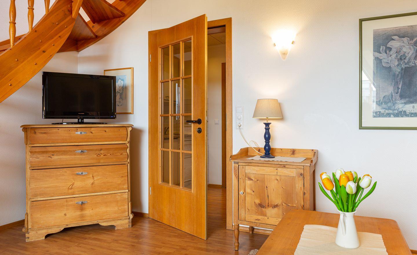 Die Wohnung 10 liegt in der zweiten Etage im Ferienhaus Jungnamen Sand und zeigt Richtung Westen. Es finden 2 Personen auf 66 qm geschmackvoll eingerichteter Wohnfläche genügend Platz. Die Wohnung hat einen wunderschönen Meerblick.Die Ferienwohnung erstreckt sich über zwei Ebenen.