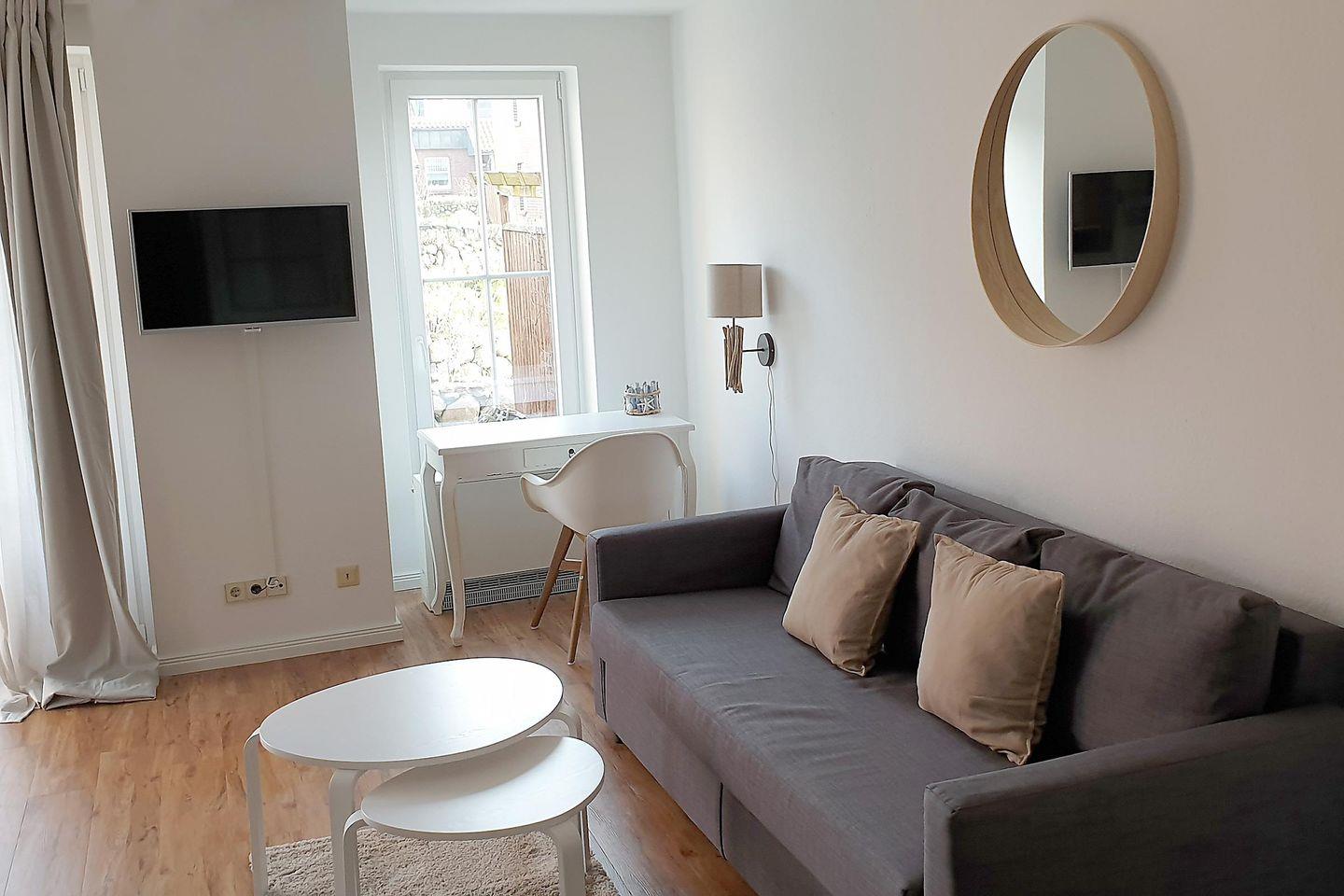 Die Ferienwohnung „Windstille" im Erdgeschoss des Hauses „Südspitze 10" in Wittdün auf Amrum ist eine 2-Zimmer Ferienwohnung (ca. 45 qm Grundfläche) mit eigener Süd-Terrasse und Schlafmöglichkeiten für 2-4 Personen.