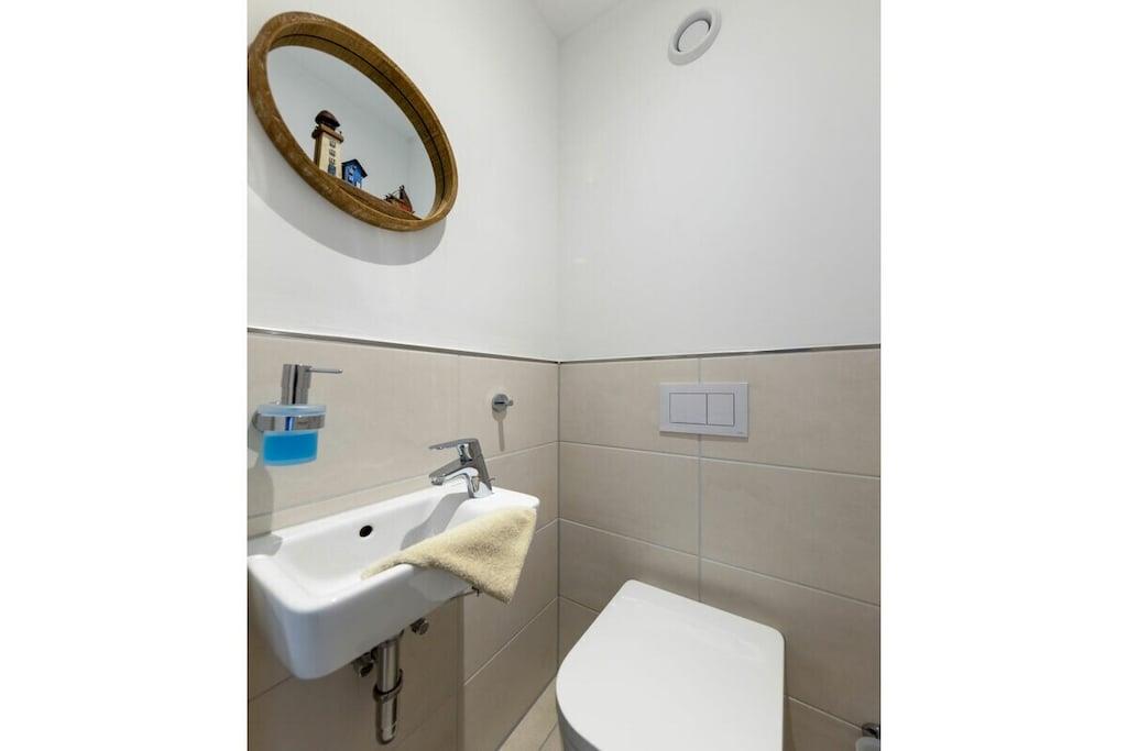 Stueetage: (Køkken(, , , , spisebord, kogeplade, kogeplade, elkedel, brødrister, kaffemaskine, ovn, grill, mikrobølgeovn, opvaskemaskine , køleskab, fryser, varme), stue / spisestue(, , bibliotek, Fjernsyn, spisebord, pejs, radio, varme)) På 1. etage: (soveværelse(, , dobbeltseng, Fjernsyn, varme), soveværelse(, , enkeltseng, dobbeltseng, Fjernsyn, varme), badeværelse(, badekar, bruser, håndvask, varme), guest toilet(, toilet, håndvask, varme)) , , Internetadgang, tørretumbler, vaskemaskine, balkon(balkon), terrasse(, Strand, havemøbler, solstole), parkering, strygebræt, strygejern, tørreskab, telefon
