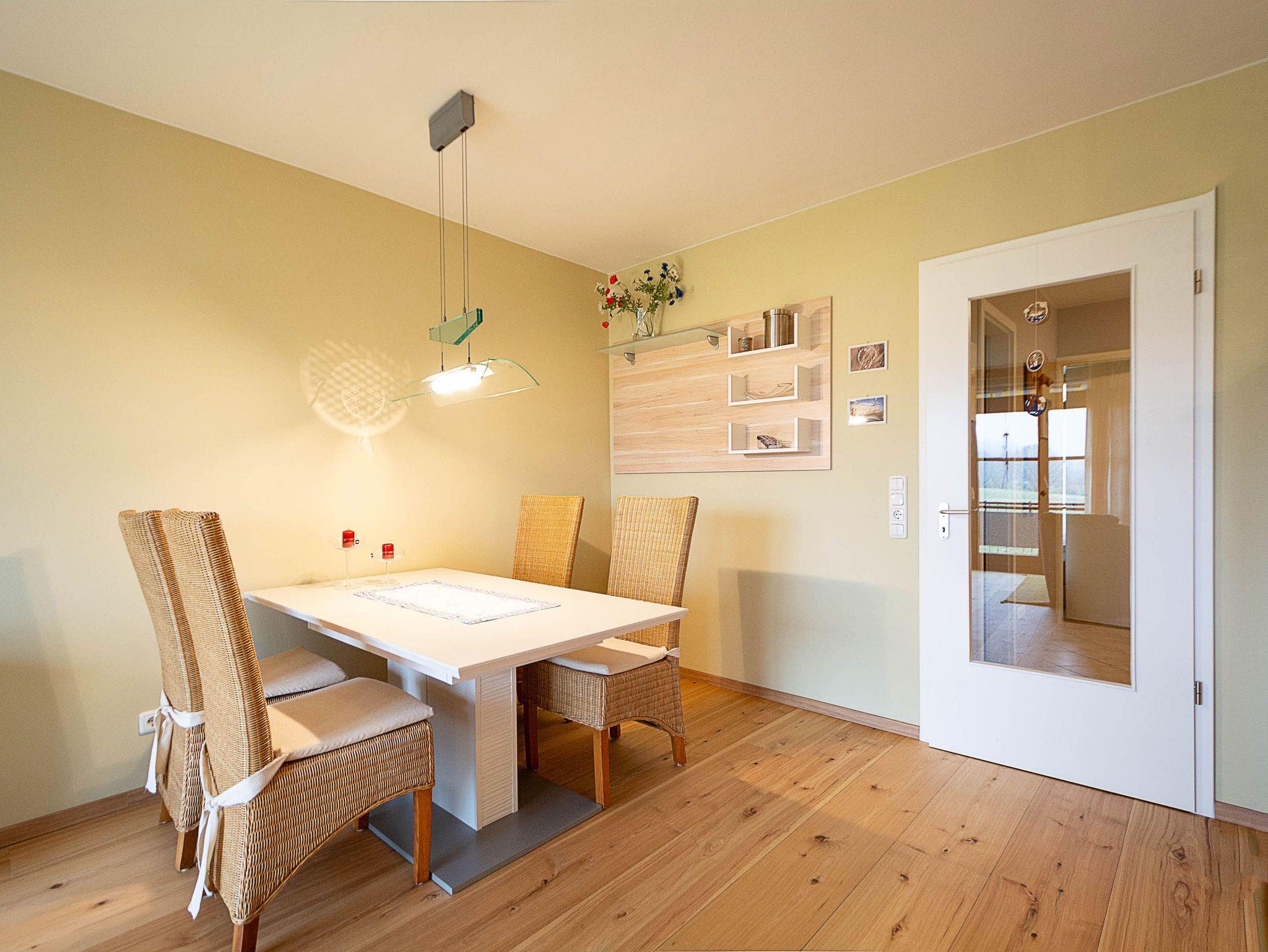 Die Wohnung wurde bewusst als digitale Detox-Oase gestaltet und somit auf WLAN verzichtet - ideal für Naturliebhaber. Von den Balkonen aus können Sie die Flugkünste der Schwalben bewundern. In der Sommerzeit beziehen die Schwalben ihr Quartier in ihrem separaten Turm auf der Wohnanlage. Auf den Balkonen sind ganzjährig die andernorts bereits selten gewordenen Spatzen zu Gast. Die gesamte Wohnung ist mit hochwertiger, ökologischer Lehmfarbe gestrichen, die ein gesundes Raumklima fördert und für eine natürliche Regulierung der Luftfeuchtigkeit sorgt.