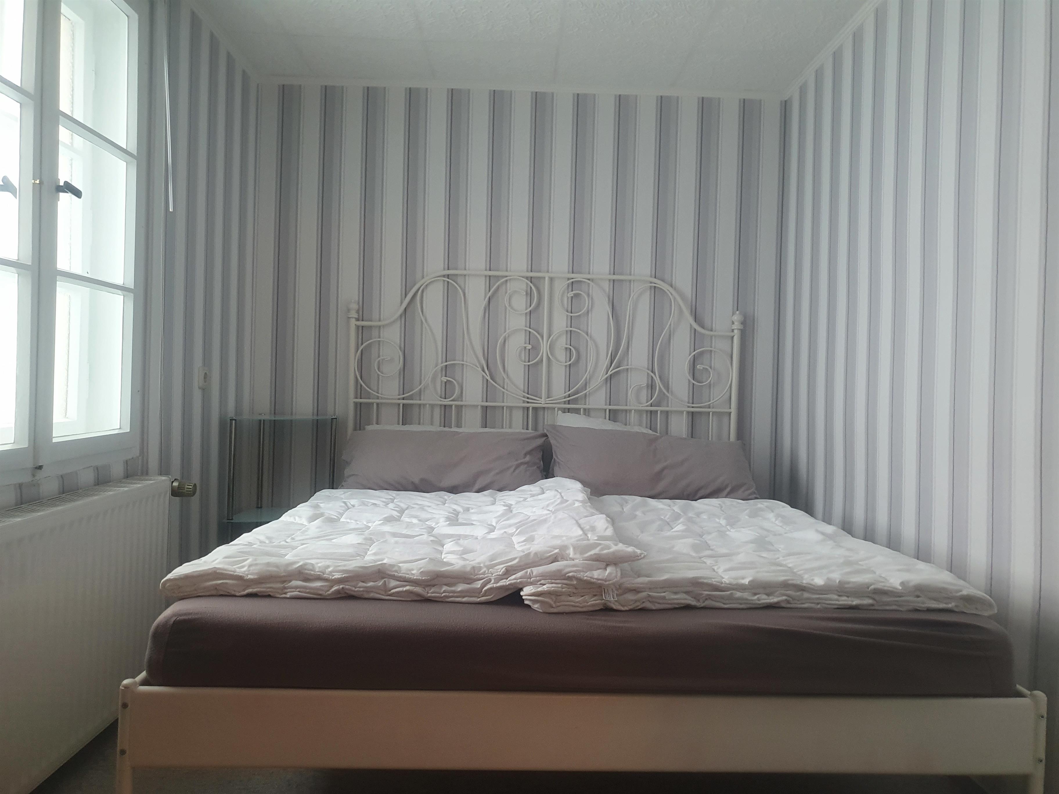 Die ca. 30qm große Ferienwohnung hat ein Schlafzimmer mit Doppelbett.