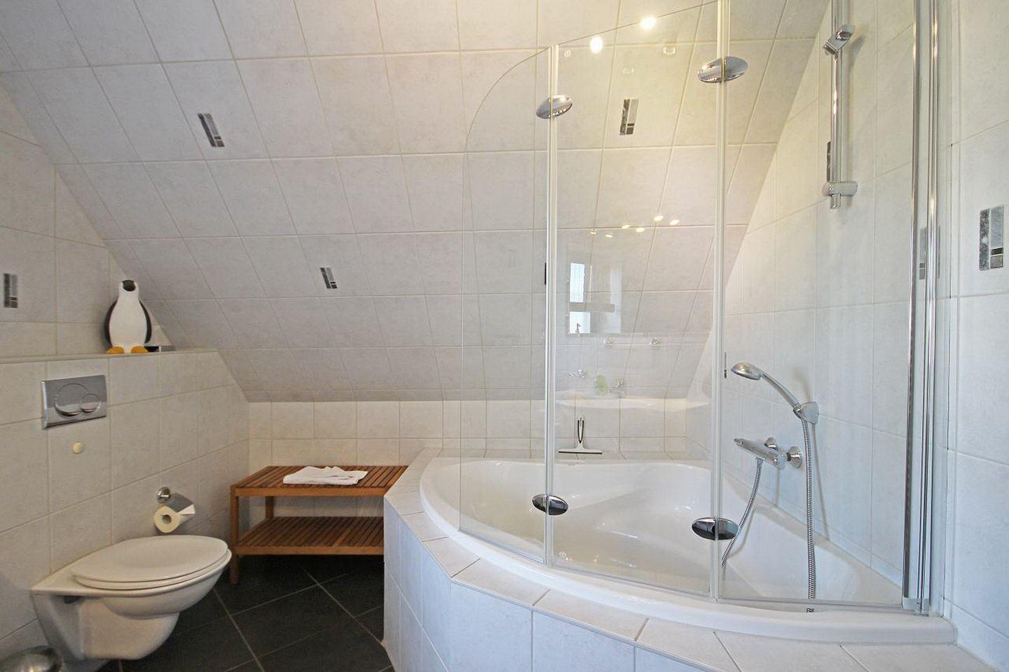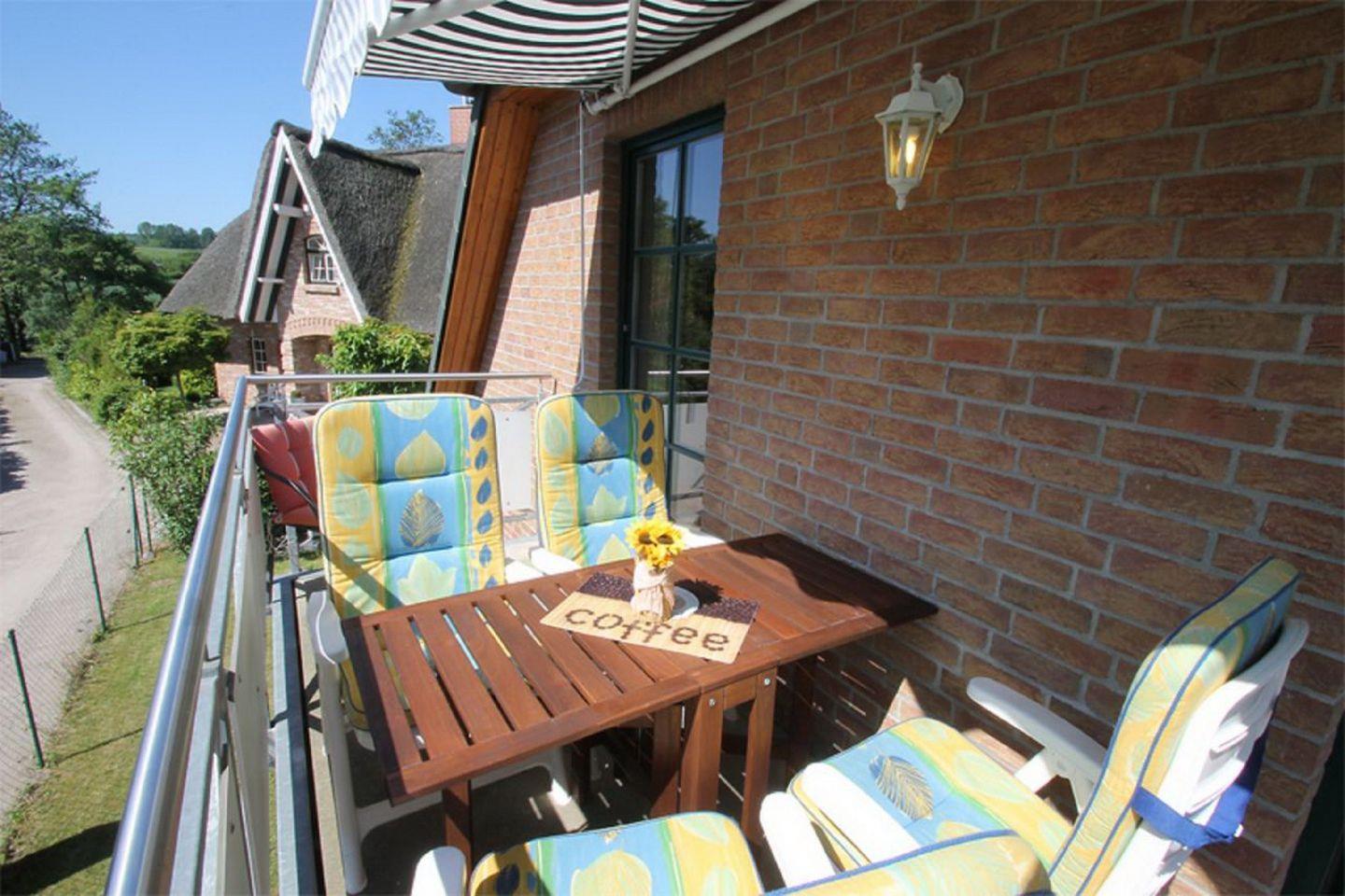 Die Ferienwohnung liegt im Obergeschoss und ist ca. 30 Gehminuten von einem Naturstrand entfernt. Auf 65 m² empfangen Sie ein kombinierter Wohn- und Essbereich mit Kamin, eine Küche, ein Duschbad, sowie zwei Schlafzimmer. Der Balkon mit Blick ins Grüne lädt Sie zu erholsamen Stunden im Freien ein.
