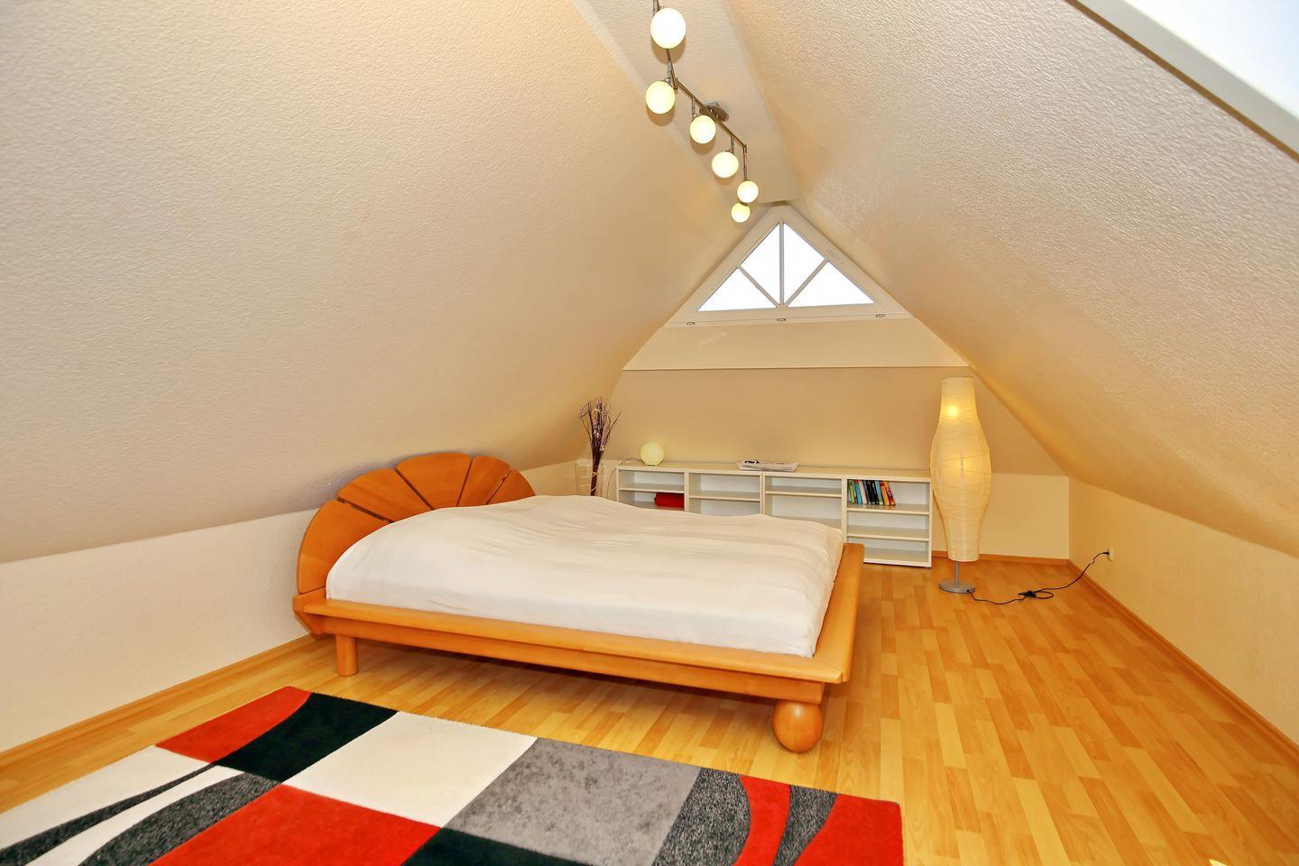 Auf gleicher Ebene gelangen Sie ins Schlafzimmer. Das Schlafzimmer ist für Sie mit einem komfortablen Doppelbett und einem großen Kleiderschrank eingerichtet. Für die Kleinen ist ein Kinderhochstuhl vorhanden. Vom Wohnbereich aus gelangen Sie über eine Treppe ins offene zweite Schlafzimmer. Dort empfängt Sie ein Doppelbett zur Nachtruhe. Zum Verdunkeln gibt es Vorhänge oder Rollos.