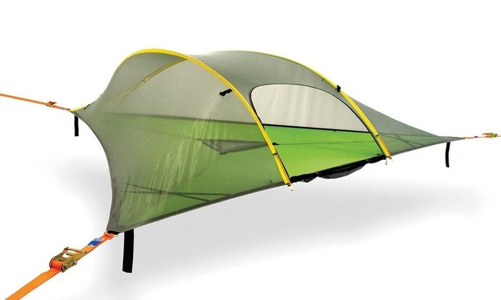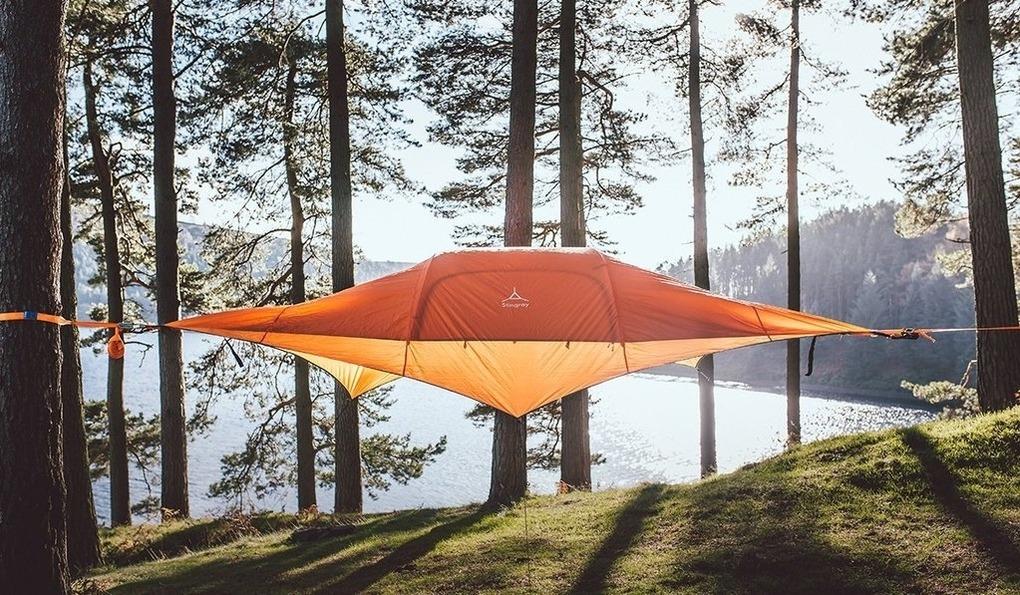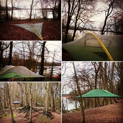 Die beiden Baumzelte eignen sich für maximal 3 Personen und schweben zwischen Bämen auf eine Anhöhe mit schönem Seeblick.