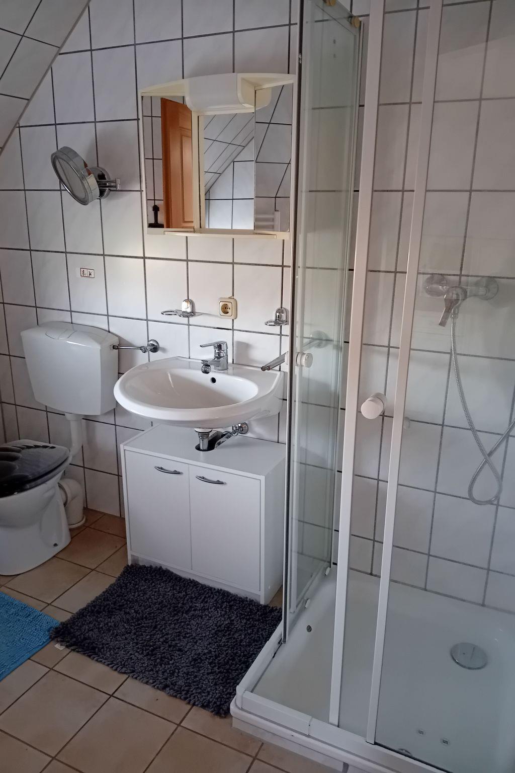 Our holiday flat on the upper floor is equipped with everything you need for a pleasant self-catering holiday. The use of the washing machine allows you to easily manage your luggage even during longer stays. The kitchen facilities include a three-ring hob, a filter coffee machine and a kettle so that you can start your day with a favourite ritual in the morning. The flat has a bathroom with shower to freshen up after a day of exploring.