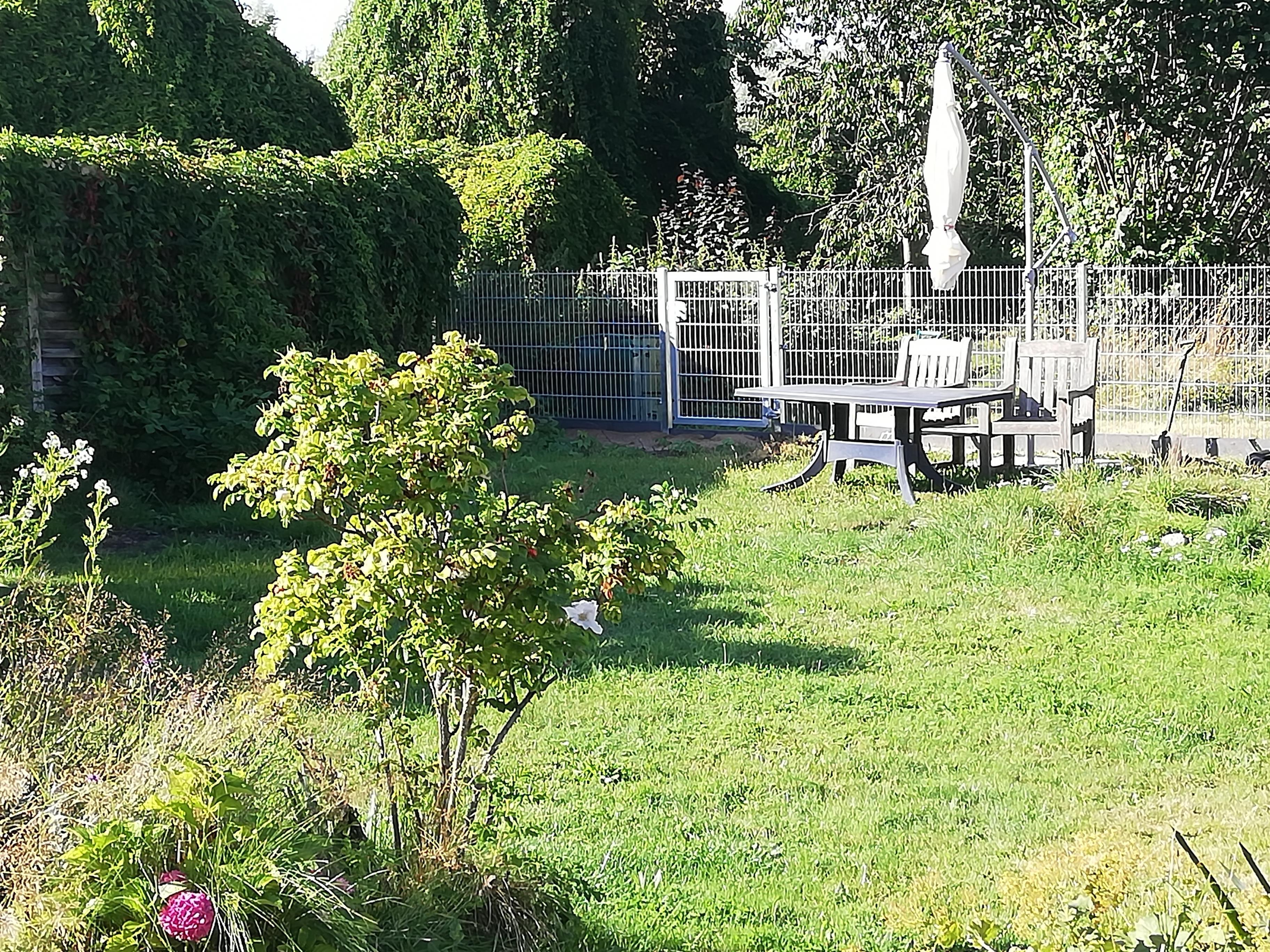 Der zur Wohnung gehörende Garten ist komplett eingezäunt.