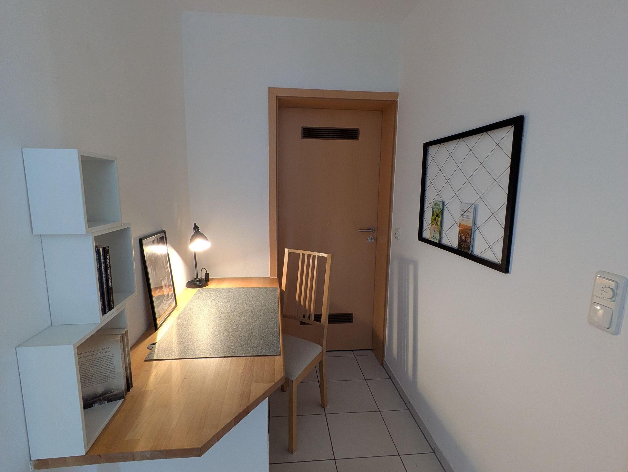 Der Flur ist großzügig geschnitten und verfügt über einen Schreibtisch. Von hier aus lassen sich die nächsten Ausflüge planen oder auch E-Mails für die Arbeit bearbeiten. Das kostenlose WLAN steht selbstverständlich zur Verfügung und eignet sich ideal für Workation.