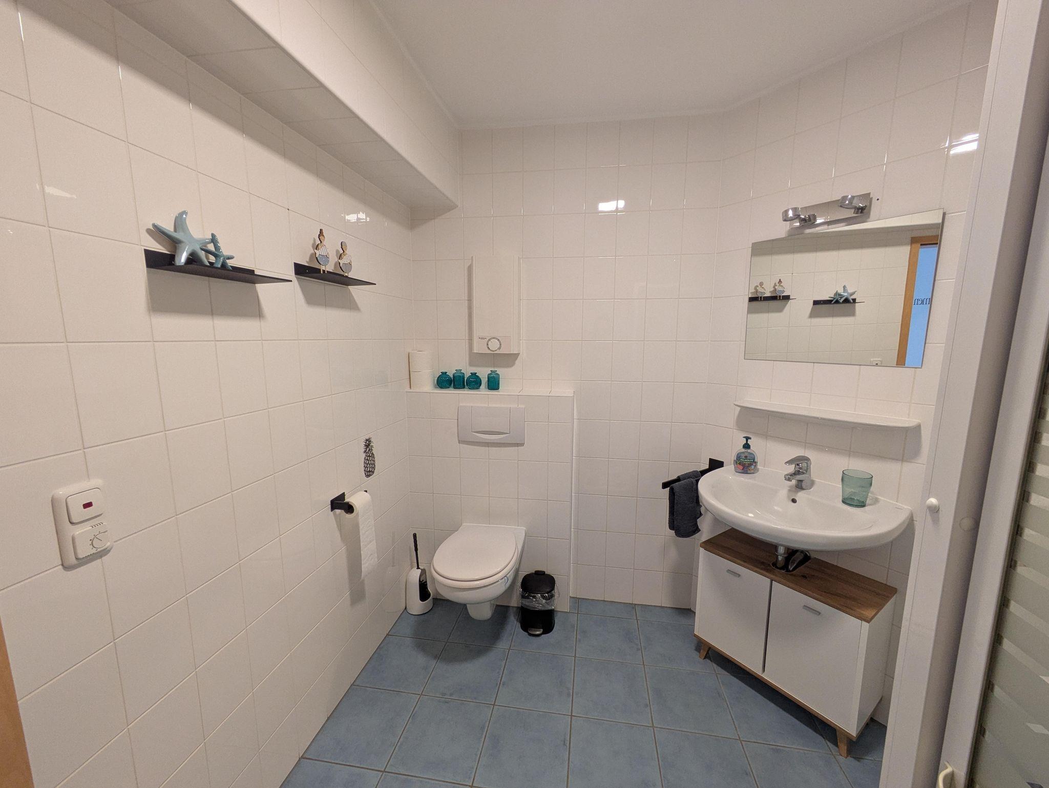 Das Badezimmer verfügt über eine ausreichende Größe und ist geschmackvoll eingerichtet und verfügt über eine Dusche. Handtücher sind selbstverständlich inklusive.
