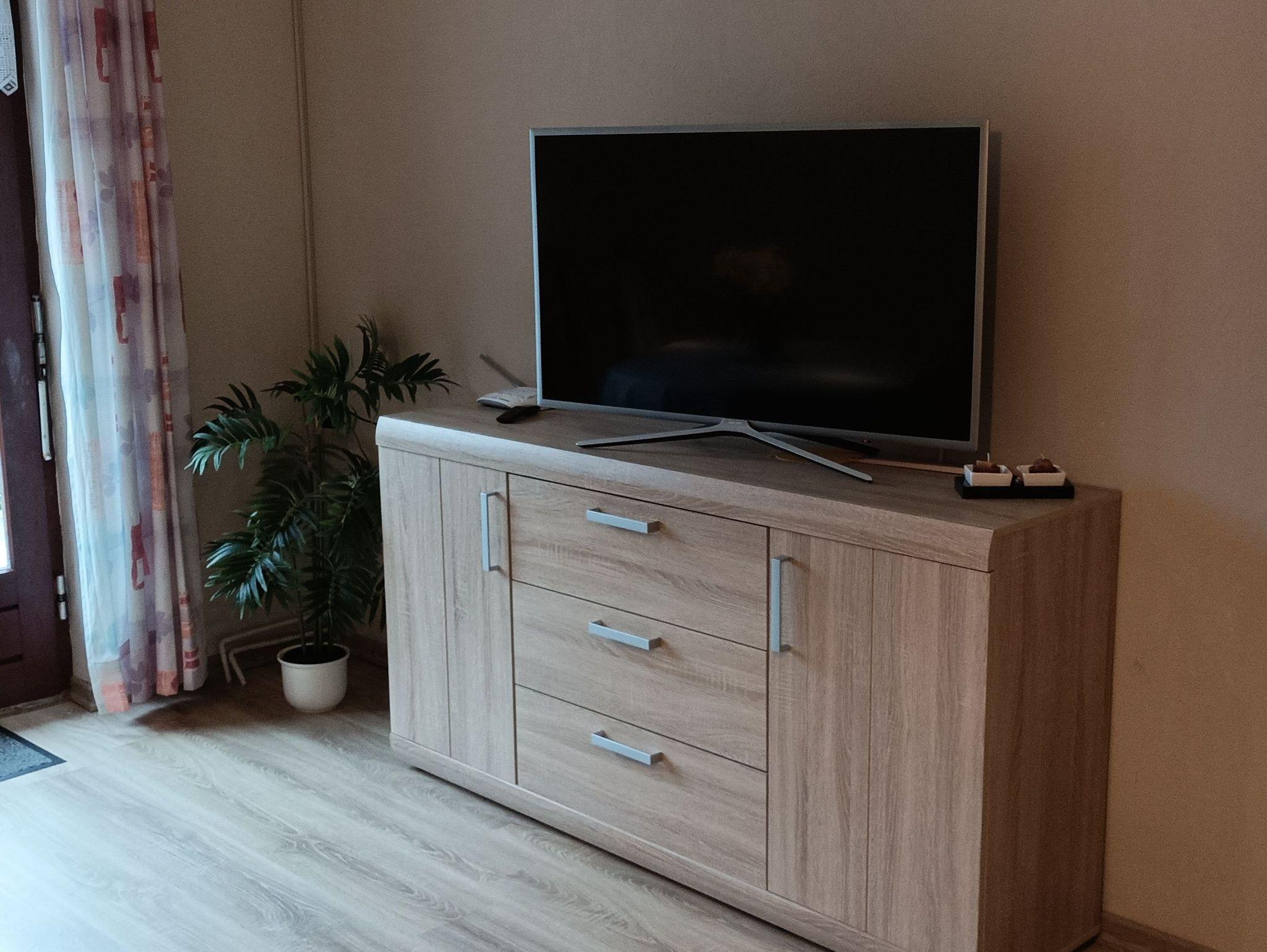 Die Wohnung befindet sich in der ersten Etage und bietet Platz für 4-5 Erwachsene sowie einem Kind. Eingeteilt ist diese in ein Wohnzimmer, zwei Schlafzimmer, Küche und ein Badezimmer und ein Gäste-WC.