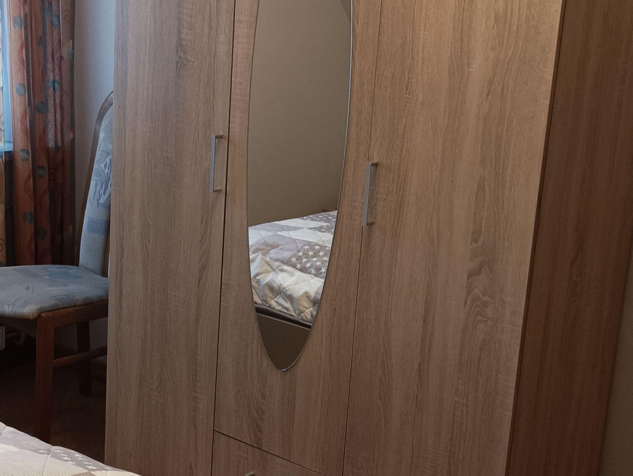Erstes Schlafzimmer: 1 Doppelbett (180 x 200 cm), 1 Einzelbett (100 x 200 cm), 2 Nachtschränke, Kleiderschrank,