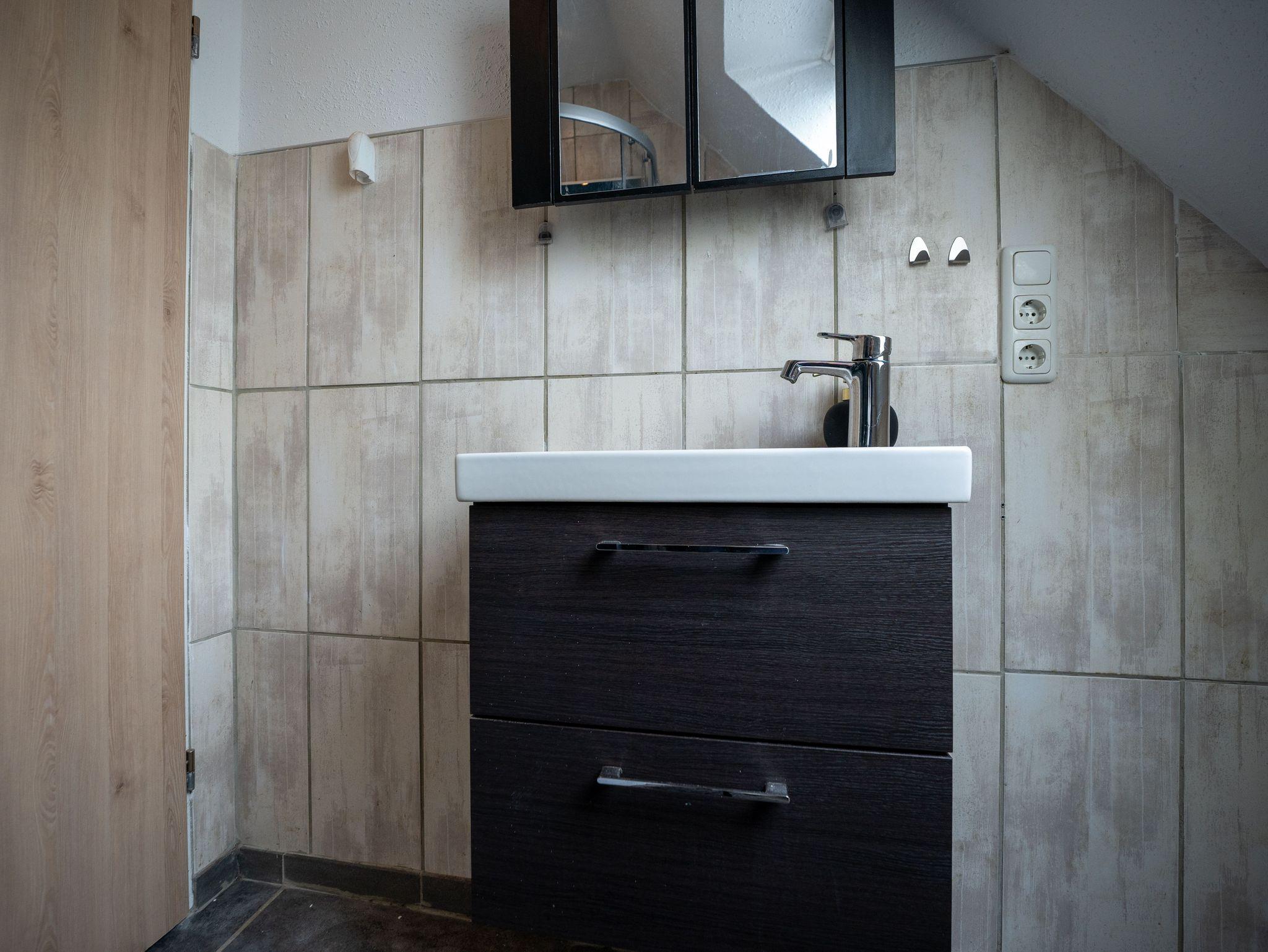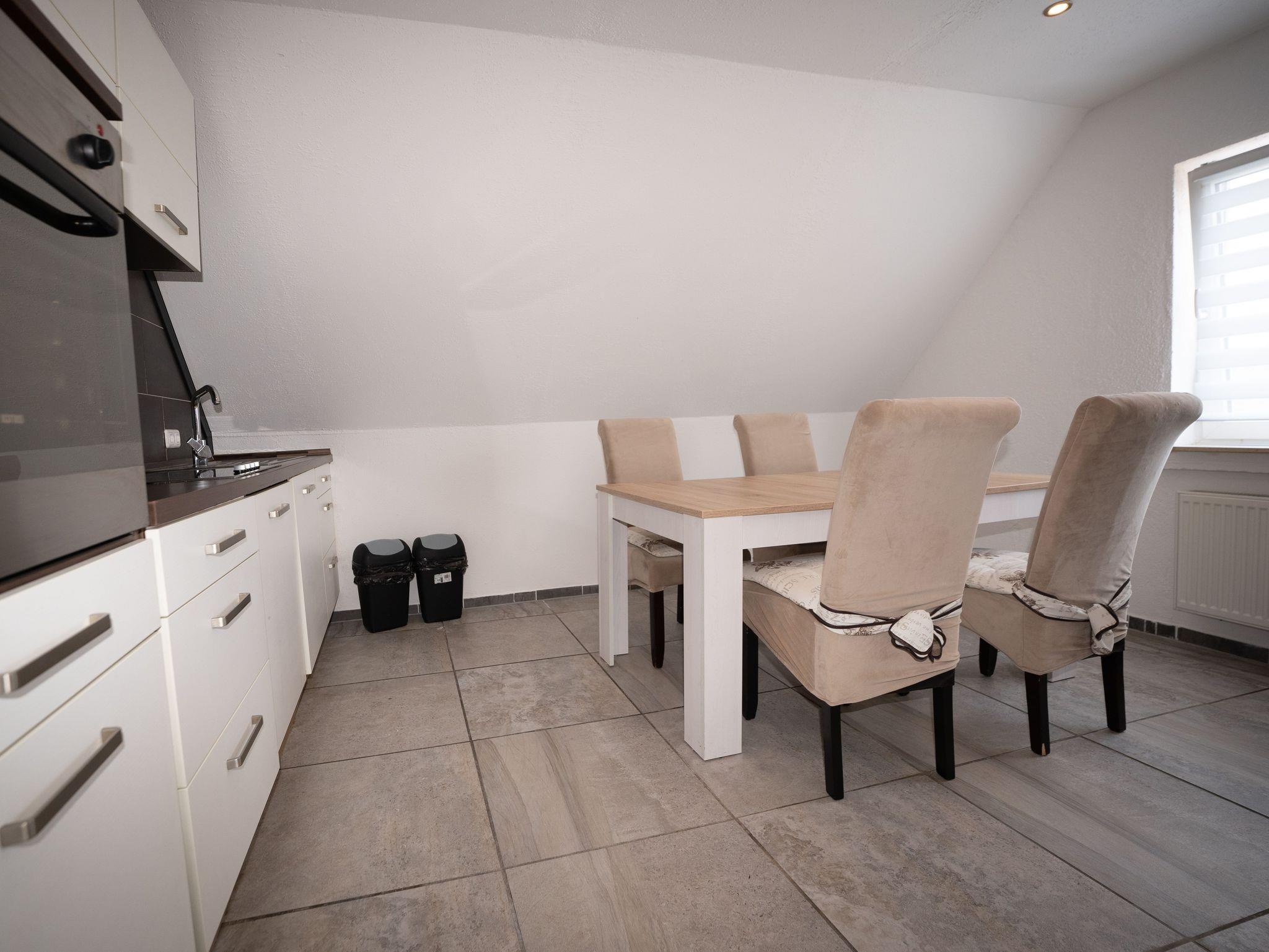 Die Ferienwohnung 216 Schwalbennest ist eine Dachgeschosswohnung mit 3 Schlafzimmern mit jeweils einem Doppelbett und einem Schlafzimmer mit zwei Einzelbetten. Ein Schlafzimmer befindet sich oben auf der Galerie und ist über eine Treppe zu erreichen. Das Tageslichtbad ist mit einer Dusche, einer Toilette und einem Waschbecken ausgestattet. Durch den Flur kommt man nicht nur in 2 Schlafzimmer und das Bad, sondern auch in das große Wohnzimmer mit offener Küche nebst Essplatz. Die Küchenzeile ist mit einem Ceran - Kochfeld, einem Backofen, einer Kaffeefiltermaschine, einer Senseo-Kaffeemaschine, Wasserkocher, Toaster, Mikrowelle, einem Geschirrspüler sowie einem Kühlschrank mit Gefriermöglichkeiten ausgestattet. Im Wohnzimmer gibt es eine Couch mit zwei Sesseln.