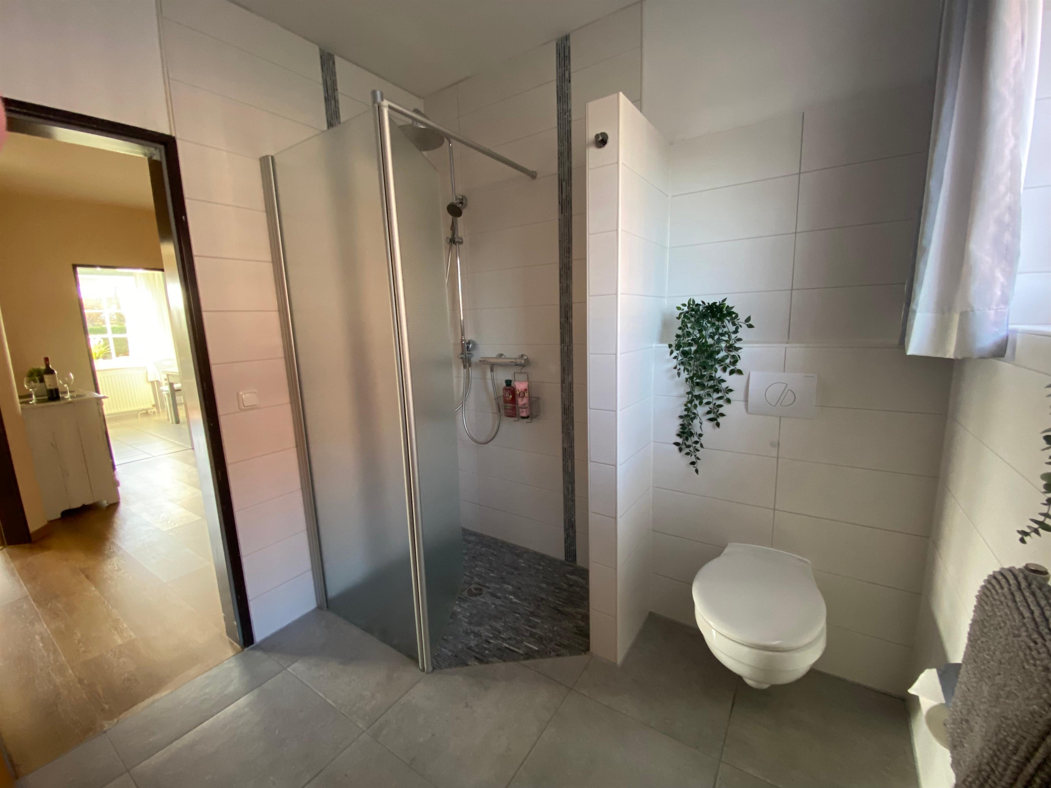 Bad mit Tropenregendusche (barrierefrei), 2 Waschtische und WC