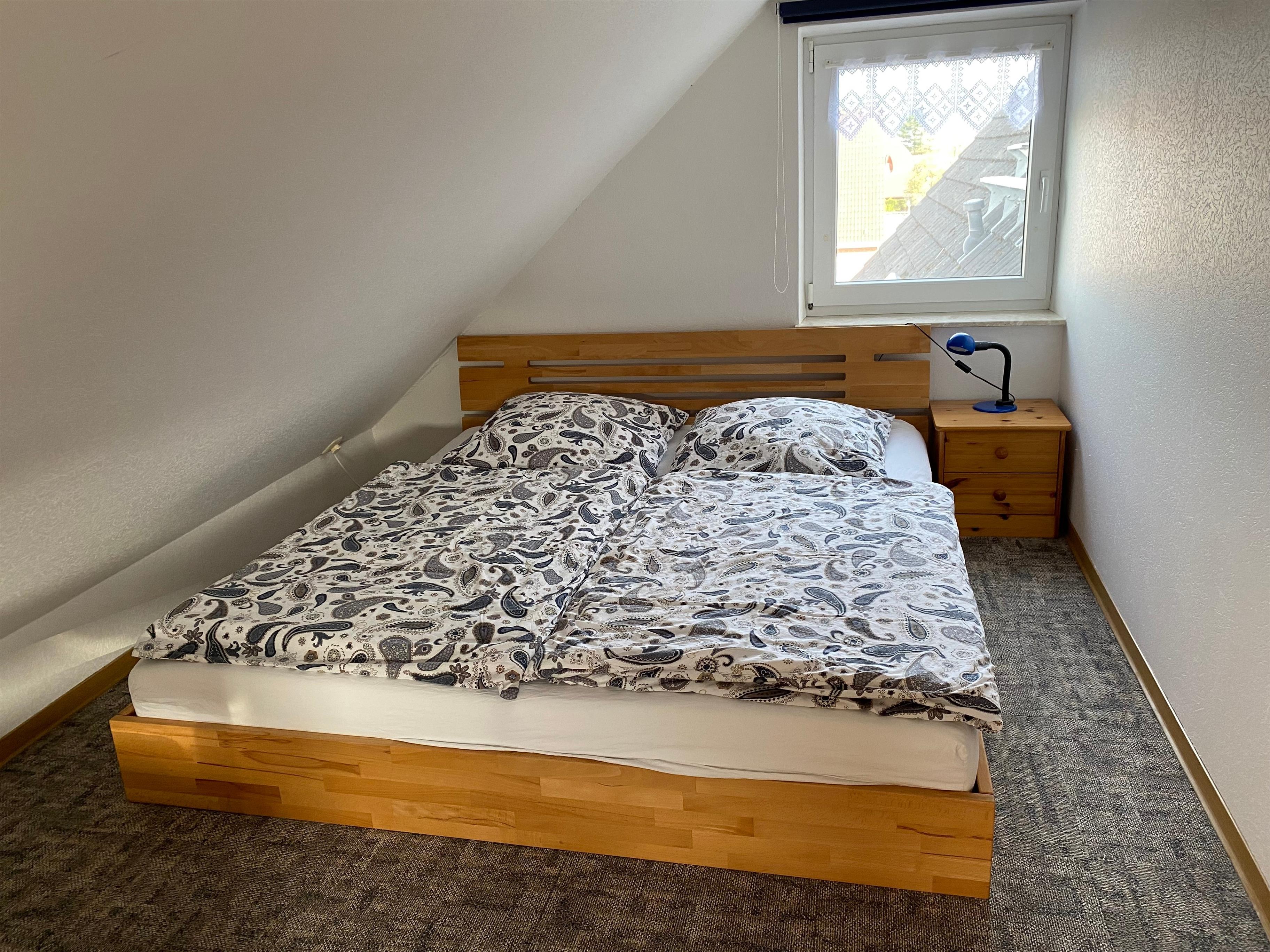1 Schlafzimmer mit Doppelbett und Einzelbett