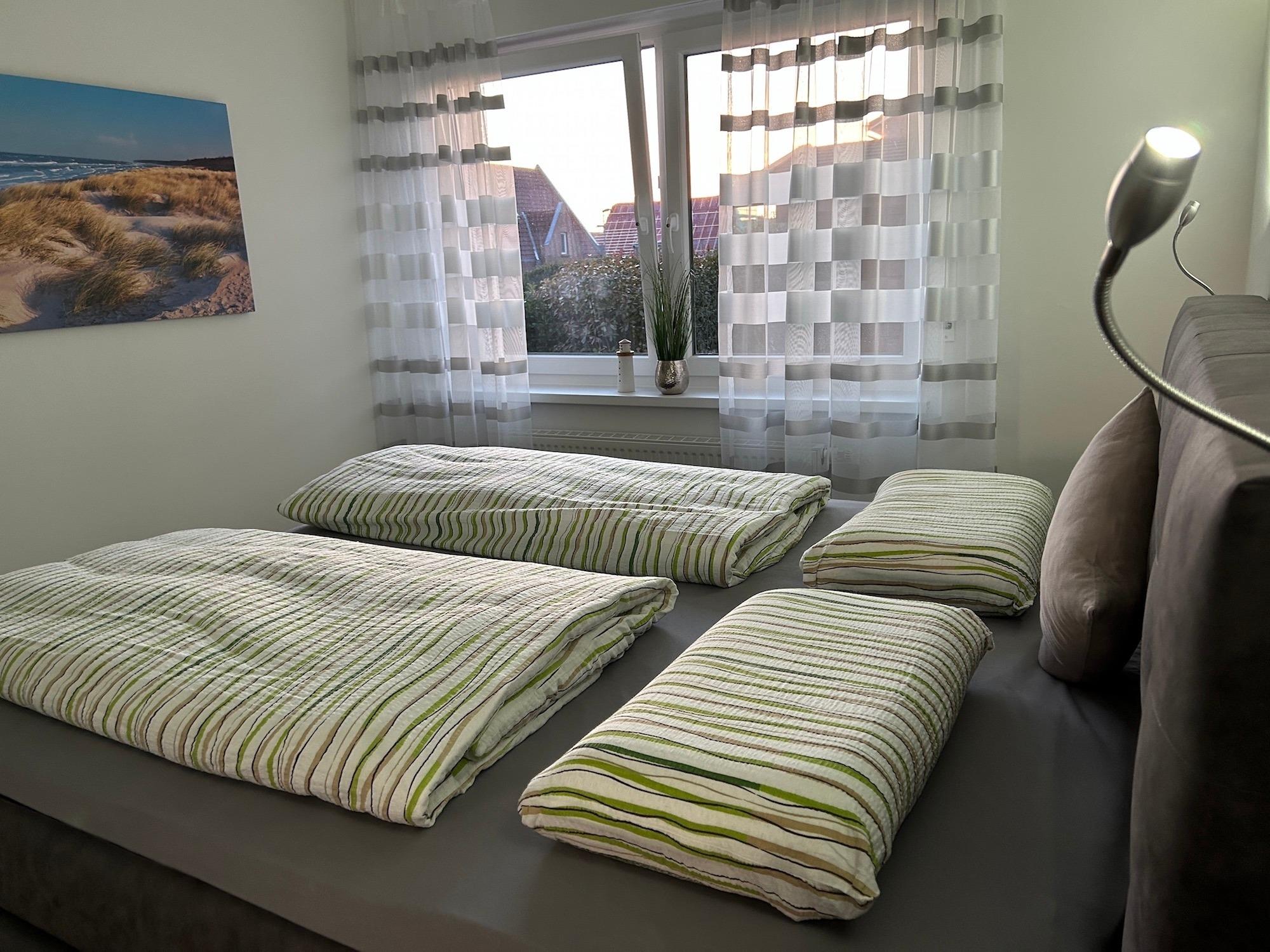 Die 2 Schlafzimmer bieten ausreichend Platz für Ihr Reisegepäck. In beiden Schlafräumen befindet sich hochwertiger Vinylfussboden (allergikerfreundlich). Für Ihren Schlafkomfort sorgt je Schlafzimmer ein BoxSpring-Doppelbett (Schlafzimmer 1: 180×200 cm und Schlafzimmer 2: 160×200 cm). Für unsere kleinsten Gäste können wir optional ein Babybett und einen Hochstuhl bereit stellen, sprechnen Sie uns bei Bedarf gerne dazu an.