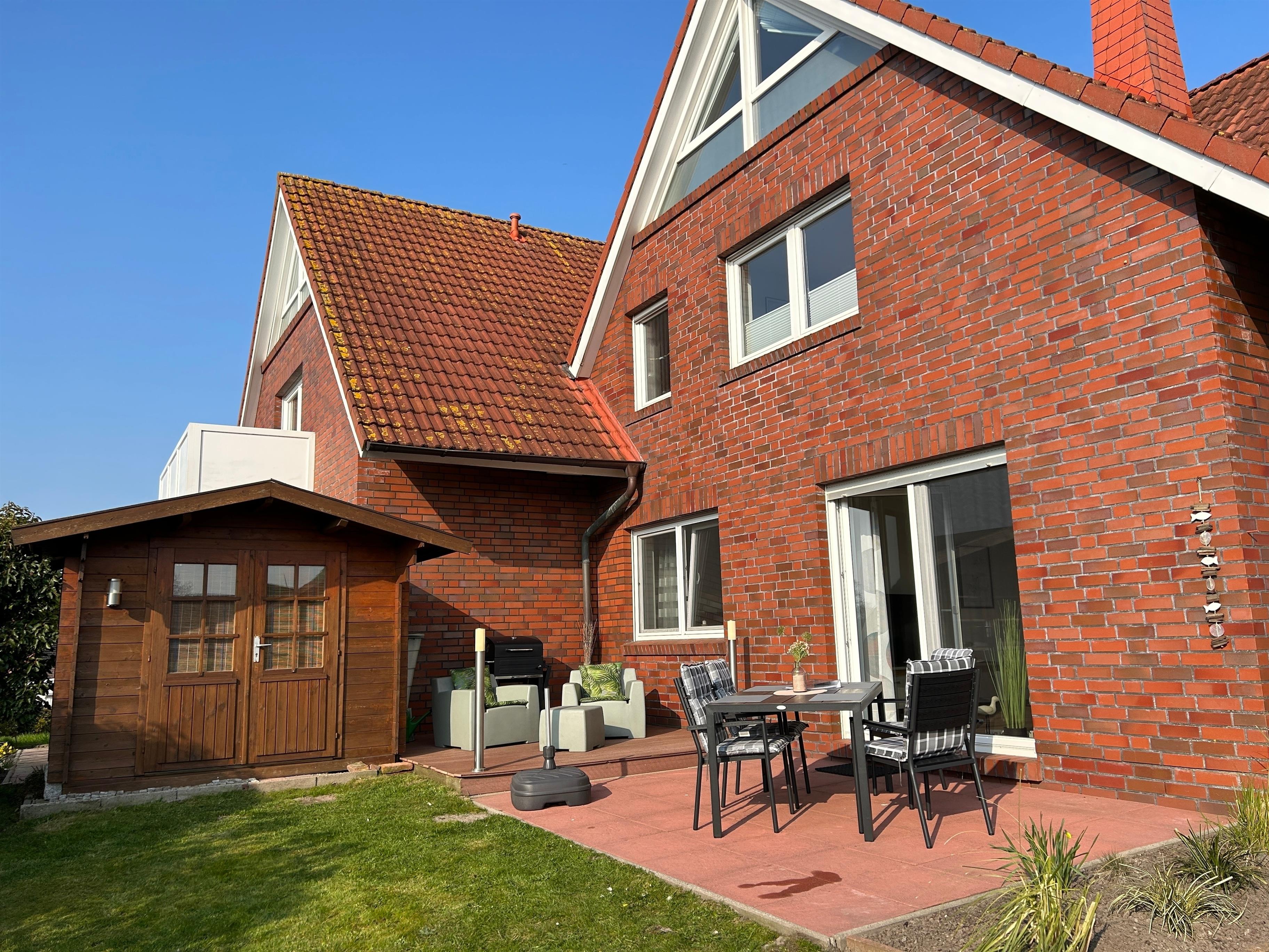 Alle Fenster sind mit Jalousien ausgestattet und verfügen über Fliegengitter. Selbstverständlich steht Ihnen direkt an der Wohnung Ihr Parkplatz zur Verfügung. Ein abschließbares Gartenhaus zum Unterstellen von Fahrrädern und Strandutensilien rundet die Ausstattung ab.