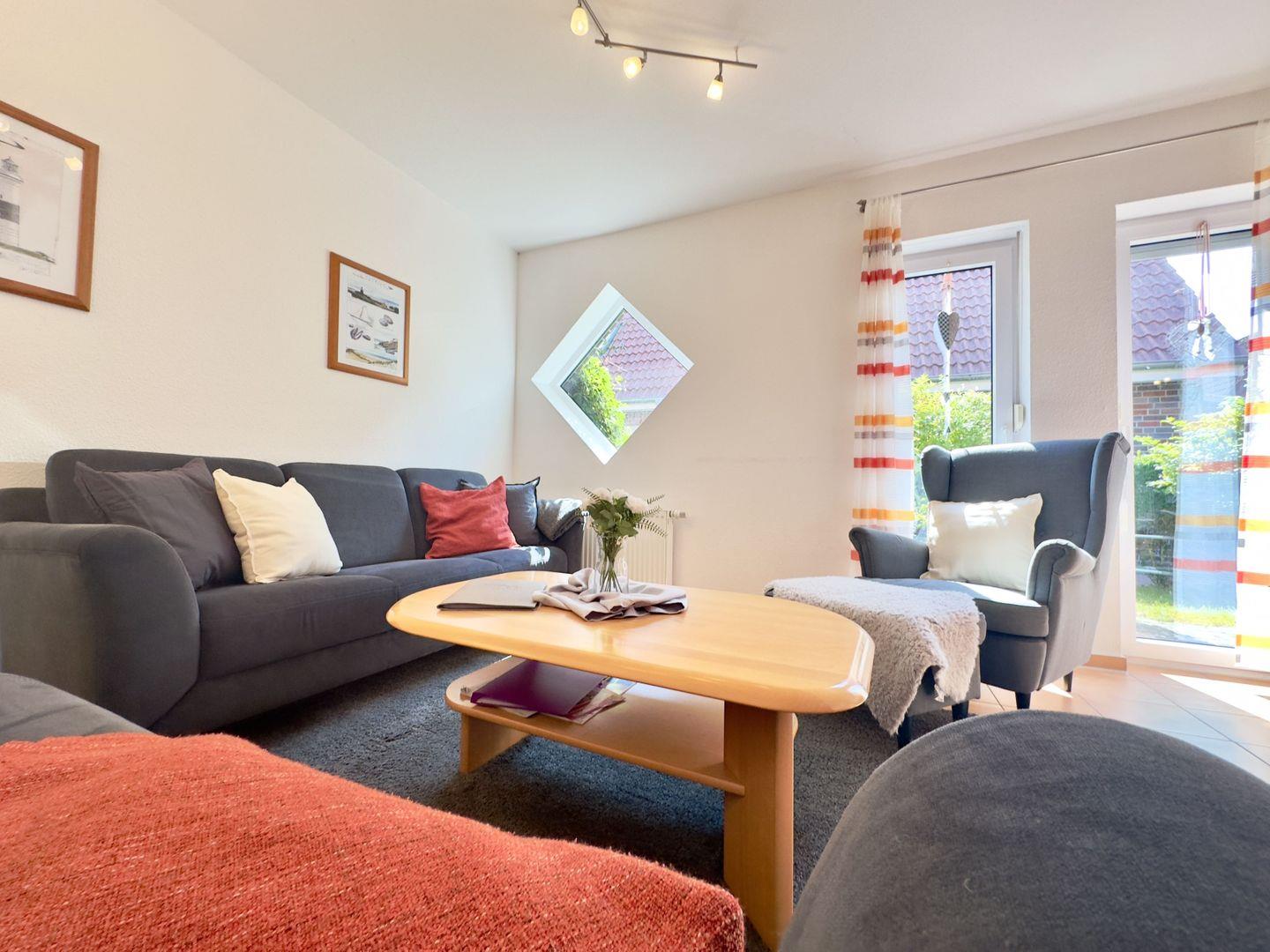 Dieses moderne Komfort- Ferienhaus in ruhiger Lage, direkt Am Yachthafen, an der Harle-Promenade gelegen, bietet mit seinen 75qm Platz für 5 Erwachsene und 1 Kleinkind.