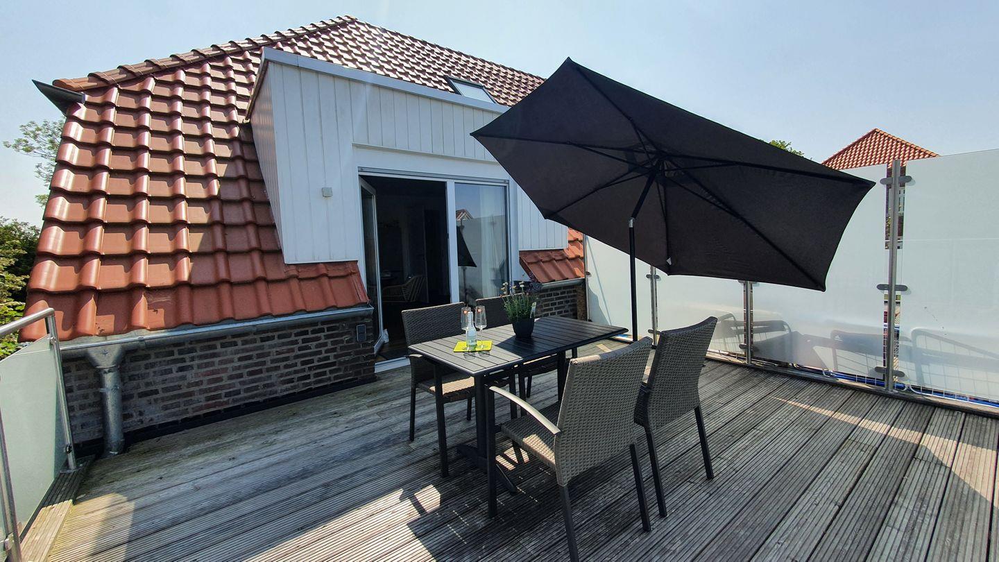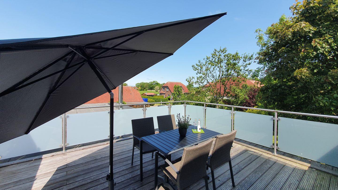 Entspannen Sie mit einem schönen Buch bei einer Tasse Ostfriesentee in der gemütlichen Chillarea oder bei schönem Wetter draußen auf der großen Dachterrasse. Denn diese lädt einfach nur zum Entspannen und Abschalten ein.