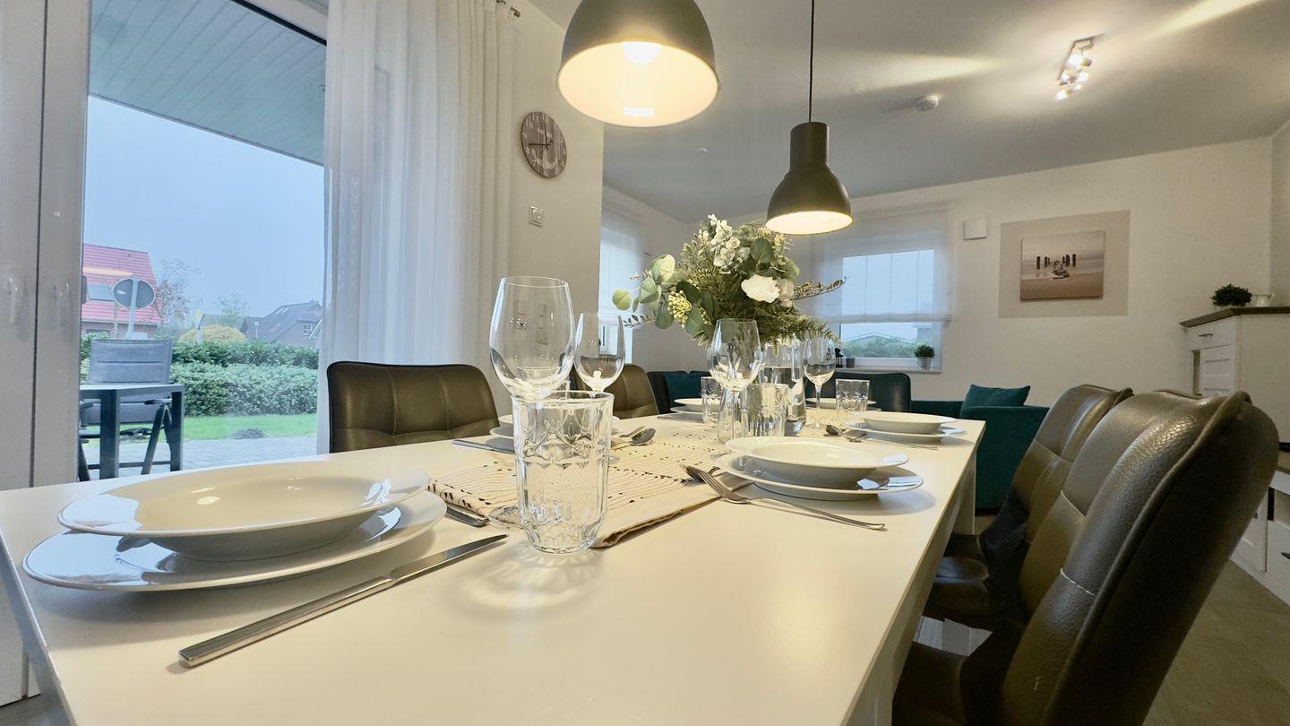 Ein Stellplatz und eine Garage bieten zusätzlichen Komfort. Das 2019 erbaute Haus ist ideal für Familien, Freunde oder Mehrgenerationen-Urlaube – hier können Sie die Schönheit der Nordsee in vollen Zügen genießen.