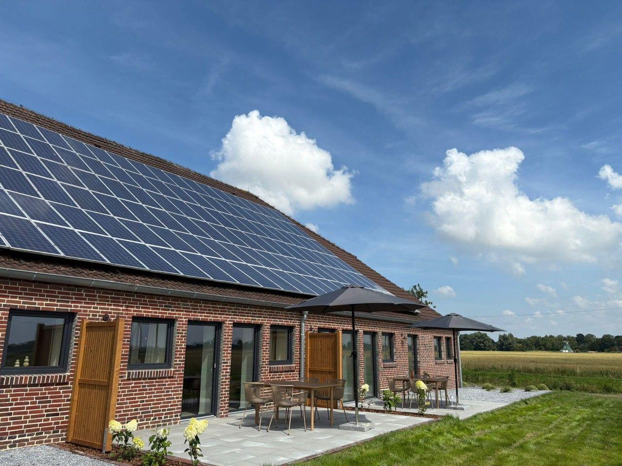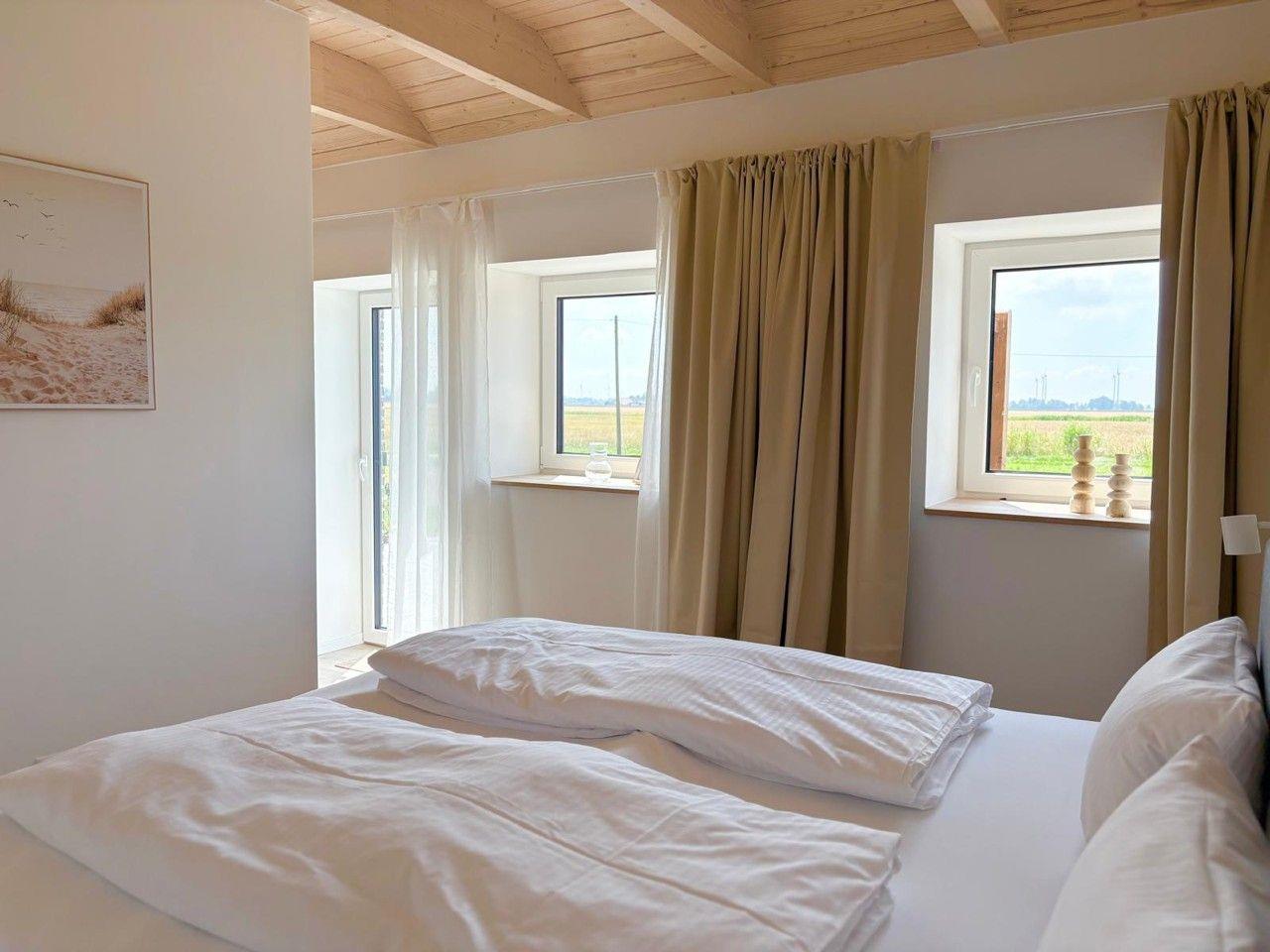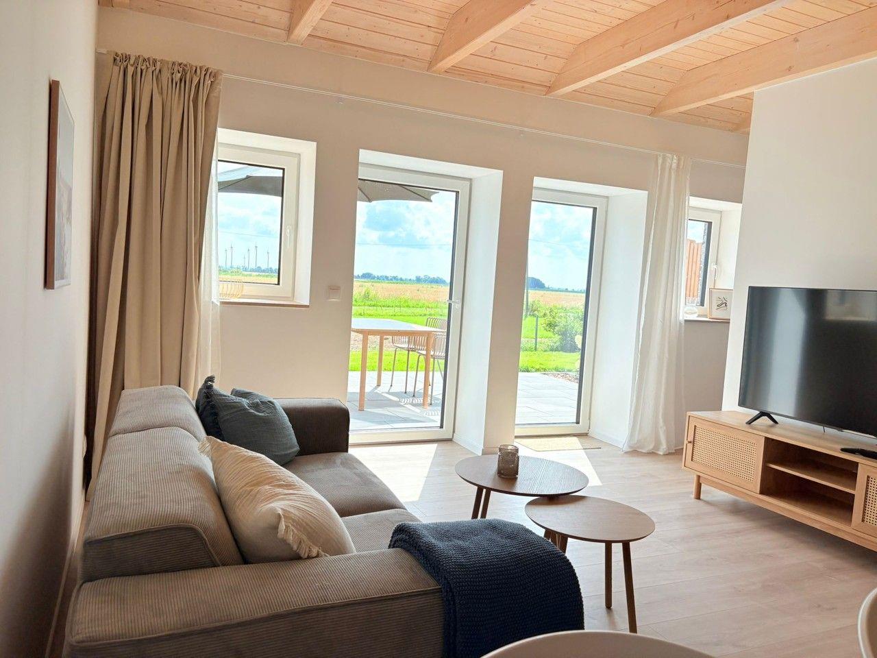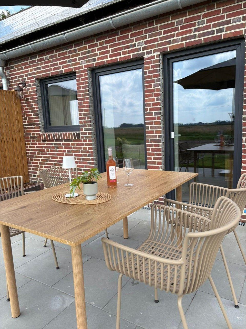 Der freistehende Gulfhof Funnixerhörn dree bietet auf 60 m² modernen Komfort für bis zu zwei Personen. Genießen Sie ein offenes Wohnkonzept mit voll ausgestatteter Küche, bodengleicher Dusche und gemütlicher Sofaecke. Die große Terrasse, ein 3.000 m² großes, abgeschlossenes Grundstück sowie Garten mit Grill und Tischtennisplatte machen die Unterkunft ideal für entspannte Tage zu zweit und Familien mit Kindern.