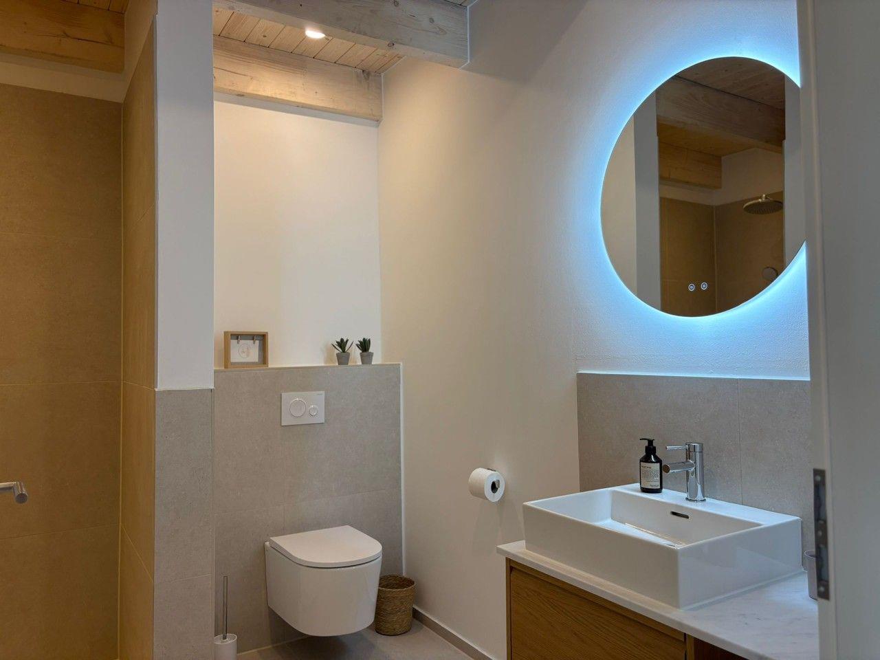 Wie in allen unseren Wohnungen genießen sie den Komfort eines modernen Badezimmers mit begehbarer Regendusche.