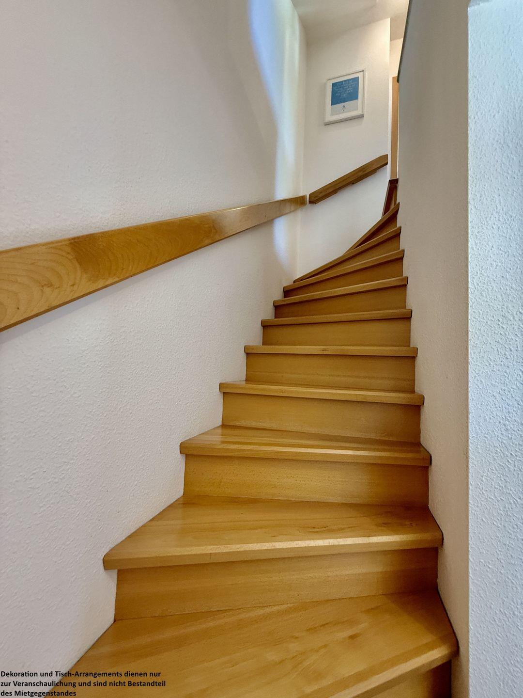 Über eine Holztreppe gelangen Sie ins Obergeschoss, wo sich zwei liebevoll gestaltete Schlafzimmer befinden.