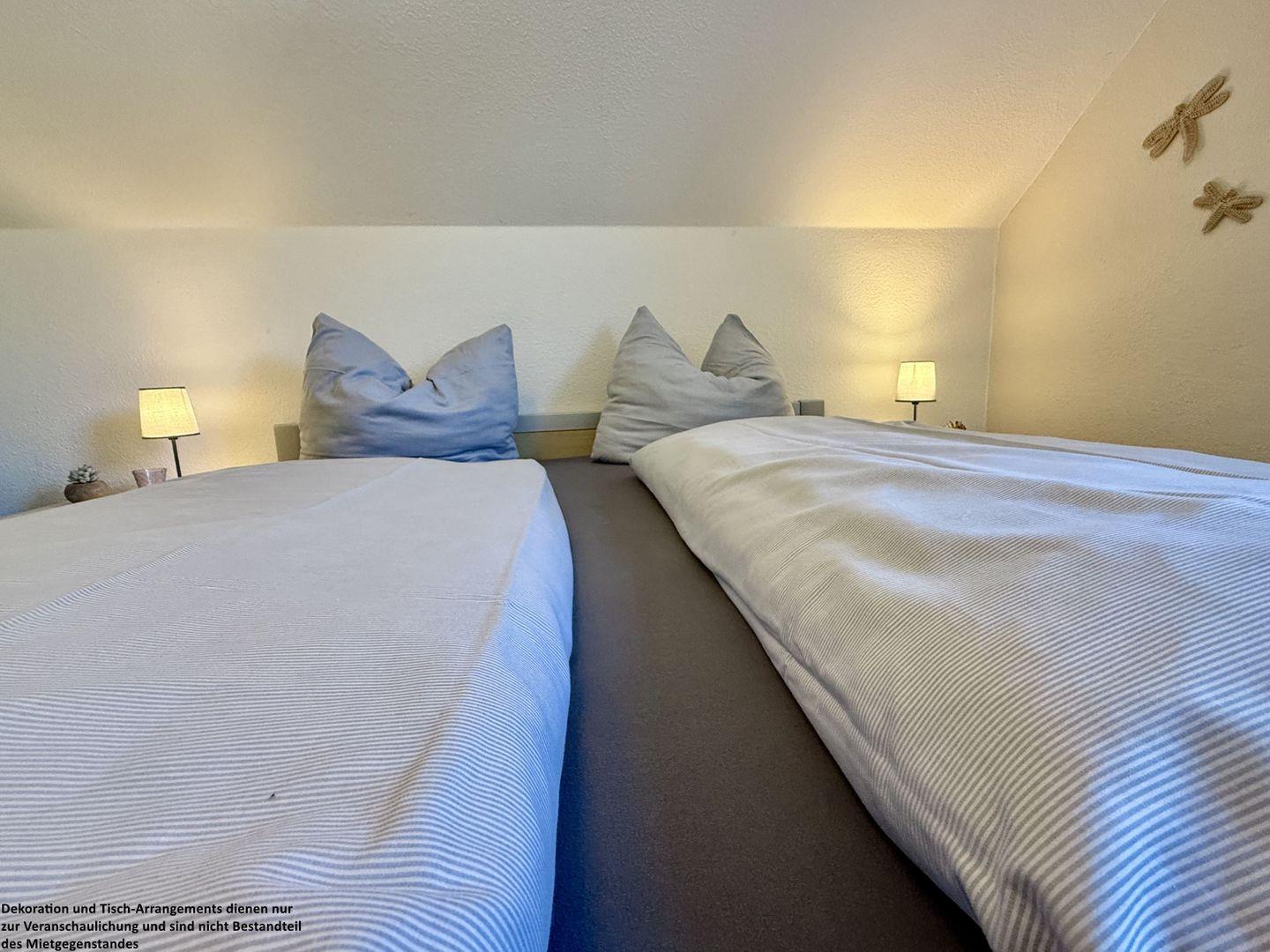 Das zweite Schlafzimmer verfügt über zwei Einzelbetten sowie einen geräumigen Kleiderschrank.