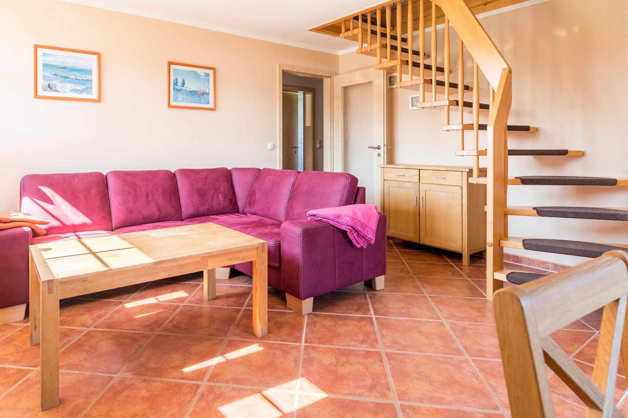 Die 3-Zimmer-Ferienwohnung im 1. Obergeschoss ist für einen Urlaub mit bis 4 Personen + Baby/ Kleinkind eingerichtet. Sie erstreckt sich über 2 Ebenen.