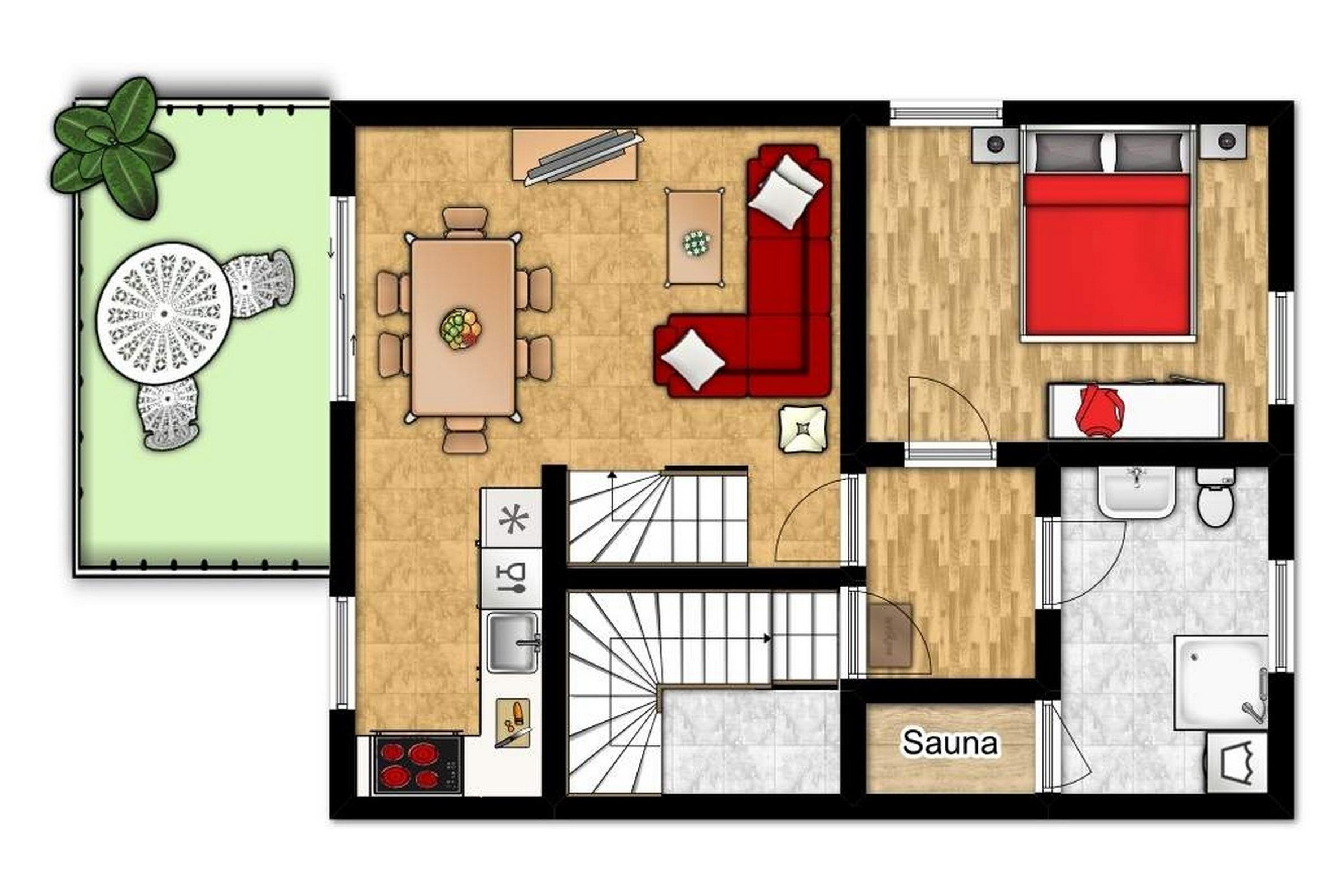 In der anliegenden Sauna können Sie gegen Gebühr nach Lust und Laune relaxen.