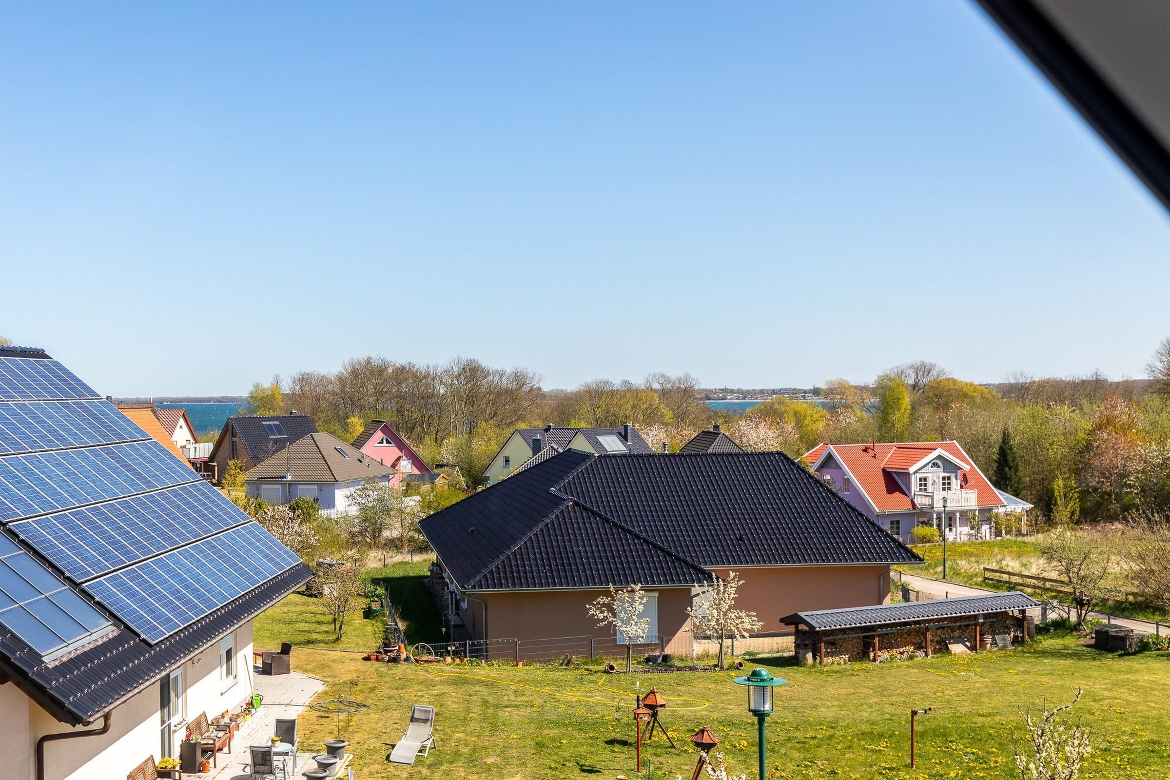 Vom gemütlich eingerichteten Wohn-/Esszimmer gelangen Sie auf den großen möblierten Ostbalkon und können sogar einen Blick auf die nah gelegene Ostsee erhaschen.
