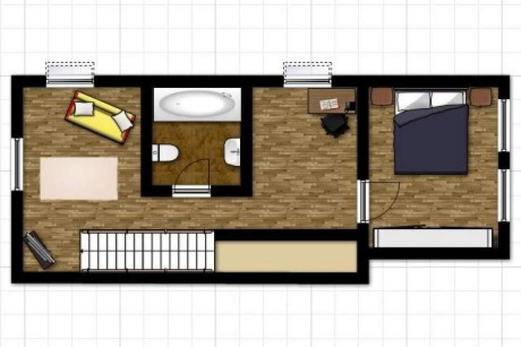 Das zweite Schlafzimmer befindet sich auf diesem Geschoss und bietet ein weiteres komfortables Doppelbett und einen Kleiderschrank.