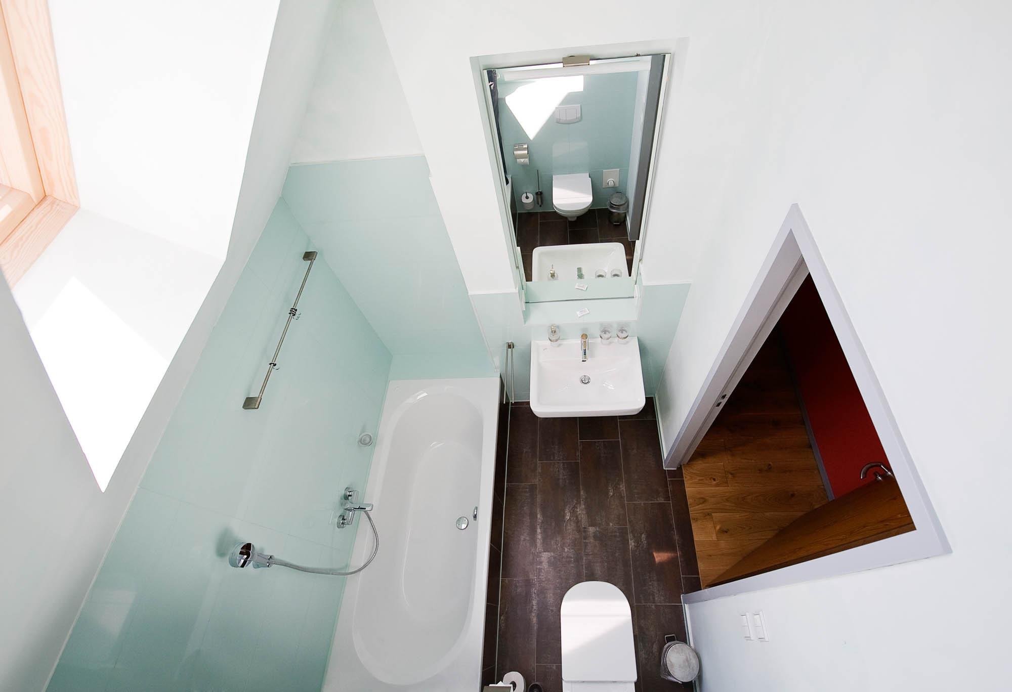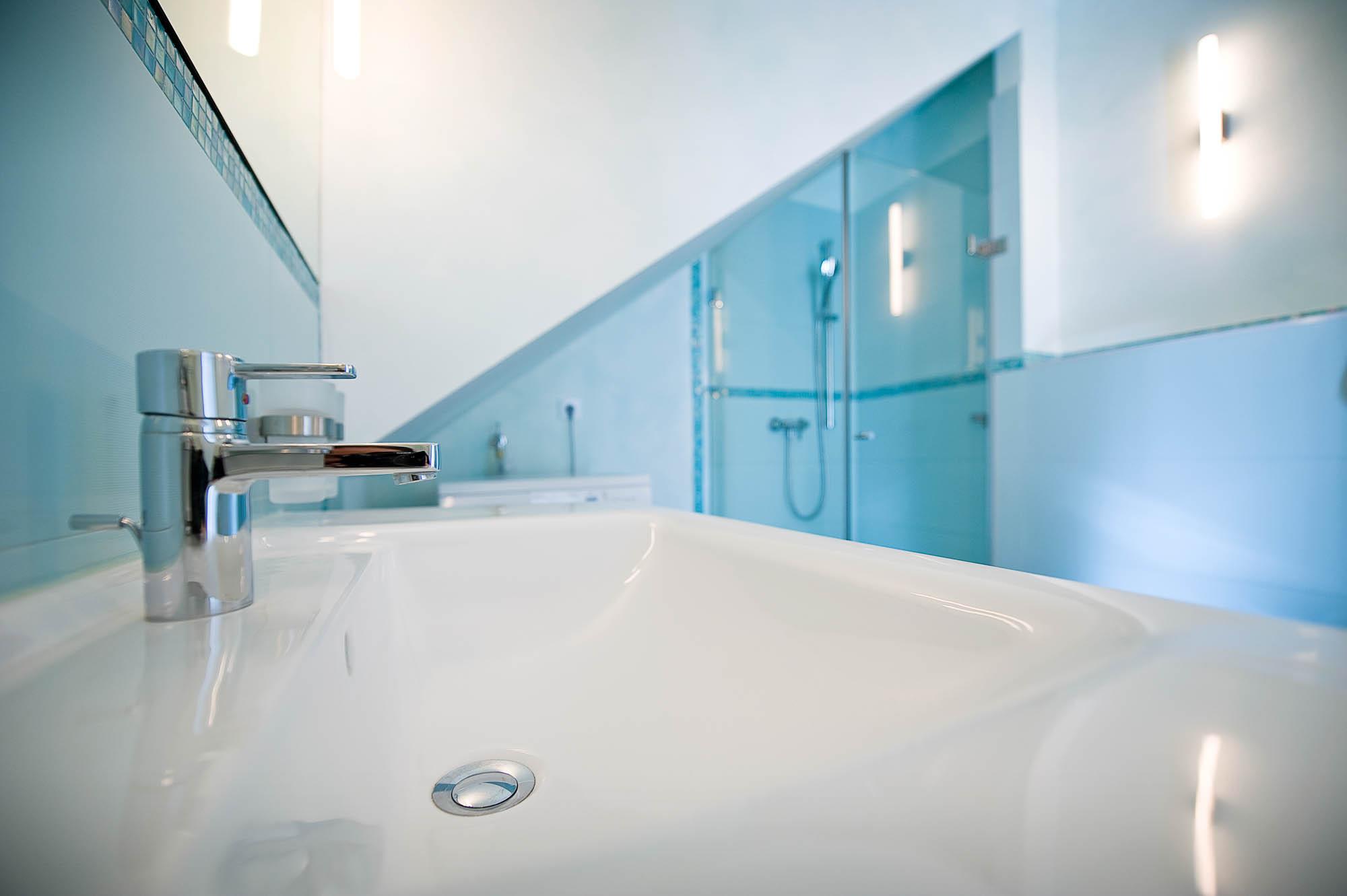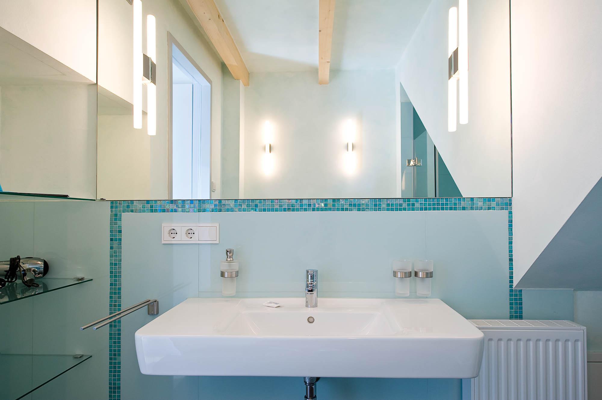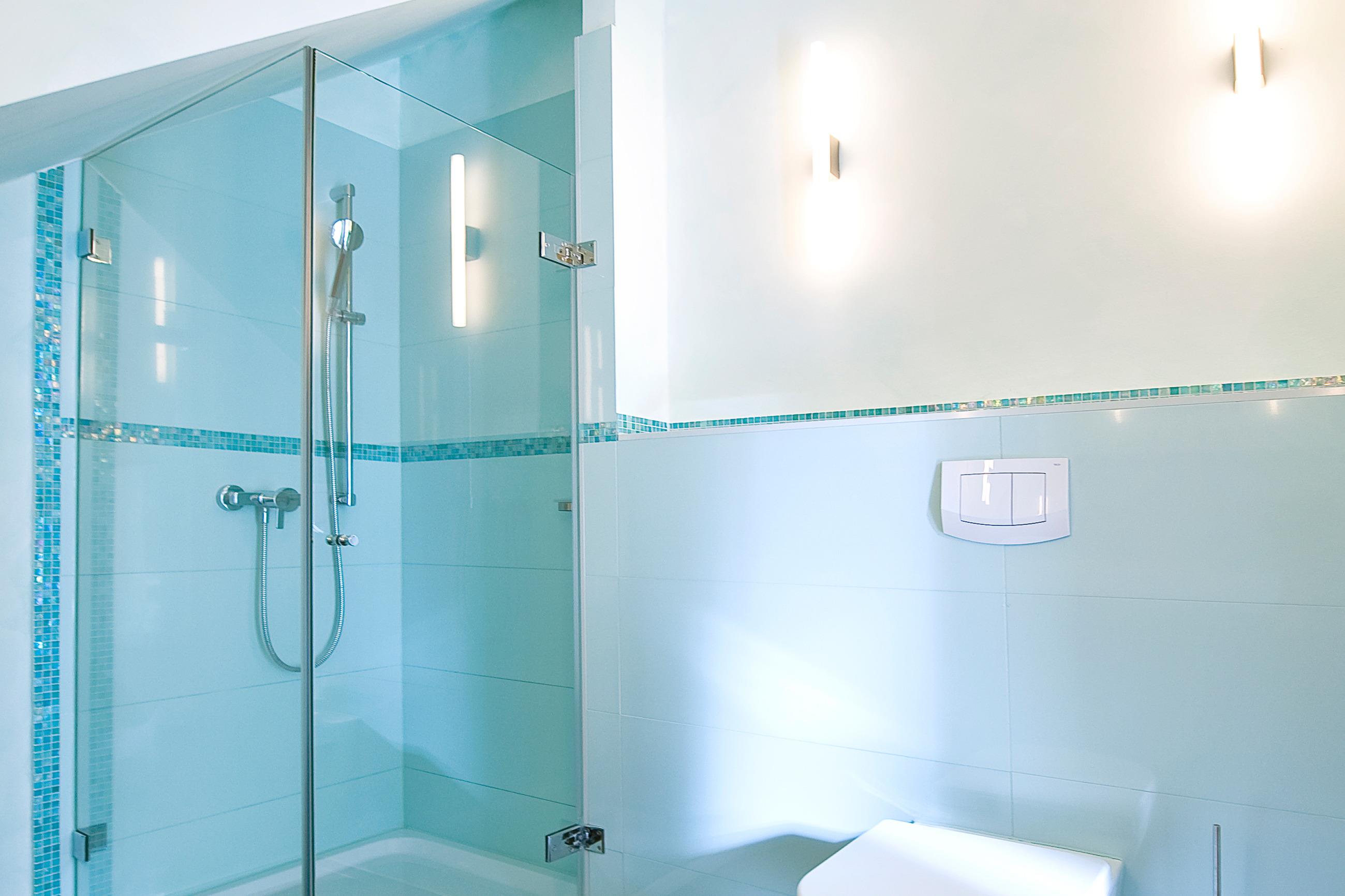 Das moderne Bad auf selbiger Ebene verspricht besten Komfort und ist mit einer Dusche, Waschbecken und WC ausgestattet.