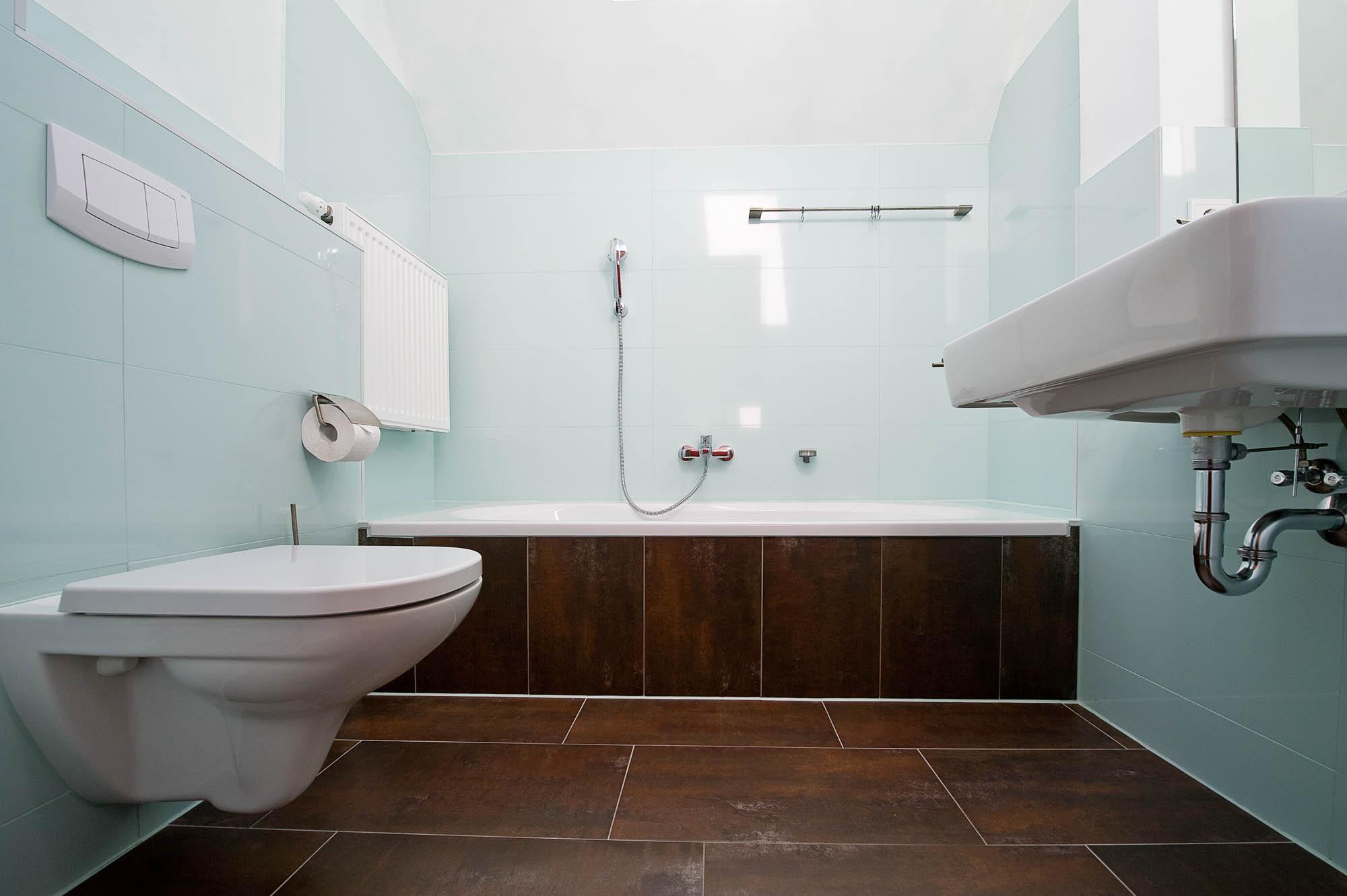 Ebenso finden Sie hier das zweite moderne Badezimmer. Dieses ist mit Badewanne und WC eingerichtet. Das Fenster erhellt diesen Raum zusätzlich mit Tageslicht.