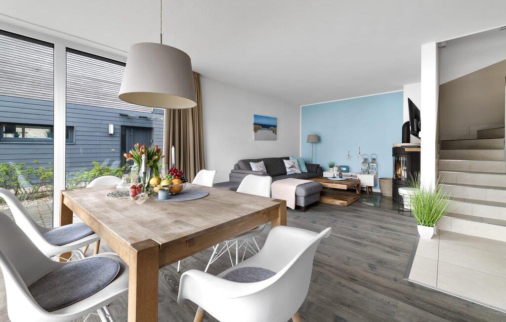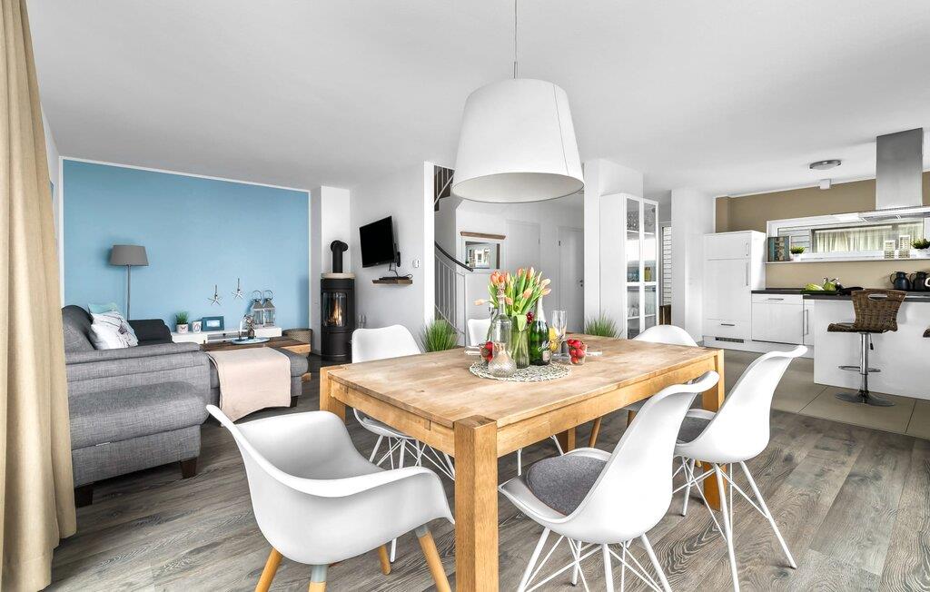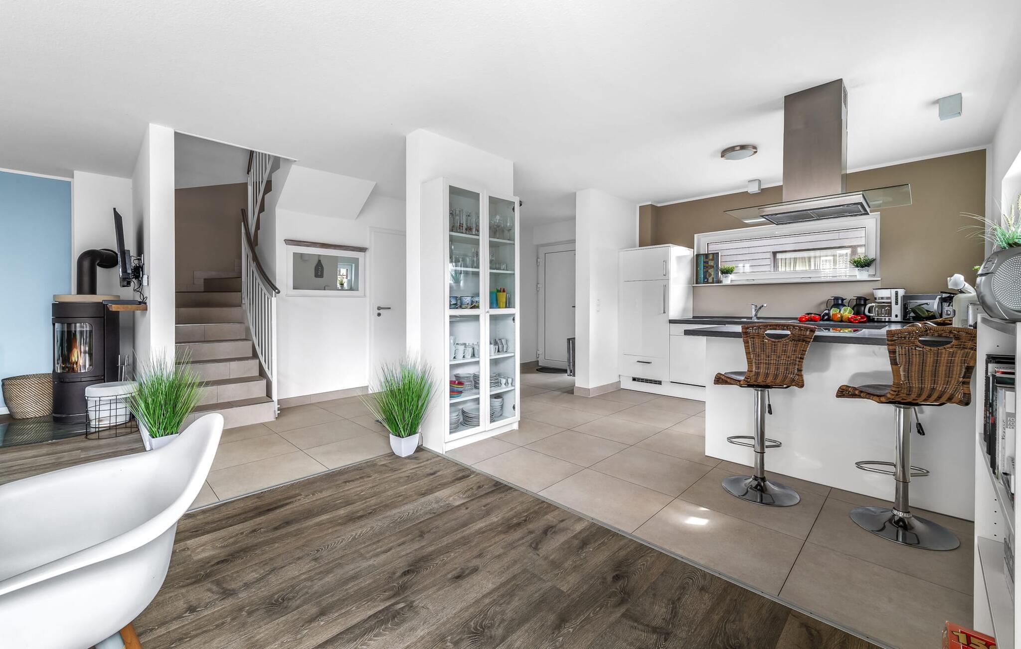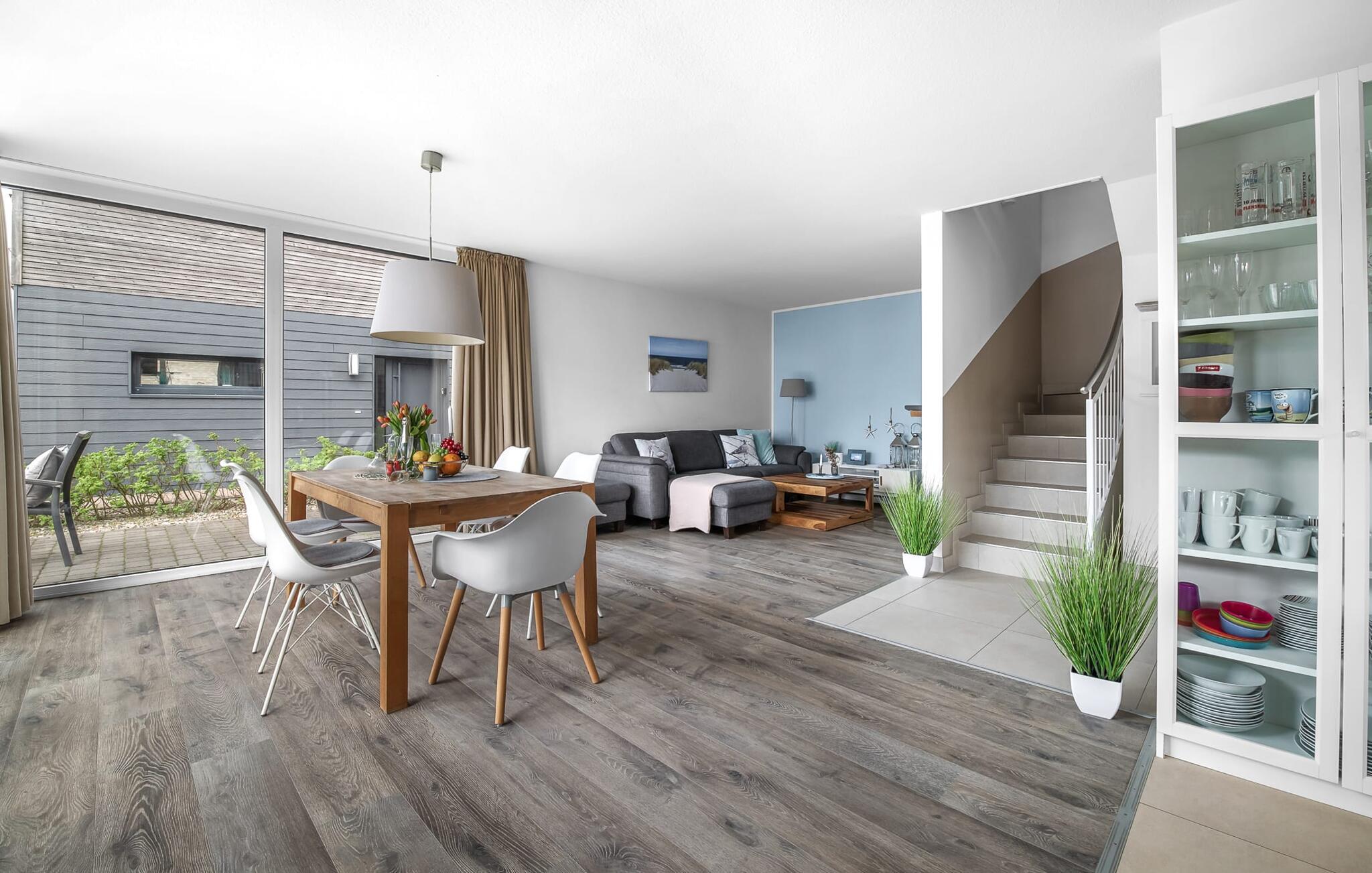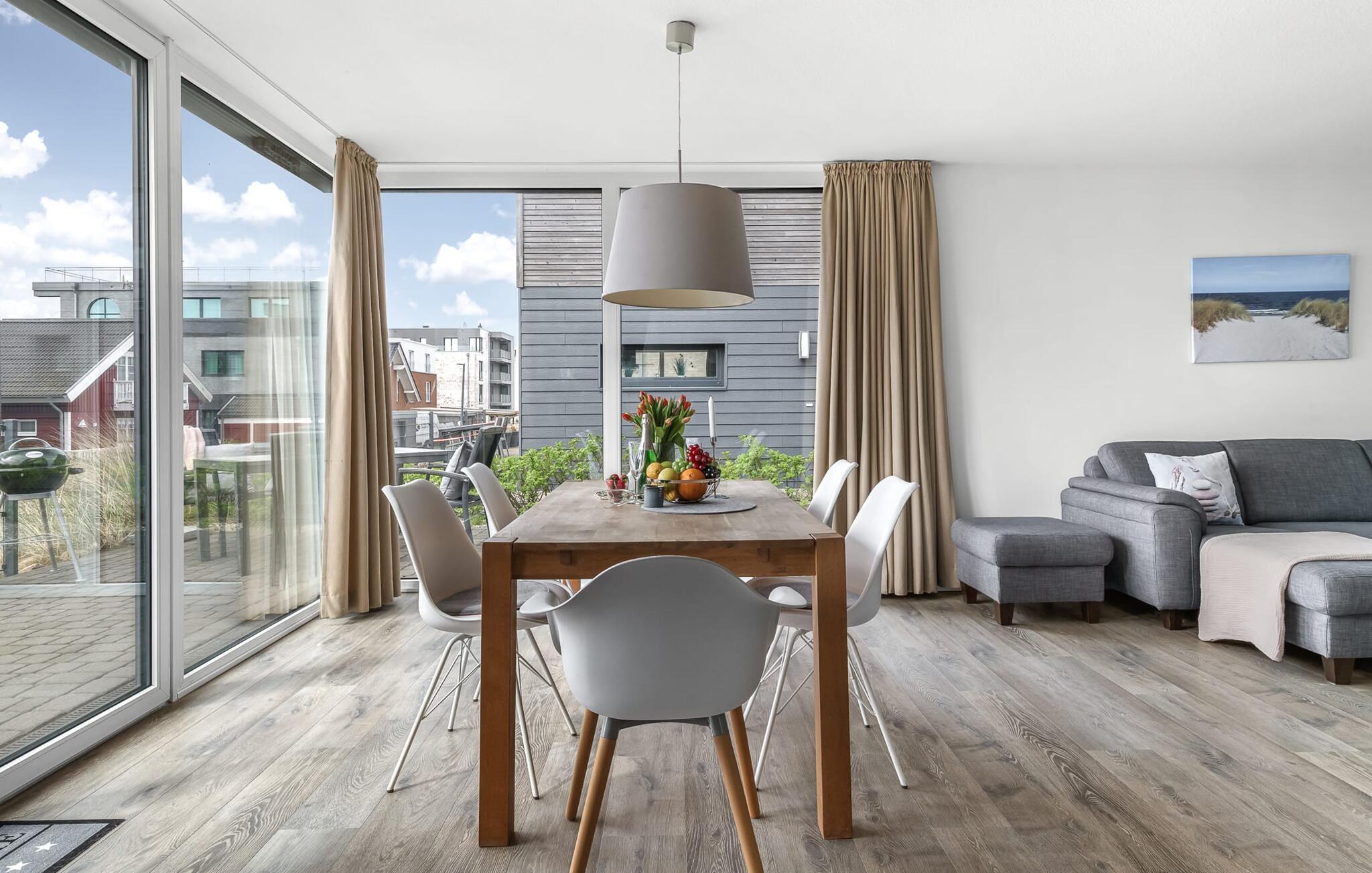 Velkommen til det eksklusive feriehus Wohlfühlort, en oase af afslapning PÅ Østersøen. Wohlfühlort ligger på et smalt næs med Østersøen på den ene side og sejl- og sportsbådshavnen i Østersøresortet Olpenitz på den anden side. Den indbydende halvdel af huset byder på alt, hvad en feriegæst kan ønske sig og skaber en atmosfære af luksus og komfort. I stueetagen finder I en rummelig stue/spisestue med en komfortabel sofa (inklusive sovefunktion), en hyggelig pejs og et smart-tv. Spisepladsen støder op til det moderne og åbne køkken, som er udstyret med alle bekvemmeligheder. Herfra når I den første solrige terrasse, som byder på en sideudsigt over den funklende Østersø og den maleriske havn. Det særlige højdepunkt ved dette feriehus er, at ikke kun én terrasse, men tre er til rådighed til privat brug. Nyd for eksempel den friske havluft og en betagende 360° udsigt over Østersøen og Pilotøen på tagterrassen. Solen følger jer fra morgen til aften. Ren afslapning venter jer på første sal, hvor to hyggelige soveværelser og et moderne komplet badeværelse med badekar inklusiv spabad-funktion og bruser inviterer jer til at blive hængende. Altanen med havudsigt bliver hurtigt jeres yndlingssted for afslappende timer. Et andet højdepunkt er saunaen, som også er placeret på badeværelset. Her kan I slappe af og lade batterierne op efter en begivenhedsrig dag i den friske havluft. For dem, der ikke vil eller kan undvære at arbejde selv på ferie, er der et separat rum med egen skærm til kontorarbejde - den ideelle arbejdsstation. Brug dette rum til at udvikle inspirerende ideer. Praktisk og komfortabel: en vaskemaskine-tørretumbler er tilgængelig, og der er også en dedikeret parkeringsplads til bilen. Foran huset finder I et privat cykelskur til omfattende ture gennem Schlei-regionen. Så intet står i vejen for en stressfri ferie i jeres personlige Østersøparadis. Oplev uforglemmelige ferieøjeblikke i feriestedet Olpenitz ved Østersøen. Nyd bekvemmelighederne i dette eksklusive feriehus og lad jer fortrylle af Østersøkystens magi! Hunde er meget velkomne i Wohlfühlort. Vores favoritsted: Beundre den blå horisont fra tagterrassen med et glas vin i hånden. Bemærk venligst: OstseeResort Olpenitz er meget populært, og der bygges fortsat i parken. Ikke desto mindre kan I se frem til en 5-stjernet standard og et førsteklasses ophold. Byggeaktiviteterne kommer ikke til at forstyrre jer på ferien, og derfor gives der ikke yderligere afslag i prisen.