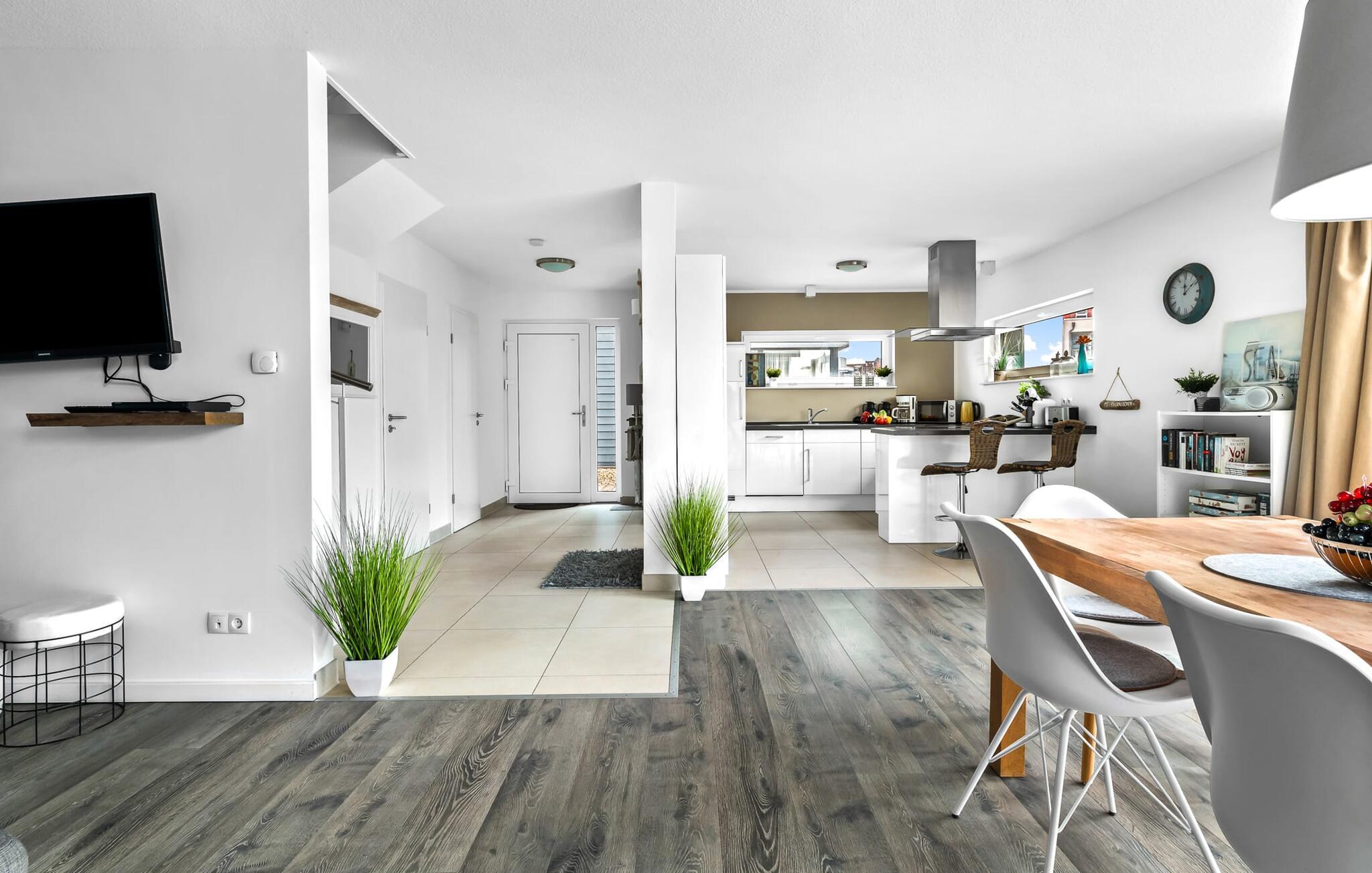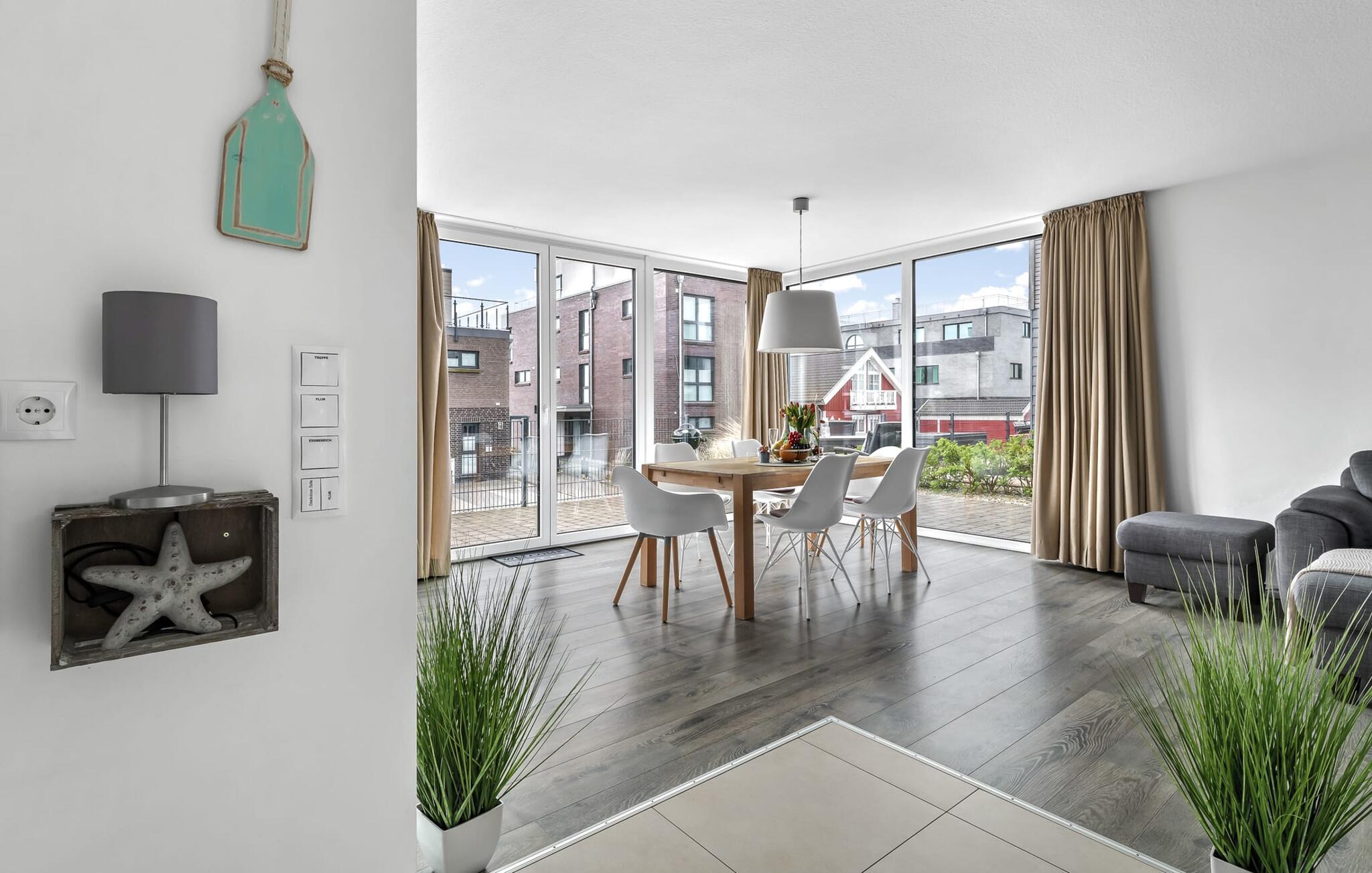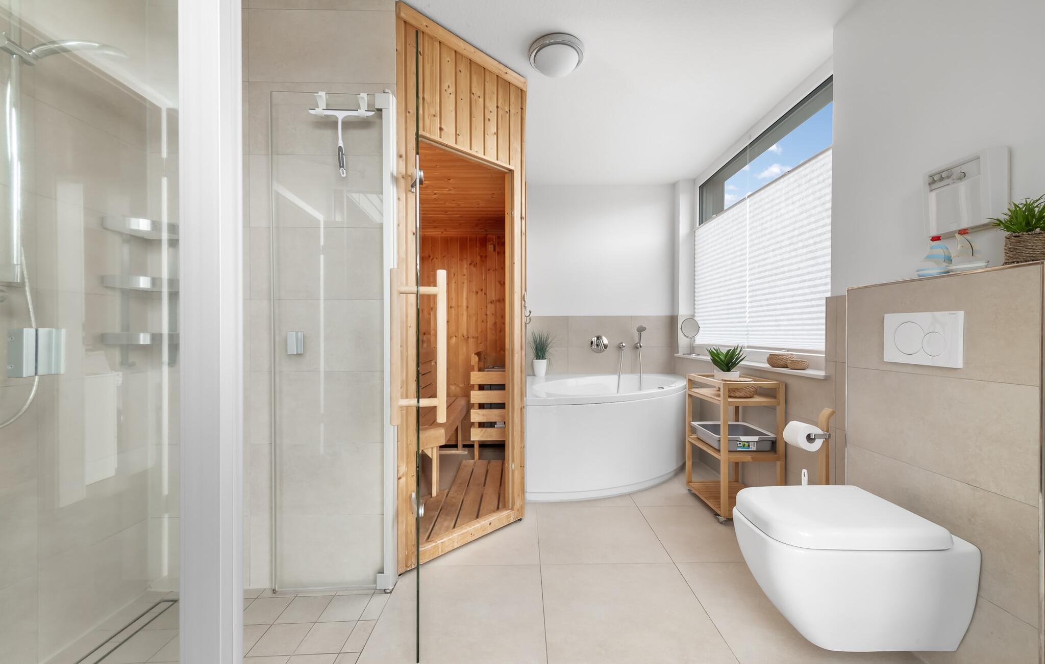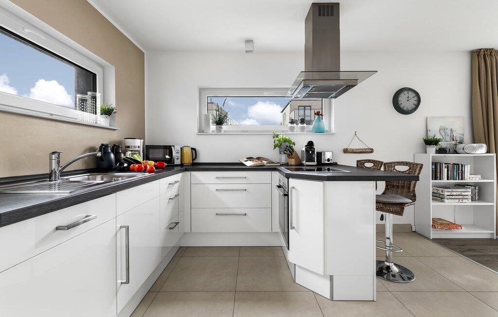 Velkommen til det eksklusive feriehus Wohlfühlort, en oase af afslapning PÅ Østersøen. Wohlfühlort ligger på et smalt næs med Østersøen på den ene side og sejl- og sportsbådshavnen i Østersøresortet Olpenitz på den anden side. Den indbydende halvdel af huset byder på alt, hvad en feriegæst kan ønske sig og skaber en atmosfære af luksus og komfort. I stueetagen finder I en rummelig stue/spisestue med en komfortabel sofa (inklusive sovefunktion), en hyggelig pejs og et smart-tv. Spisepladsen støder op til det moderne og åbne køkken, som er udstyret med alle bekvemmeligheder. Herfra når I den første solrige terrasse, som byder på en sideudsigt over den funklende Østersø og den maleriske havn. Det særlige højdepunkt ved dette feriehus er, at ikke kun én terrasse, men tre er til rådighed til privat brug. Nyd for eksempel den friske havluft og en betagende 360° udsigt over Østersøen og Pilotøen på tagterrassen. Solen følger jer fra morgen til aften. Ren afslapning venter jer på første sal, hvor to hyggelige soveværelser og et moderne komplet badeværelse med badekar inklusiv spabad-funktion og bruser inviterer jer til at blive hængende. Altanen med havudsigt bliver hurtigt jeres yndlingssted for afslappende timer. Et andet højdepunkt er saunaen, som også er placeret på badeværelset. Her kan I slappe af og lade batterierne op efter en begivenhedsrig dag i den friske havluft. For dem, der ikke vil eller kan undvære at arbejde selv på ferie, er der et separat rum med egen skærm til kontorarbejde - den ideelle arbejdsstation. Brug dette rum til at udvikle inspirerende ideer. Praktisk og komfortabel: en vaskemaskine-tørretumbler er tilgængelig, og der er også en dedikeret parkeringsplads til bilen. Foran huset finder I et privat cykelskur til omfattende ture gennem Schlei-regionen. Så intet står i vejen for en stressfri ferie i jeres personlige Østersøparadis. Oplev uforglemmelige ferieøjeblikke i feriestedet Olpenitz ved Østersøen. Nyd bekvemmelighederne i dette eksklusive feriehus og lad jer fortrylle af Østersøkystens magi! Hunde er meget velkomne i Wohlfühlort. Vores favoritsted: Beundre den blå horisont fra tagterrassen med et glas vin i hånden. Bemærk venligst: OstseeResort Olpenitz er meget populært, og der bygges fortsat i parken. Ikke desto mindre kan I se frem til en 5-stjernet standard og et førsteklasses ophold. Byggeaktiviteterne kommer ikke til at forstyrre jer på ferien, og derfor gives der ikke yderligere afslag i prisen.