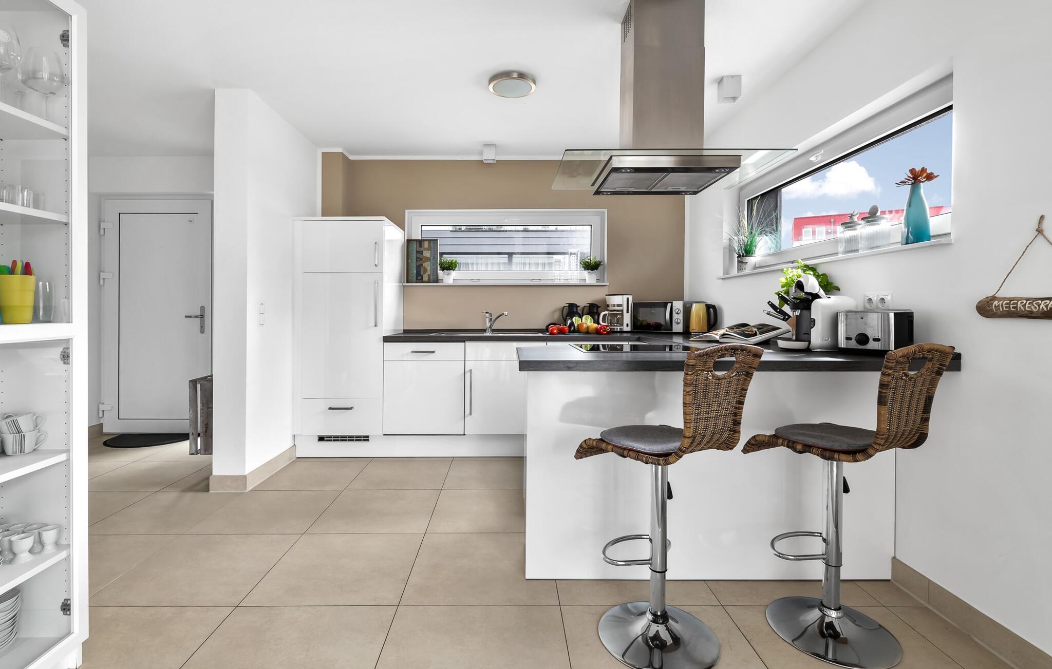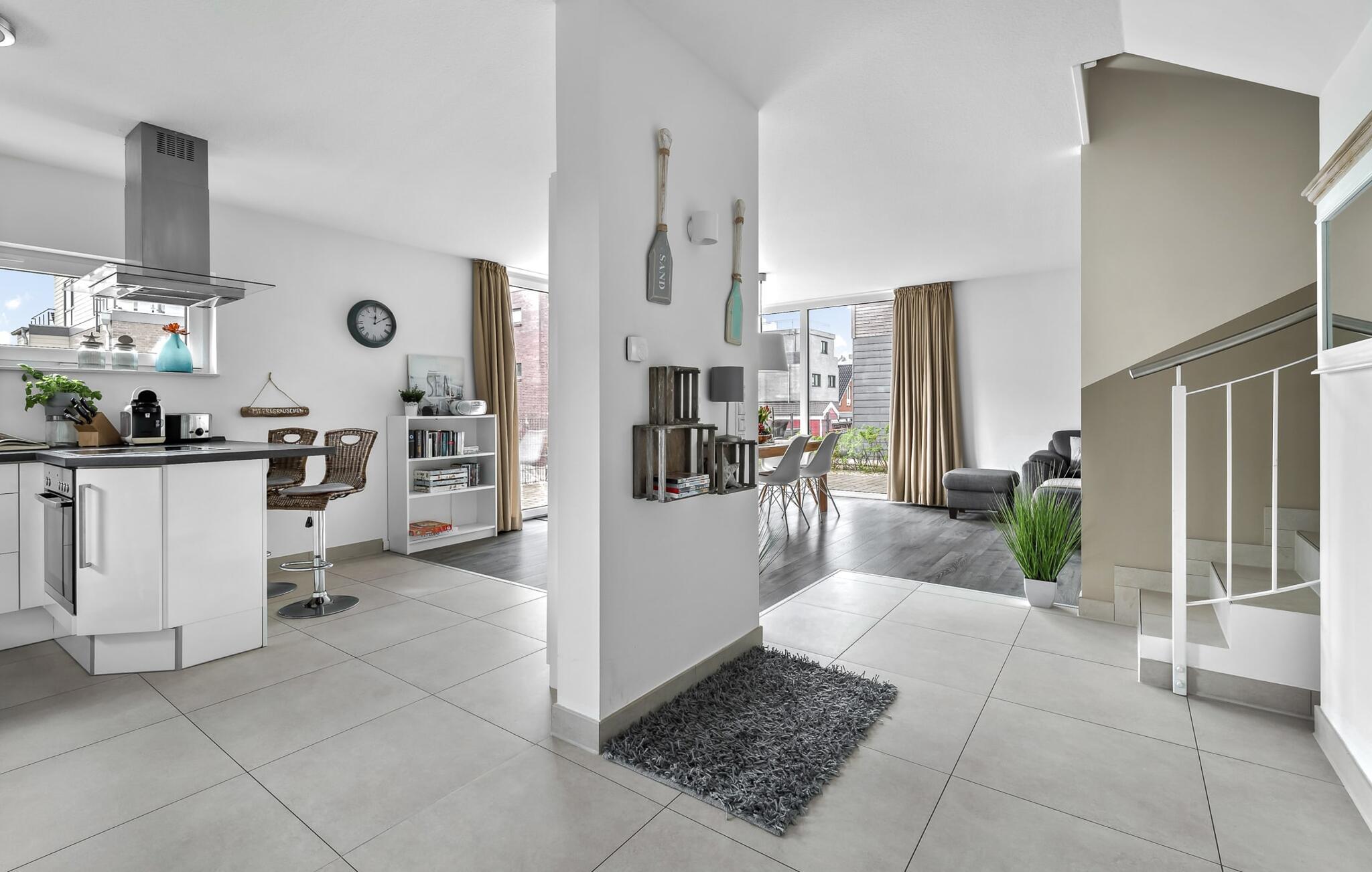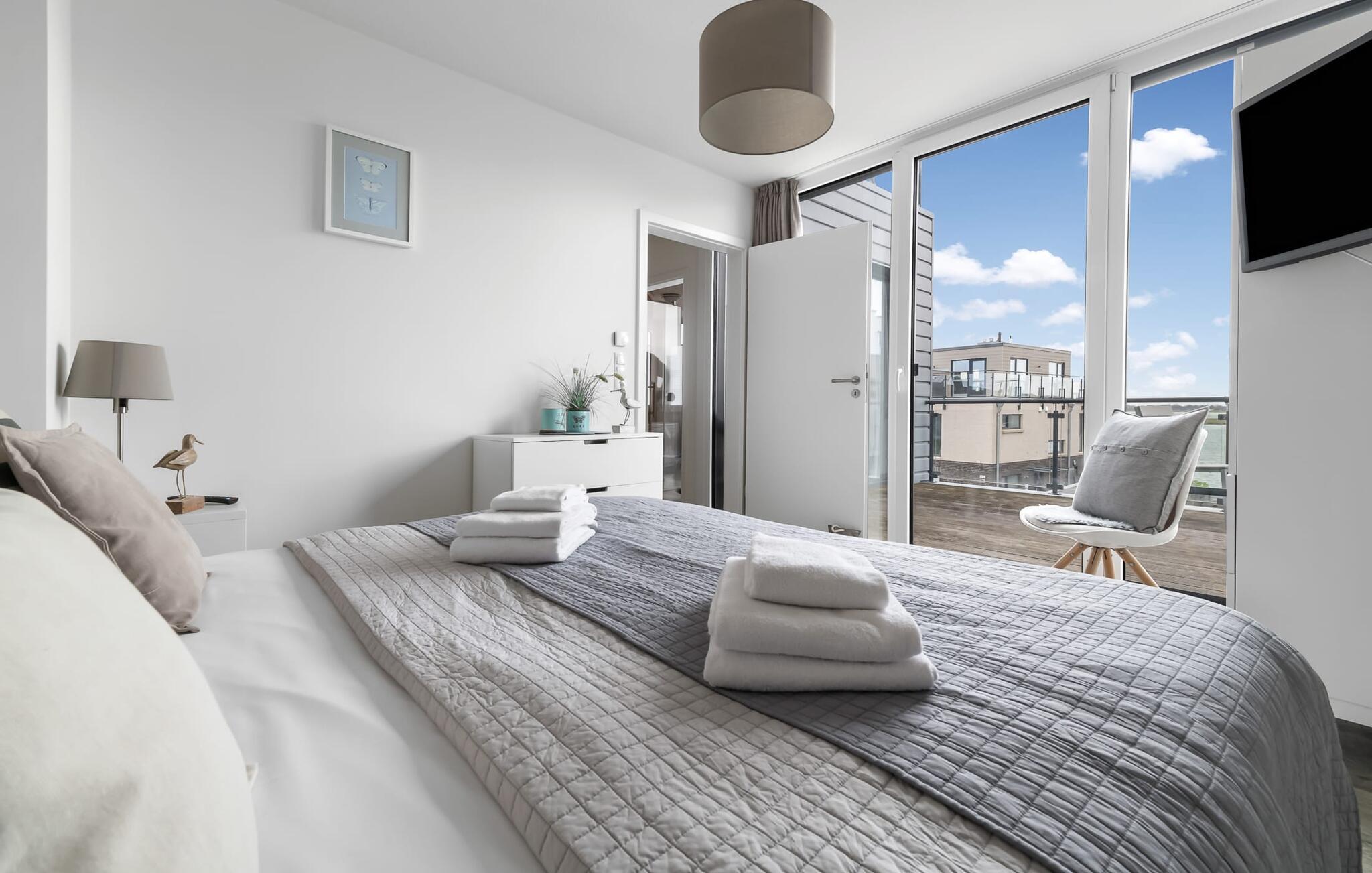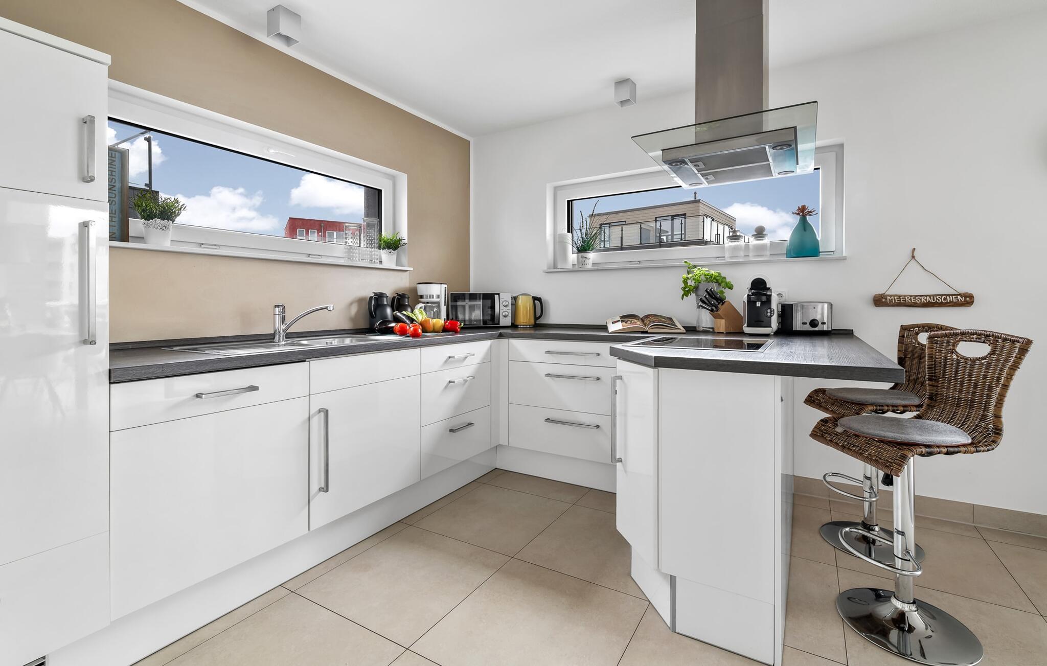 Velkommen til det eksklusive feriehus Wohlfühlort, en oase af afslapning PÅ Østersøen. Wohlfühlort ligger på et smalt næs med Østersøen på den ene side og sejl- og sportsbådshavnen i Østersøresortet Olpenitz på den anden side. Den indbydende halvdel af huset byder på alt, hvad en feriegæst kan ønske sig og skaber en atmosfære af luksus og komfort. I stueetagen finder I en rummelig stue/spisestue med en komfortabel sofa (inklusive sovefunktion), en hyggelig pejs og et smart-tv. Spisepladsen støder op til det moderne og åbne køkken, som er udstyret med alle bekvemmeligheder. Herfra når I den første solrige terrasse, som byder på en sideudsigt over den funklende Østersø og den maleriske havn. Det særlige højdepunkt ved dette feriehus er, at ikke kun én terrasse, men tre er til rådighed til privat brug. Nyd for eksempel den friske havluft og en betagende 360° udsigt over Østersøen og Pilotøen på tagterrassen. Solen følger jer fra morgen til aften. Ren afslapning venter jer på første sal, hvor to hyggelige soveværelser og et moderne komplet badeværelse med badekar inklusiv spabad-funktion og bruser inviterer jer til at blive hængende. Altanen med havudsigt bliver hurtigt jeres yndlingssted for afslappende timer. Et andet højdepunkt er saunaen, som også er placeret på badeværelset. Her kan I slappe af og lade batterierne op efter en begivenhedsrig dag i den friske havluft. For dem, der ikke vil eller kan undvære at arbejde selv på ferie, er der et separat rum med egen skærm til kontorarbejde - den ideelle arbejdsstation. Brug dette rum til at udvikle inspirerende ideer. Praktisk og komfortabel: en vaskemaskine-tørretumbler er tilgængelig, og der er også en dedikeret parkeringsplads til bilen. Foran huset finder I et privat cykelskur til omfattende ture gennem Schlei-regionen. Så intet står i vejen for en stressfri ferie i jeres personlige Østersøparadis. Oplev uforglemmelige ferieøjeblikke i feriestedet Olpenitz ved Østersøen. Nyd bekvemmelighederne i dette eksklusive feriehus og lad jer fortrylle af Østersøkystens magi! Hunde er meget velkomne i Wohlfühlort. Vores favoritsted: Beundre den blå horisont fra tagterrassen med et glas vin i hånden. Bemærk venligst: OstseeResort Olpenitz er meget populært, og der bygges fortsat i parken. Ikke desto mindre kan I se frem til en 5-stjernet standard og et førsteklasses ophold. Byggeaktiviteterne kommer ikke til at forstyrre jer på ferien, og derfor gives der ikke yderligere afslag i prisen.