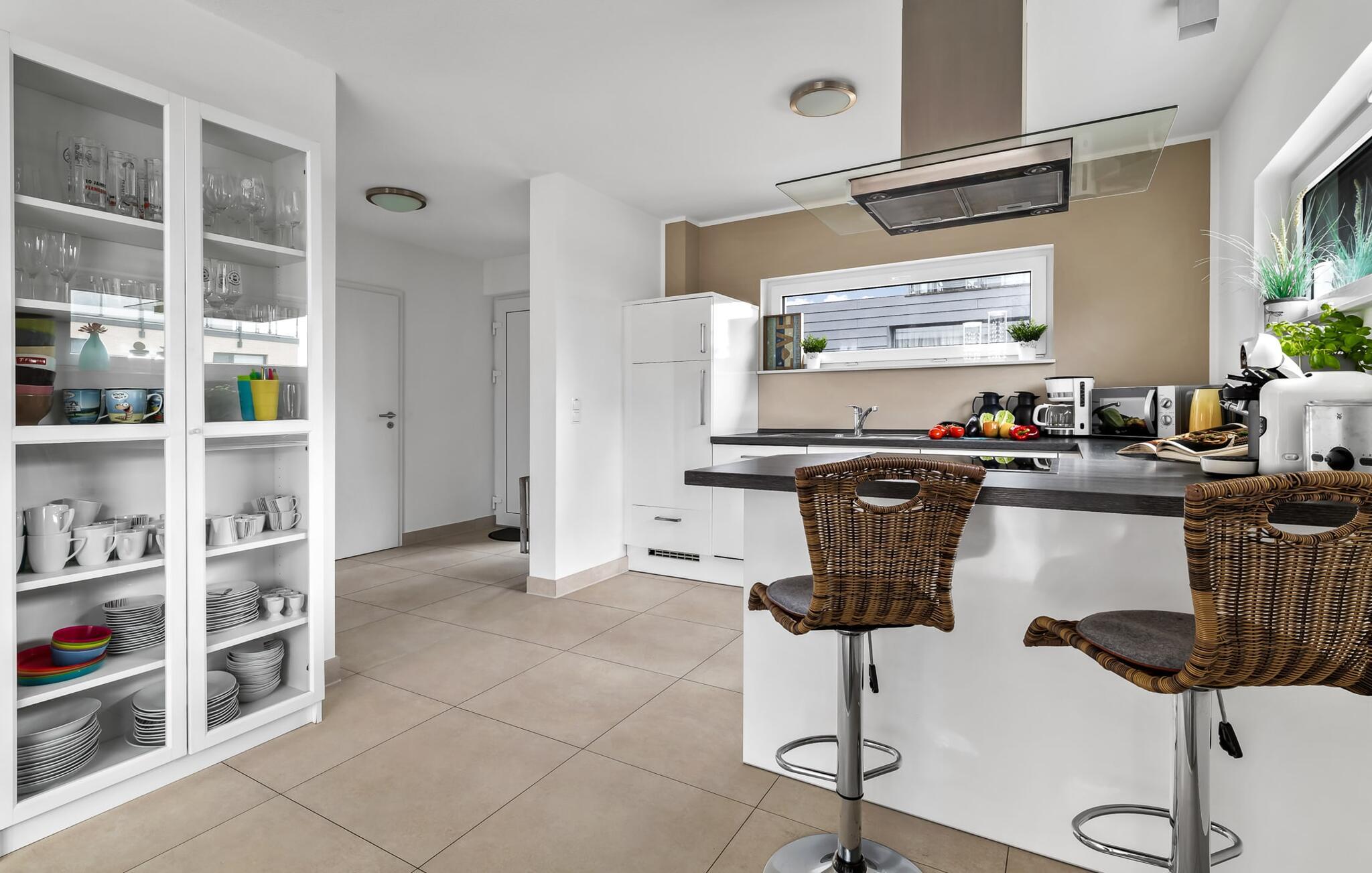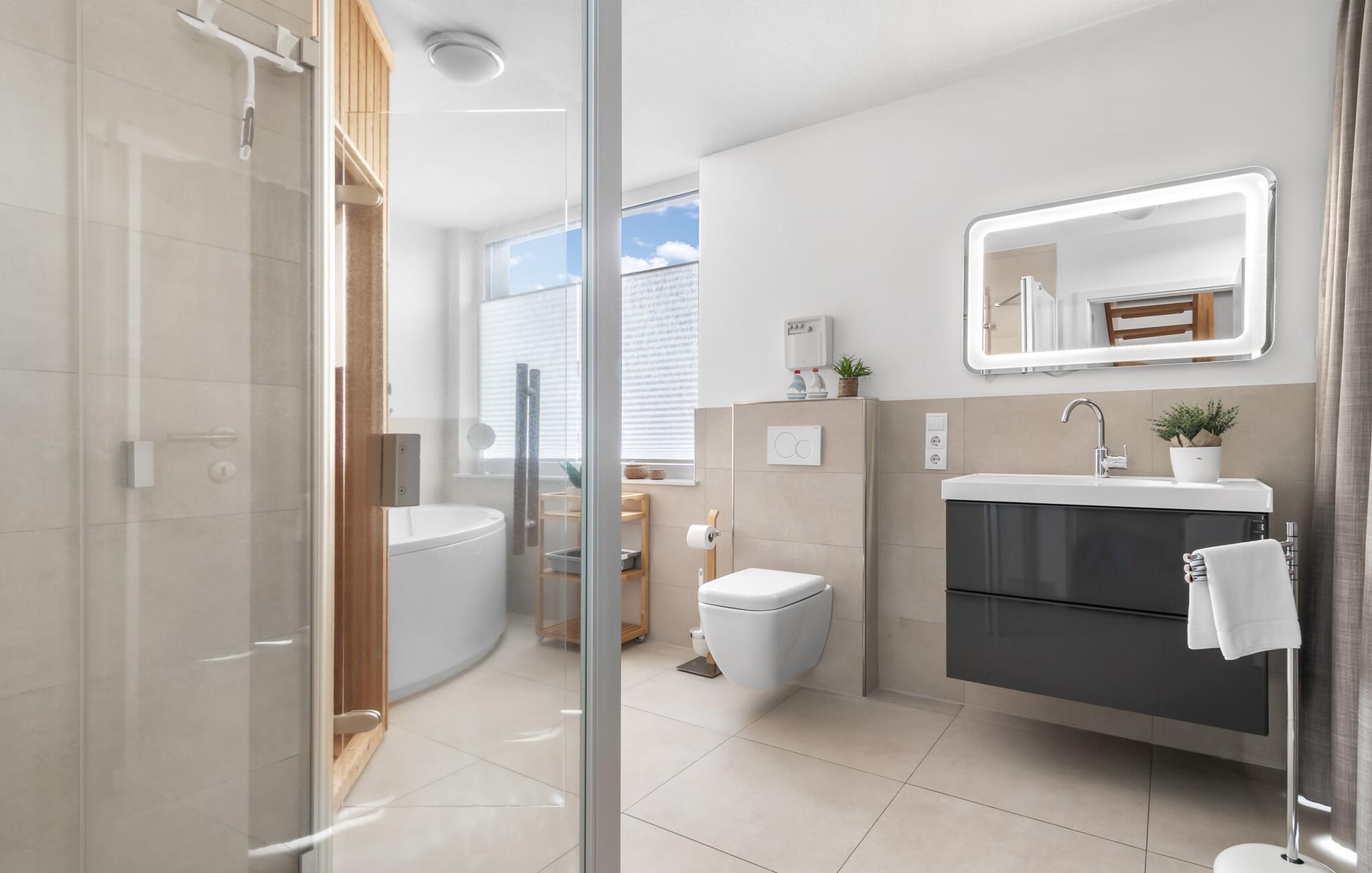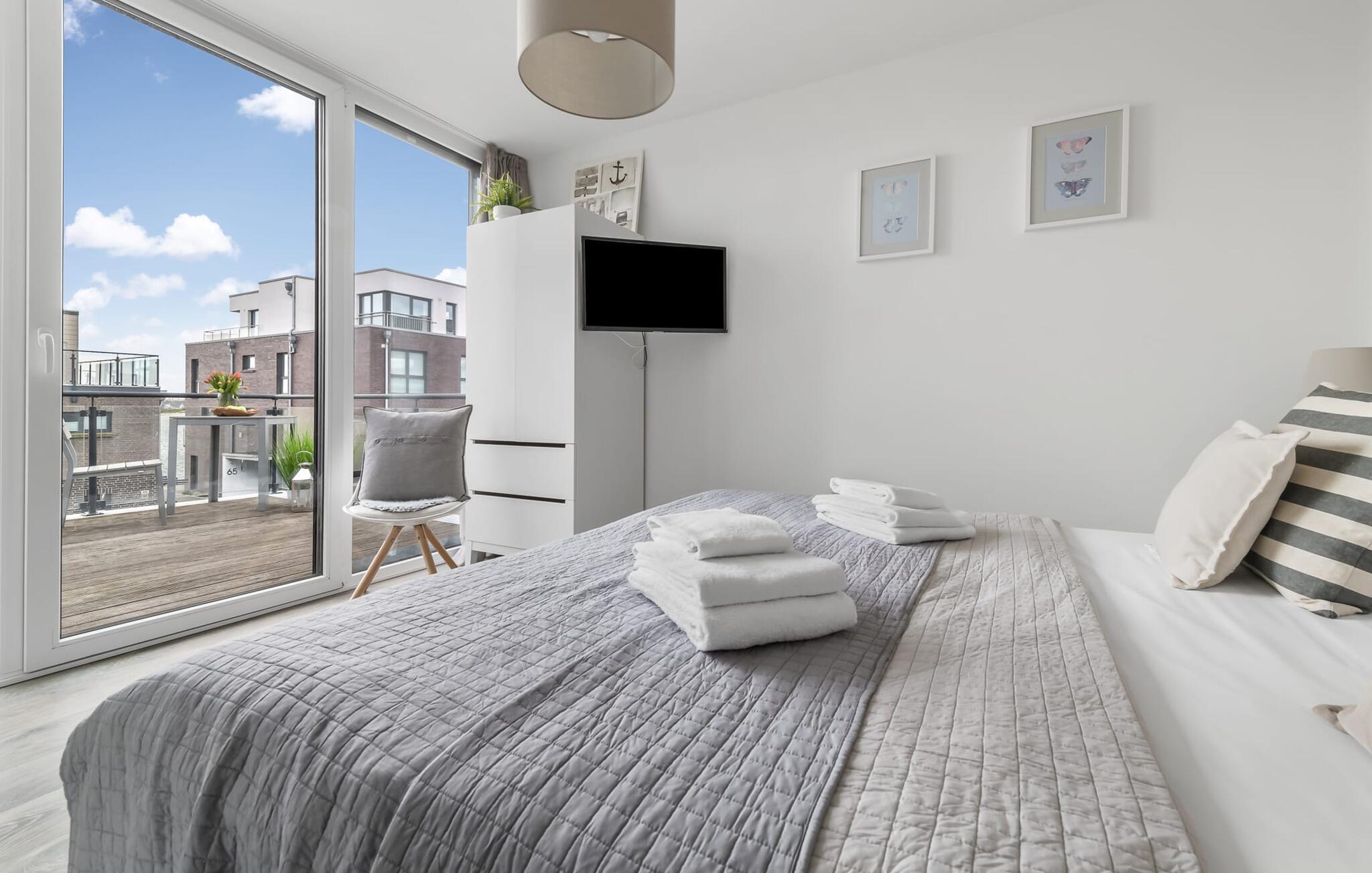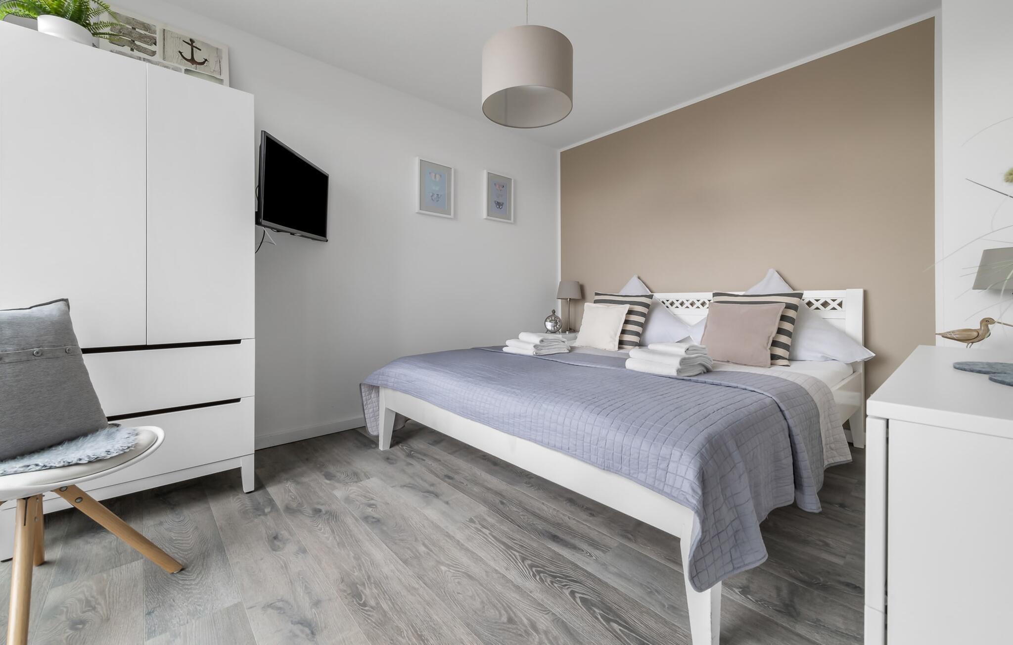 Velkommen til det eksklusive feriehus Wohlfühlort, en oase af afslapning PÅ Østersøen. Wohlfühlort ligger på et smalt næs med Østersøen på den ene side og sejl- og sportsbådshavnen i Østersøresortet Olpenitz på den anden side. Den indbydende halvdel af huset byder på alt, hvad en feriegæst kan ønske sig og skaber en atmosfære af luksus og komfort. I stueetagen finder I en rummelig stue/spisestue med en komfortabel sofa (inklusive sovefunktion), en hyggelig pejs og et smart-tv. Spisepladsen støder op til det moderne og åbne køkken, som er udstyret med alle bekvemmeligheder. Herfra når I den første solrige terrasse, som byder på en sideudsigt over den funklende Østersø og den maleriske havn. Det særlige højdepunkt ved dette feriehus er, at ikke kun én terrasse, men tre er til rådighed til privat brug. Nyd for eksempel den friske havluft og en betagende 360° udsigt over Østersøen og Pilotøen på tagterrassen. Solen følger jer fra morgen til aften. Ren afslapning venter jer på første sal, hvor to hyggelige soveværelser og et moderne komplet badeværelse med badekar inklusiv spabad-funktion og bruser inviterer jer til at blive hængende. Altanen med havudsigt bliver hurtigt jeres yndlingssted for afslappende timer. Et andet højdepunkt er saunaen, som også er placeret på badeværelset. Her kan I slappe af og lade batterierne op efter en begivenhedsrig dag i den friske havluft. For dem, der ikke vil eller kan undvære at arbejde selv på ferie, er der et separat rum med egen skærm til kontorarbejde - den ideelle arbejdsstation. Brug dette rum til at udvikle inspirerende ideer. Praktisk og komfortabel: en vaskemaskine-tørretumbler er tilgængelig, og der er også en dedikeret parkeringsplads til bilen. Foran huset finder I et privat cykelskur til omfattende ture gennem Schlei-regionen. Så intet står i vejen for en stressfri ferie i jeres personlige Østersøparadis. Oplev uforglemmelige ferieøjeblikke i feriestedet Olpenitz ved Østersøen. Nyd bekvemmelighederne i dette eksklusive feriehus og lad jer fortrylle af Østersøkystens magi! Hunde er meget velkomne i Wohlfühlort. Vores favoritsted: Beundre den blå horisont fra tagterrassen med et glas vin i hånden. Bemærk venligst: OstseeResort Olpenitz er meget populært, og der bygges fortsat i parken. Ikke desto mindre kan I se frem til en 5-stjernet standard og et førsteklasses ophold. Byggeaktiviteterne kommer ikke til at forstyrre jer på ferien, og derfor gives der ikke yderligere afslag i prisen.