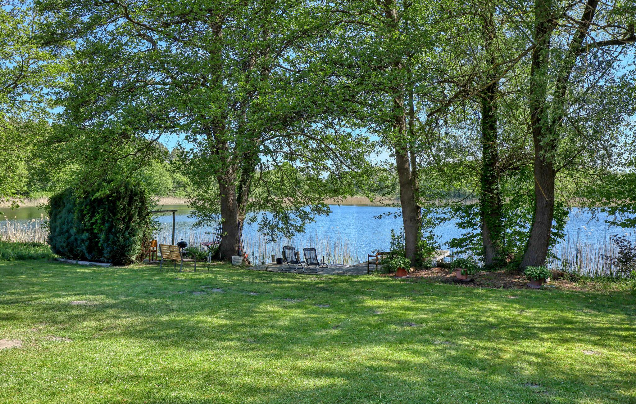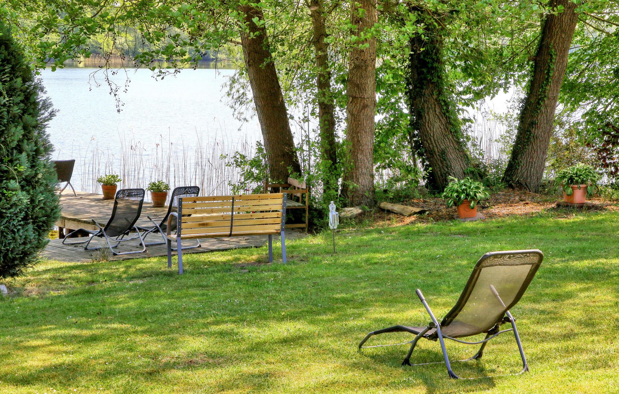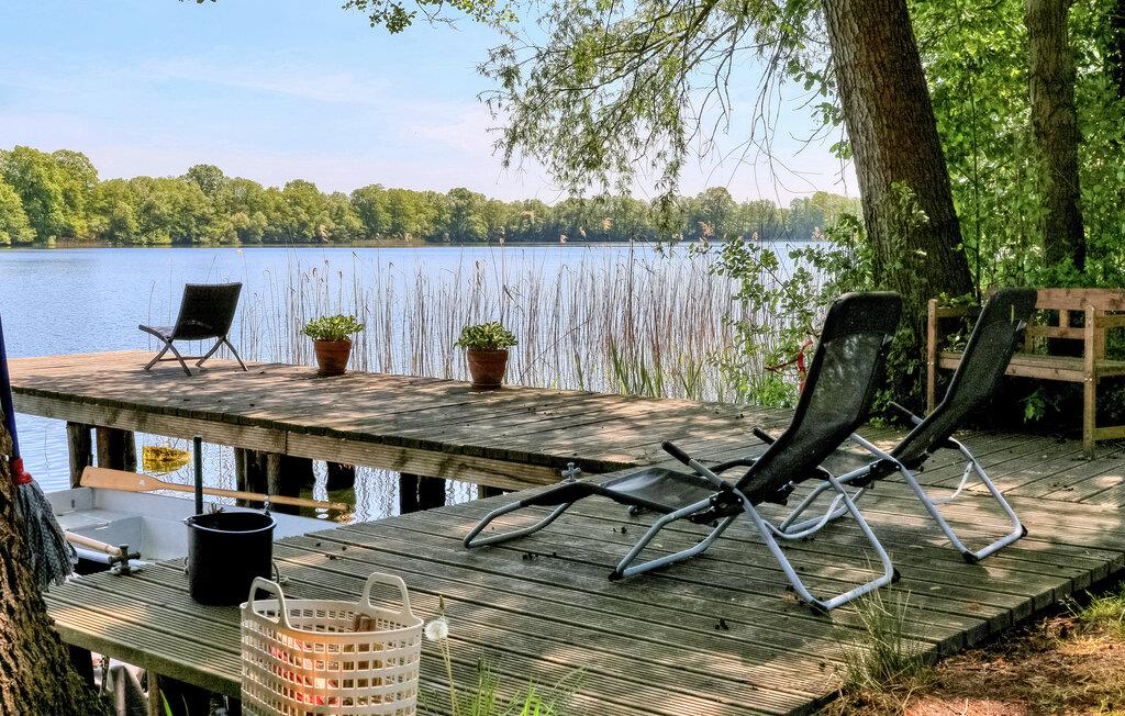 Denne ene af to ferielejligheder ligger i stueetagen i et sommerhus på en separat søejendom, som er delt i to dele af en lille villavej. Der er forskellige opholdsområder, grillplads, 2 robåde, en båd og fiskemole og en stor græsplæne direkte på ejendommen Lutowsee Ferielejligheden er komfortabelt indrettet med: stue (polstrede møbler, LCD TV, stereoanlæg), soveværelse (3 senge), børneværelse (2 senge), køkken. (elkomfur, køle-fryseskab, opvaskemaskine, mikroovn, spisebord), bruser/toilet med vaskemaskine, gulvvarme En barneseng og en høj stol er også til rådighed Lejligheden har også en møbleret terrasse, et cykelrum og en parkeringsplads til op til 50 kæledyr cm er tilladt fra oktober til maj.