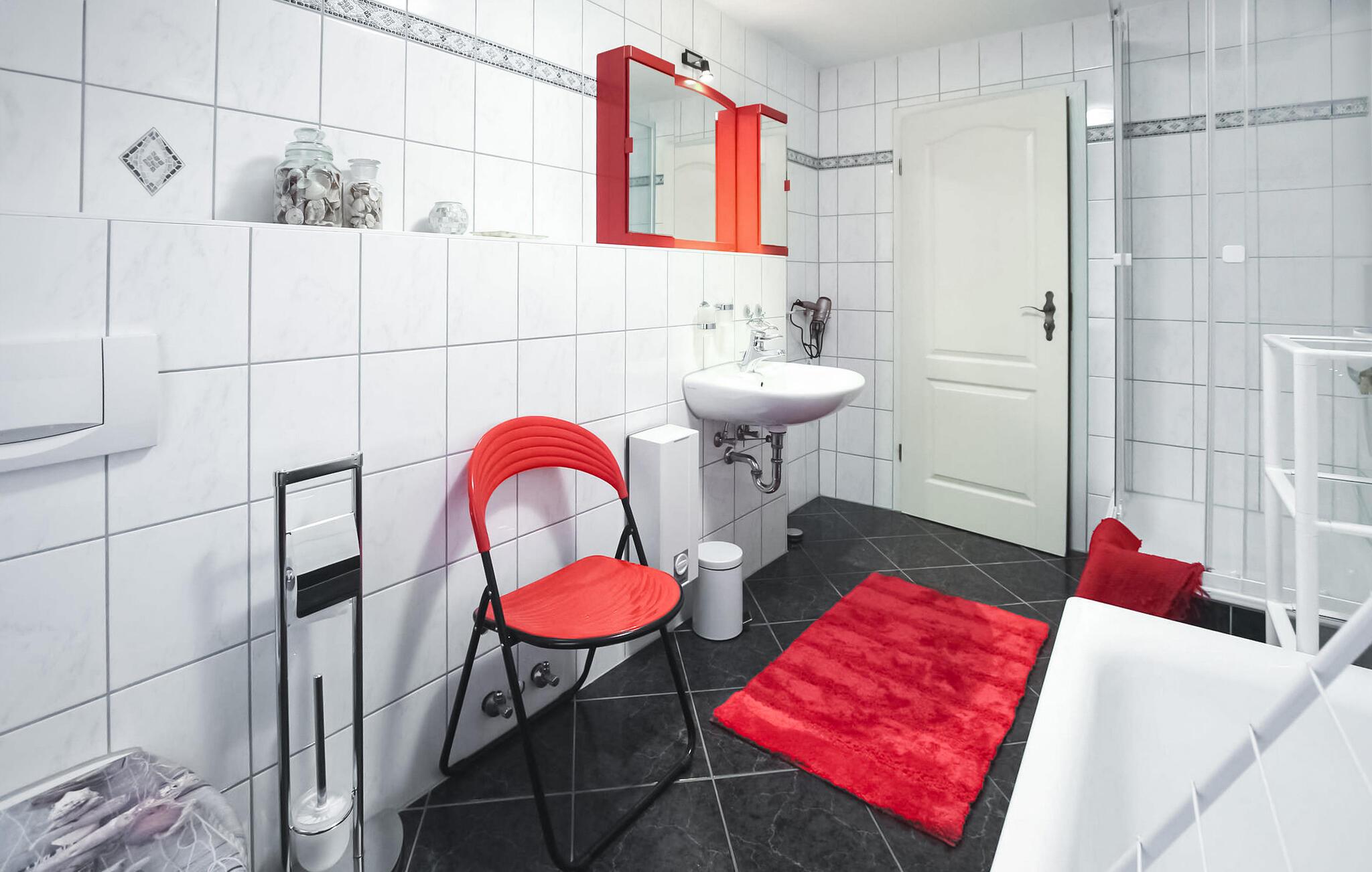 Badeværelse (nr. 1) - WC. Varmt og koldt vand. Bruser og badekar