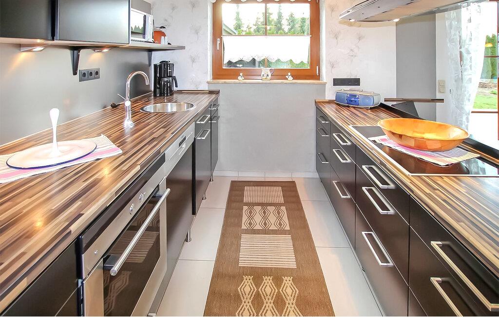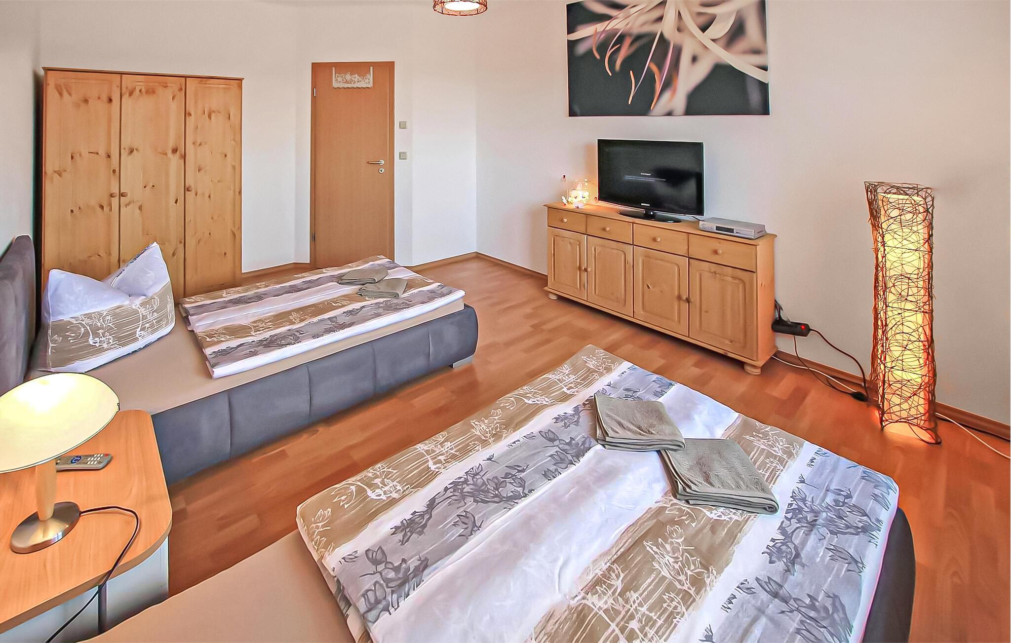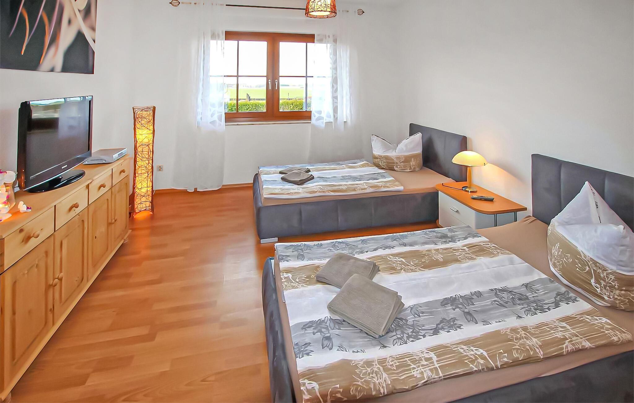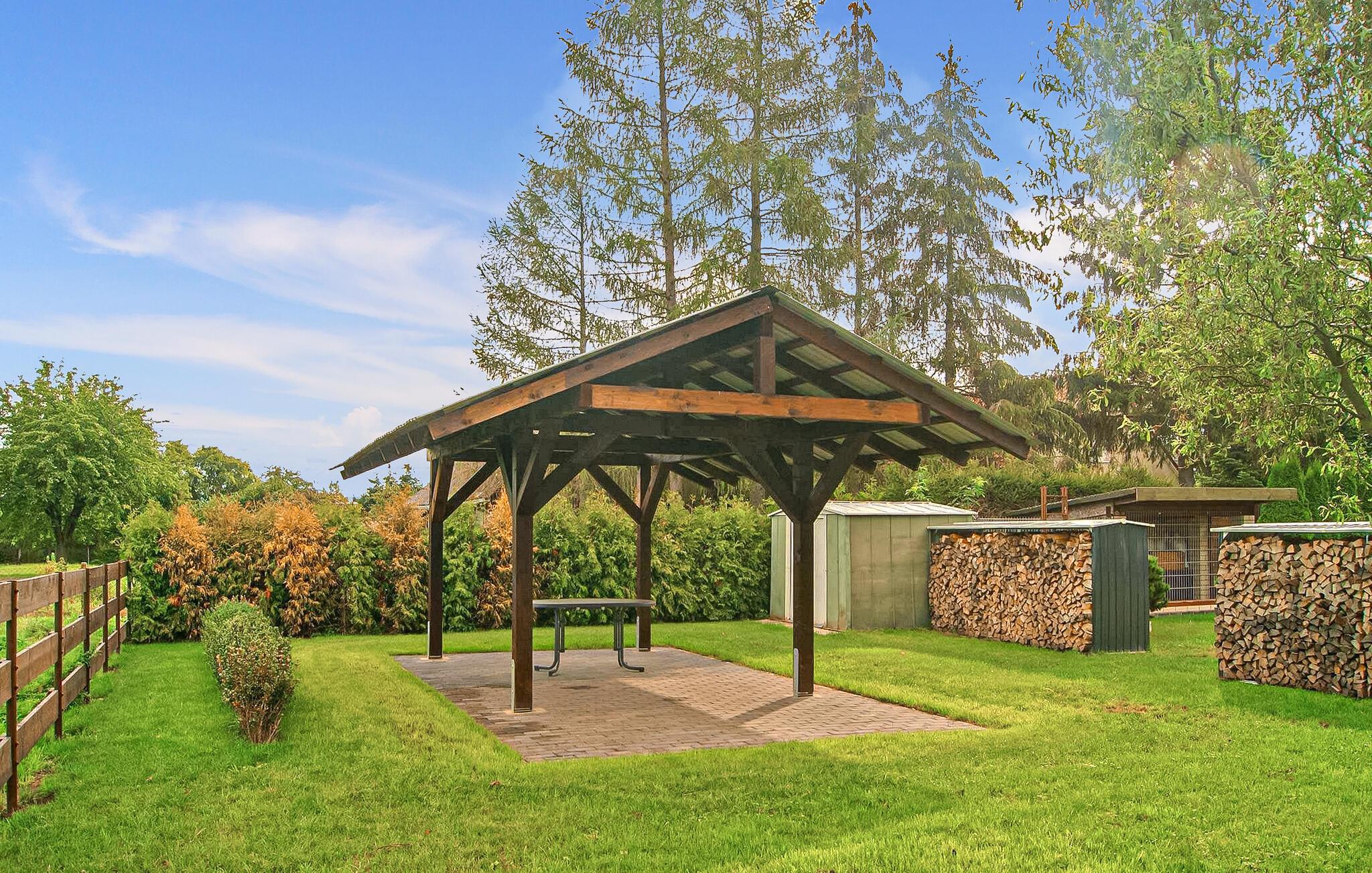 Roligt og landligt beliggende i udkanten af Helpt, den ene af to nyrenoverede ferielejligheder til 5 og 6 personer på den cirka 1.700 kvadratmeter store, helt indhegnede beboelsesejendom i stueetagen og øverste etager i et enfamiliehus. Et badeområde ved Mühlensee ligger cirka 1,5 km væk, butikker og restauranter i møllebyen Woldegk cirka 4 km væk. Den ikke-ryger lejlighed, som er smagfuldt og højkvalitets indrettet, centralvarme og udstyret med insektbeskyttelse, kan nås via en fælles gang. Alle gæster har adgang til et bryggers med vaskemaskine og tørretumbler (5 EUR/vaskecyklus), samt en carport per lejlighed (ekstra parkeringsmuligheder til rådighed), siddepladser, grill, en stor pavillon og to liggestole på den store ejendom. , cykelkælder og opbevaringsrum, en børneseng og gratis WiFi. Den samlede pris inkluderer slutrengøring, vand- og energiforbrug, brænde, sengelinned og håndklæder (INGEN badehåndklæder). Betales på stedet: brug af vaskemaskine/tørretumbler (5 EUR/vask). Én hund er tilladt i denne ejendom. Små hunde (ingen katte) op til 30 cm i størrelse er tilladt i lejligheden, større dyr indkvarteres i en hytte med løb på ejendommen. Den cirka 86 kvadratmeter store lejlighed med plads til op til 5 personer, udstyret med gulvvarme og udvendige persienner, strækker sig over hele underetagen og har en stor stue (pejs inklusiv brænde, sovesofa, spisebord, fladskærms-tv, radio, CD-afspiller, DVD Bluray-afspiller) med åbent, moderne køkken (spiseplads, el-komfur med ovn, opvaskemaskine, mikroovn, køleskab, fryser, diverse små køkkenmaskiner), to soveværelser (2 enkeltsenge; kan også sættes sammen, 1 x to enkeltsenge, begge med et ekstra tv), et badeværelse (bruser, badekar, toilet, hårtørrer), en rummelig gang og en stor, møbleret terrasse med en smuk udsigt over landskabet. Helpt er et distrikt i “Mill City” Woldegk og er bedst kendt for "Hjælperbjergene", som på omkring 179 m over havets overflade repræsenterer den højeste naturlige højde i Mecklenburg-Vorpommern. Den skovklædte højderyg er indlejret i et blidt bakket landskab - omgivet af skove og søer - som indbyder til store opdagelser i naturen til fods eller på cykel.Indkøbsmuligheder og restauranter findes i Woldegk, ca. fem fredede vindmøller. Tre af dem ligger på Mühlenberg og er åbne for besøgende som café, museum og teknisk monument.Distriktsbyen Mecklenburg Lake District Neubrandenburg, kun 20 km væk, er også et besøg værd. “Four Gates City” Udover mange indkøbsmuligheder byder den også på forskellige restauranter, caféer og pubber. Ud over den historiske bymur og Tollense-søen er en særlig attraktion koncertkirken, som er kendt uden for Mecklenburgs grænser, med sit nye orgel, hvor talrige koncerter og arrangementer finder sted.