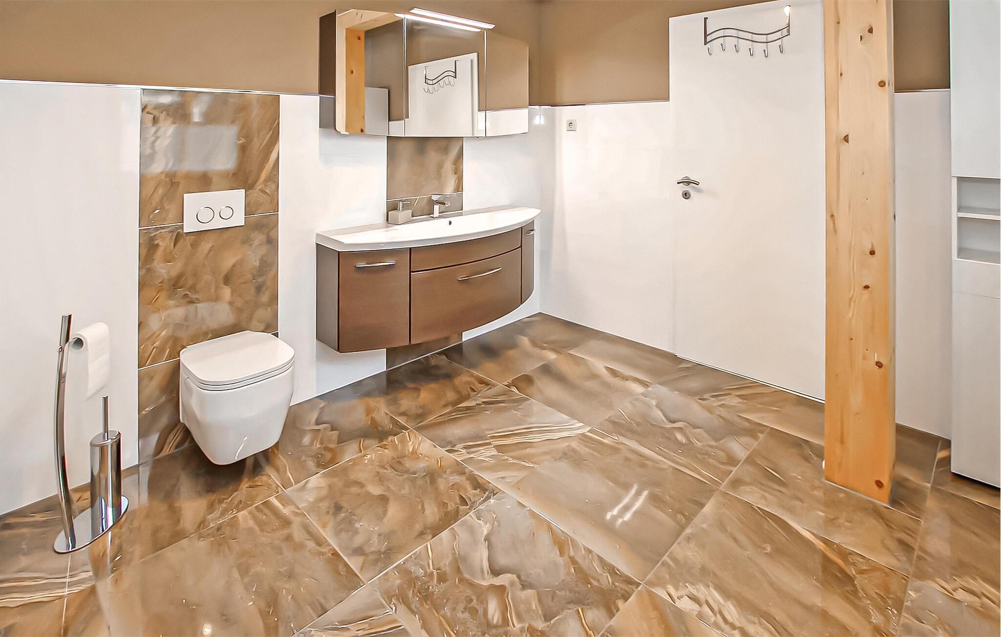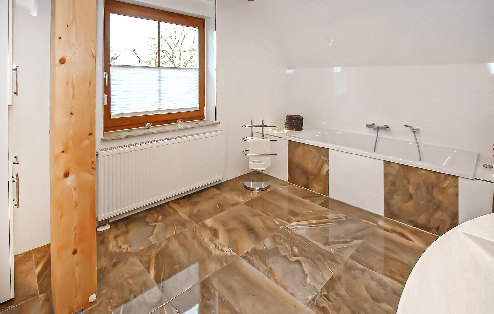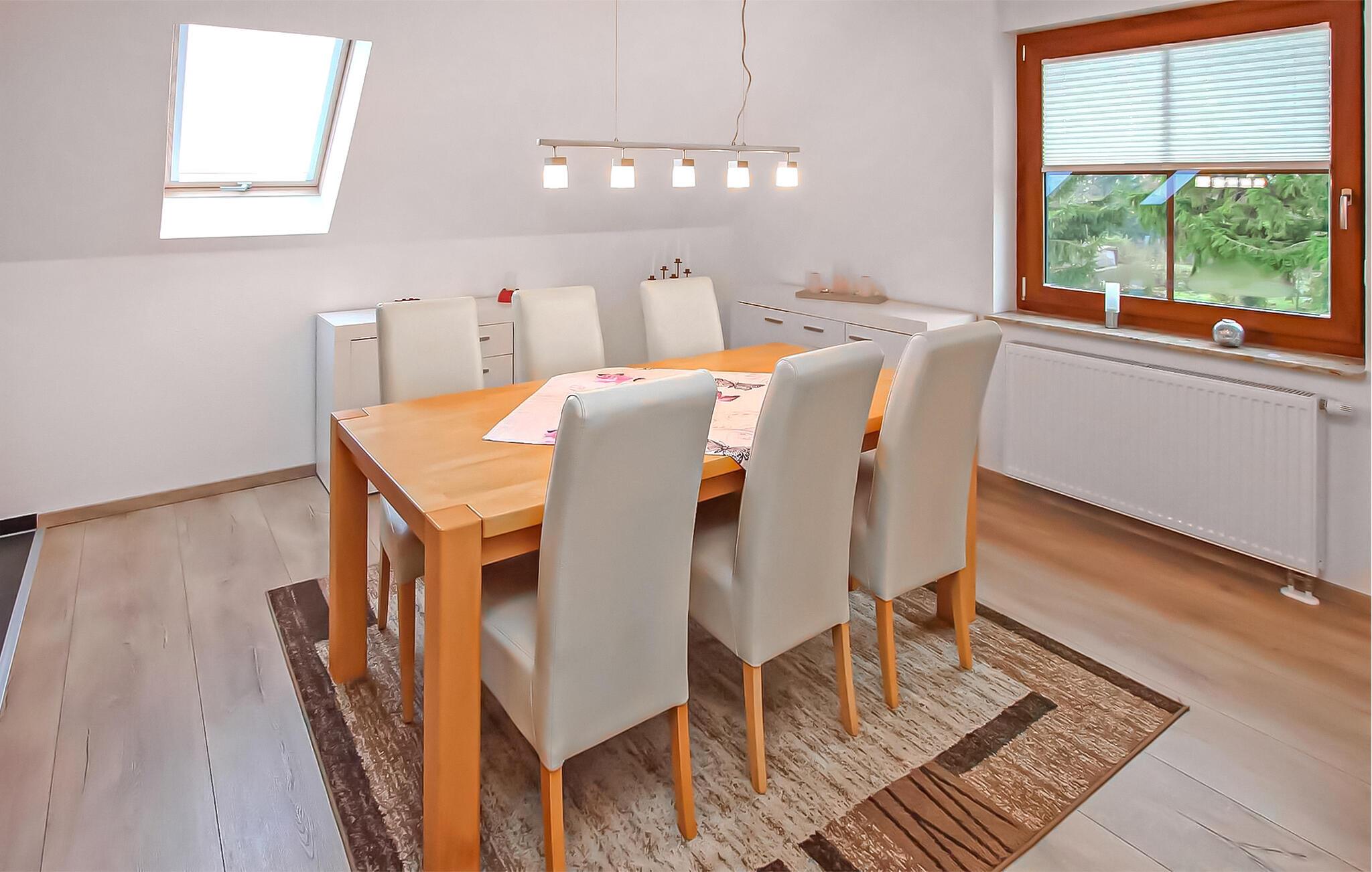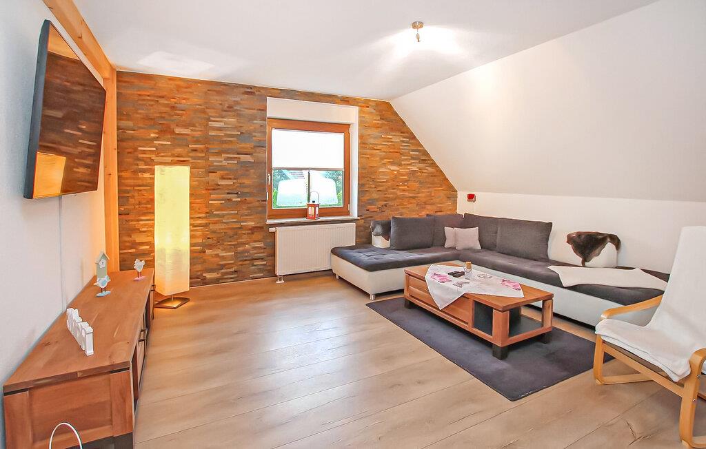 Roligt og landligt beliggende i udkanten af Helpt, den ene af to nyrenoverede ferielejligheder til 6 personer i det ca. 1.700 m² helt indhegnede enfamiliehus. Et badeområde ved Mühlensee er ca. 1,5 km væk, butikker og restauranter i møllebyen Woldegk ca. Den røgfri, cirka 95 m² store lejlighed strækker sig over to plan og kan nås via en fælles gang. Det er smagfuldt indrettet og har møbler af høj kvalitet, centralvarme og insektbeskyttelse. På første sal er der en stor stue (opholdsstue, lænestol, fladskærms TV, DVD og Blueray-afspiller, radio/CD, LAN-forbindelser) med åbent køkken (spisebord, pejs til bagning eller madlavning i wok, køkkengrej tilgængelig, el-komfur med ovn, opvaskemaskine, køleskab, mikroovn, forskellige små køkkenmaskiner), et soveværelse (2 enkeltsenge, fladskærms-tv) og det rummelige badeværelse (badekar, toilet, hårtørrer). Den åbne trappe fører til et åbent soveværelse (ekstra seng) og et andet soveværelse (dobbeltseng, fladskærms-tv). Denne lejlighed har en møbleret pavillon i haven. Alle gæster har adgang til et bryggers med vaskemaskine og tørretumbler (5 EUR/vaskecyklus), samt en carport per lejlighed (ekstra parkeringsmuligheder til rådighed), siddepladser, en grill, en stor pavillon og to liggestole på omfattende ejendom, en cykelkælder og opbevaringsrum, en børneseng og gratis WiFi. Den samlede pris inkluderer slutrengøring, vand- og energiforbrug, brænde, sengelinned og håndklæder (INGEN badehåndklæder). Betales på stedet: brug af vaskemaskine/tørretumbler (5 EUR/vask). Én hund er tilladt i denne ejendom. Små hunde (ingen katte) op til 30 cm i størrelse er tilladt i lejligheden, større dyr indkvarteres i en hytte med løb på ejendommen. Helpt er et distrikt i møllebyen Woldegk og er bedst kendt for Helpter-bjergene, som på omkring 179 m over havets overflade er den højeste naturlige højde i Mecklenburg-Vorpommern. Den skovklædte højderyg er indlejret i et blidt kuperet landskab - omgivet af skove og søer - som indbyder til omfattende opdagelser i naturen til fods eller på cykel. Butikker og restauranter findes i Woldegk, ca. 4 km væk, som primært er kendetegnet ved i alt fem bevarede vindmøller. Tre af dem ligger på Mühlenberg og er åbne for besøgende som café, museum og teknisk monument. Distriktsbyen Mecklenburg Lake District Neubrandenburg, kun 20 km væk, er også et besøg værd. Udover mange indkøbsmuligheder byder fireportsbyen også på forskellige restauranter, caféer og pubber. Ud over den historiske bymur og Tollensesee er en særlig attraktion koncertkirken, som er kendt uden for Mecklenburgs grænser, med sit nye orgel, hvor adskillige koncerter og arrangementer finder sted.
