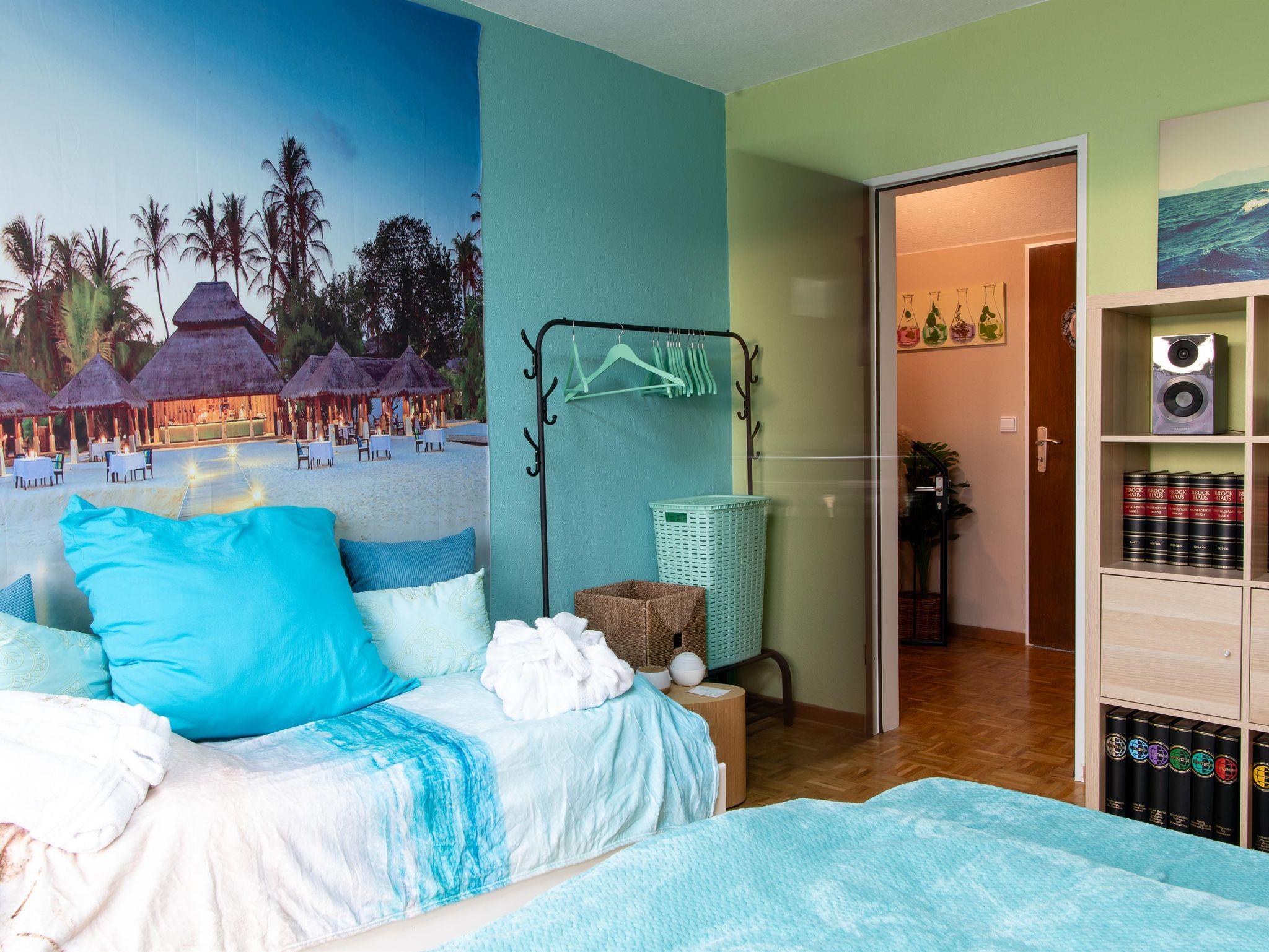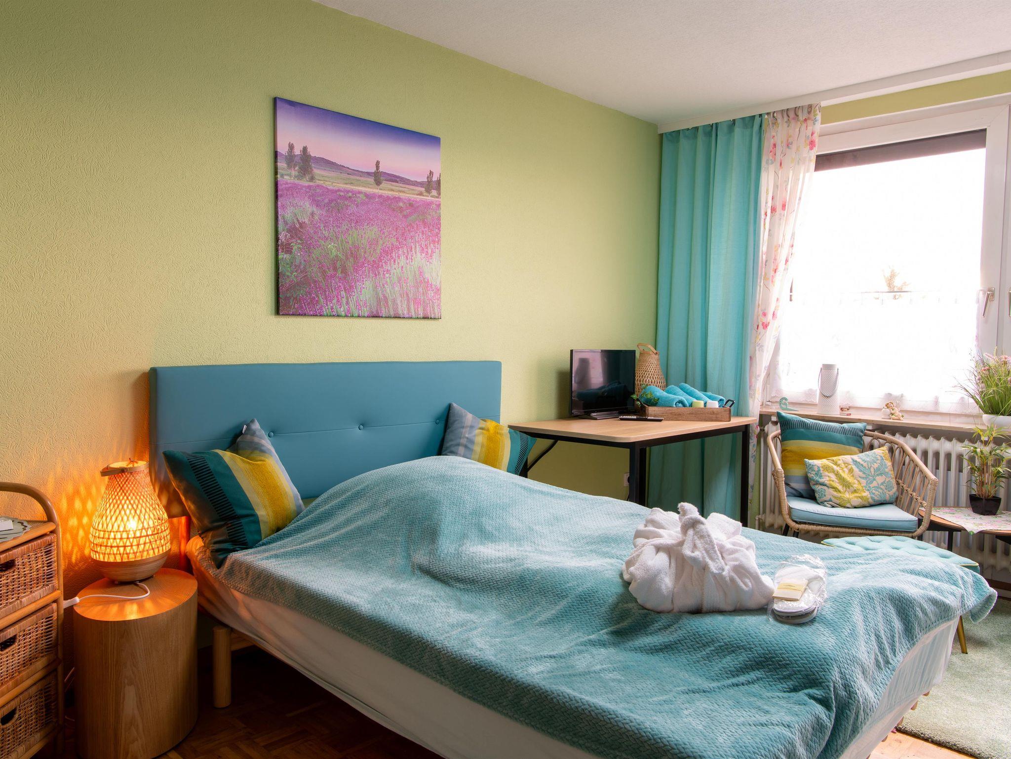 Willkommen in einem lichtdurchfluteten, liebevoll gestalteten Doppelzimmer (16?m²) im Boho-Style im ersten Obergeschoss – perfekt zum Entspannen und Auftanken.