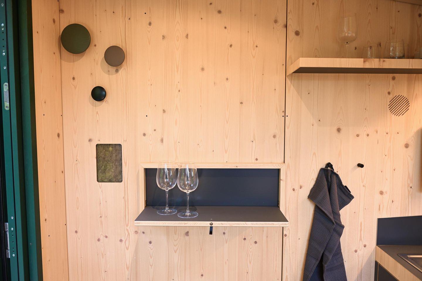 Die kleine Kochnische im Sleep Space ist kompakt und funktional gehalten. Sie eignet sich ideal für einfache Mahlzeiten und Getränke zwischendurch. Gleichzeitig lädt die Umgebung dazu ein, bewusst draußen zu sein oder das gastronomische Angebot der Stadt Wolfenbüttel zu entdecken. WLAN gibt es in der Unterkunft derzeit nicht – ein bewusster Vorteil für alle, die Digital Detox suchen und sich ganz auf den Moment, die Natur und sich selbst konzentrieren möchten.