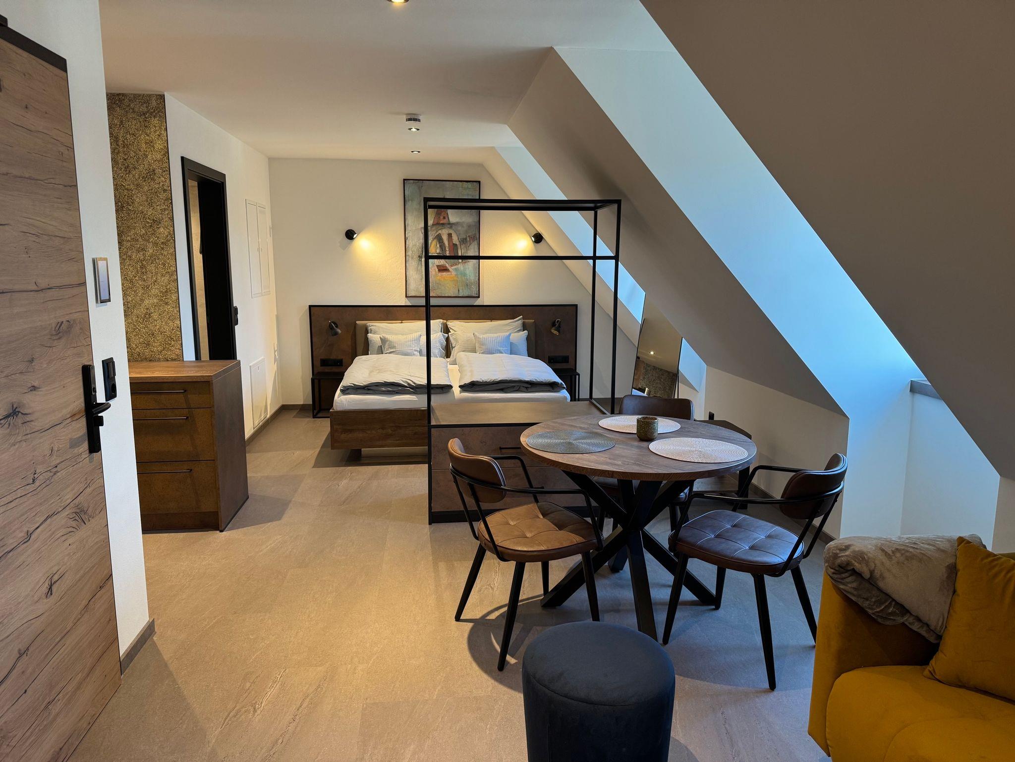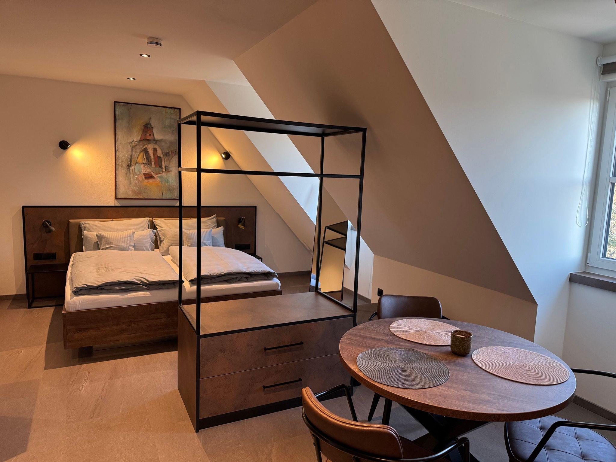 Wählen Sie zwischen zwei ähnlichen Varianten – die etwas größere Suite (ca. 40 m²) oder die besonders kuschelige Variante (ca. 34 m²). Beide versprechen einen unvergesslichen Aufenthalt mit dem Flair einer historischen Stadt und dem Komfort eines modernen Zuhauses.